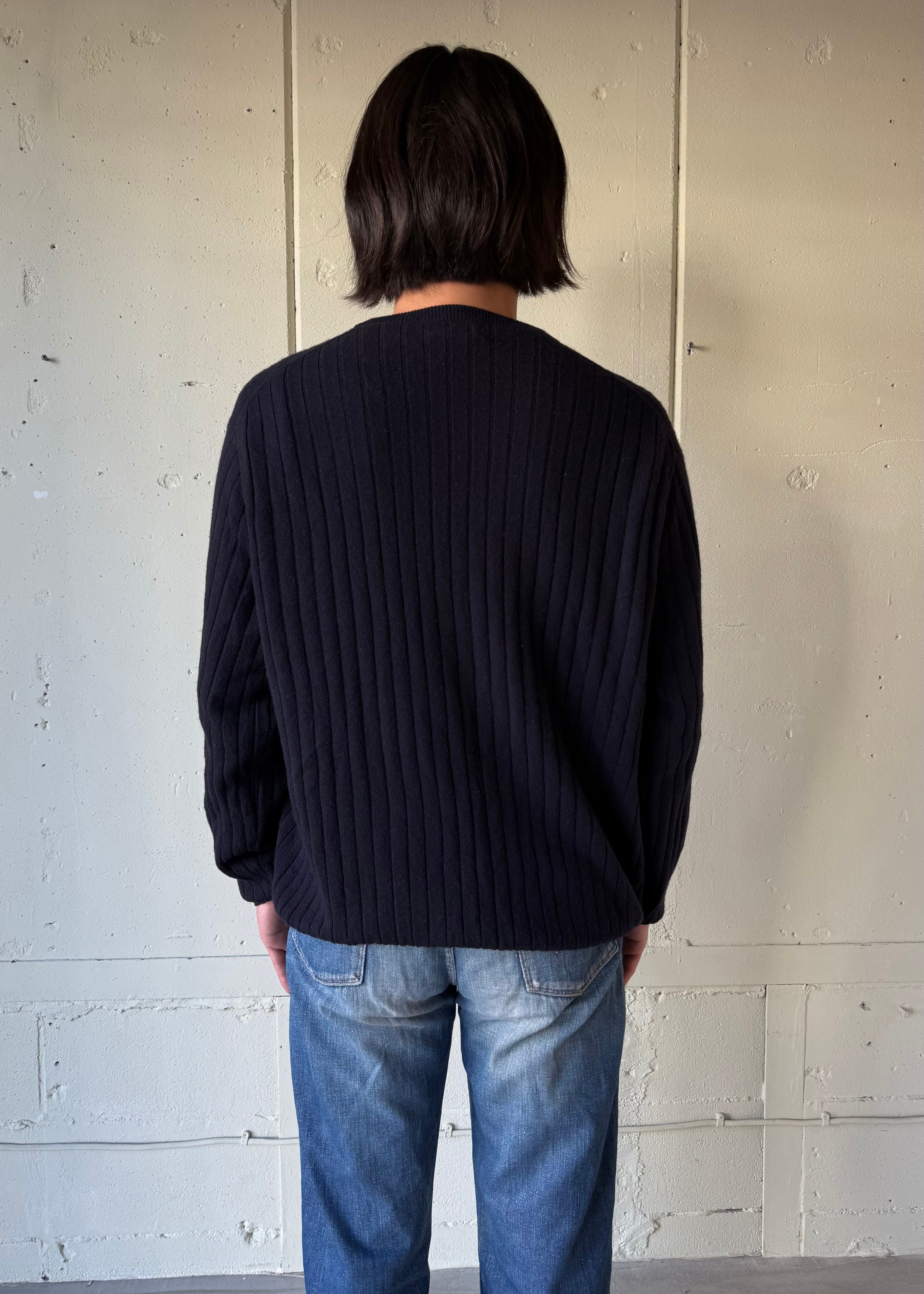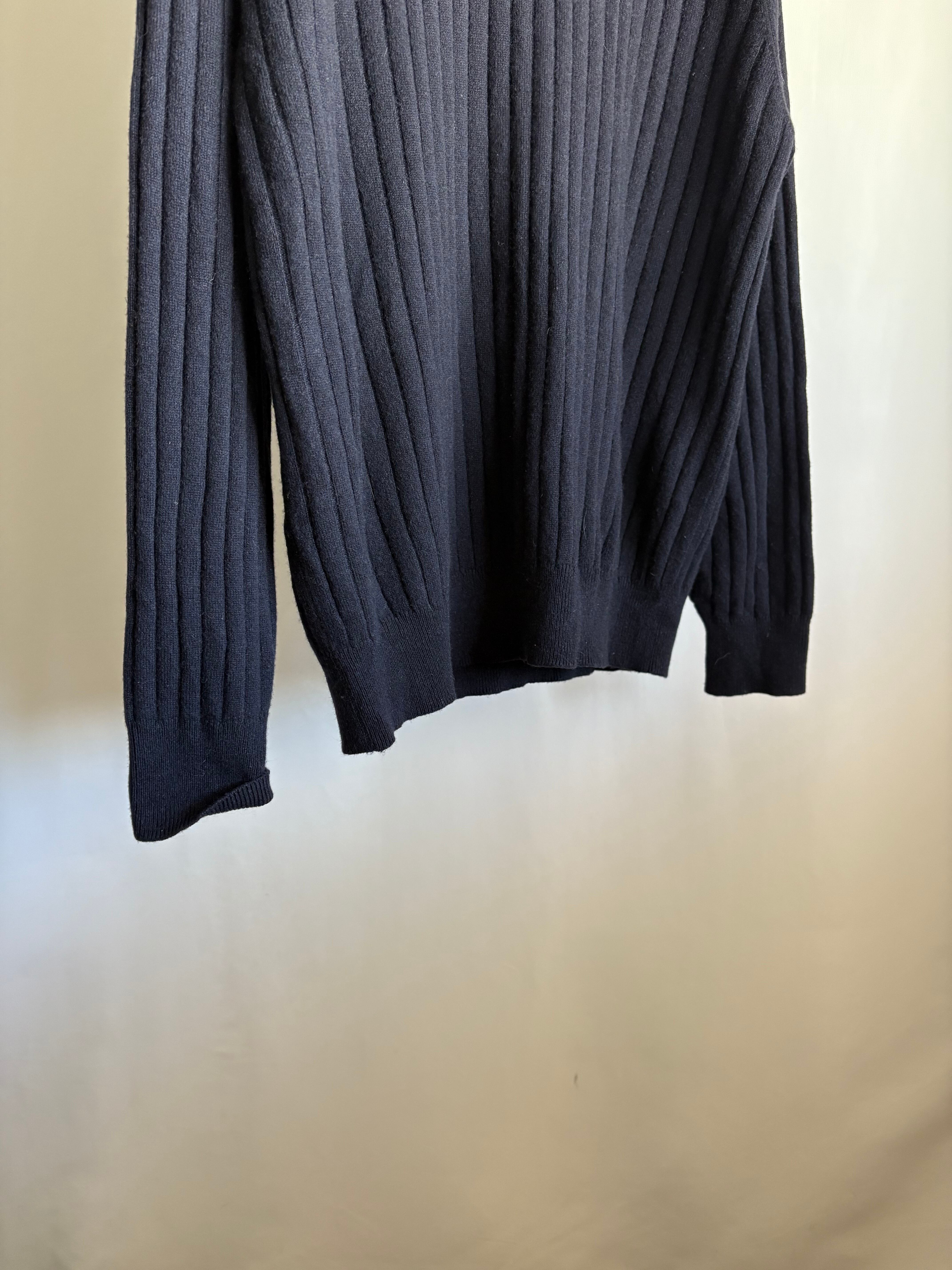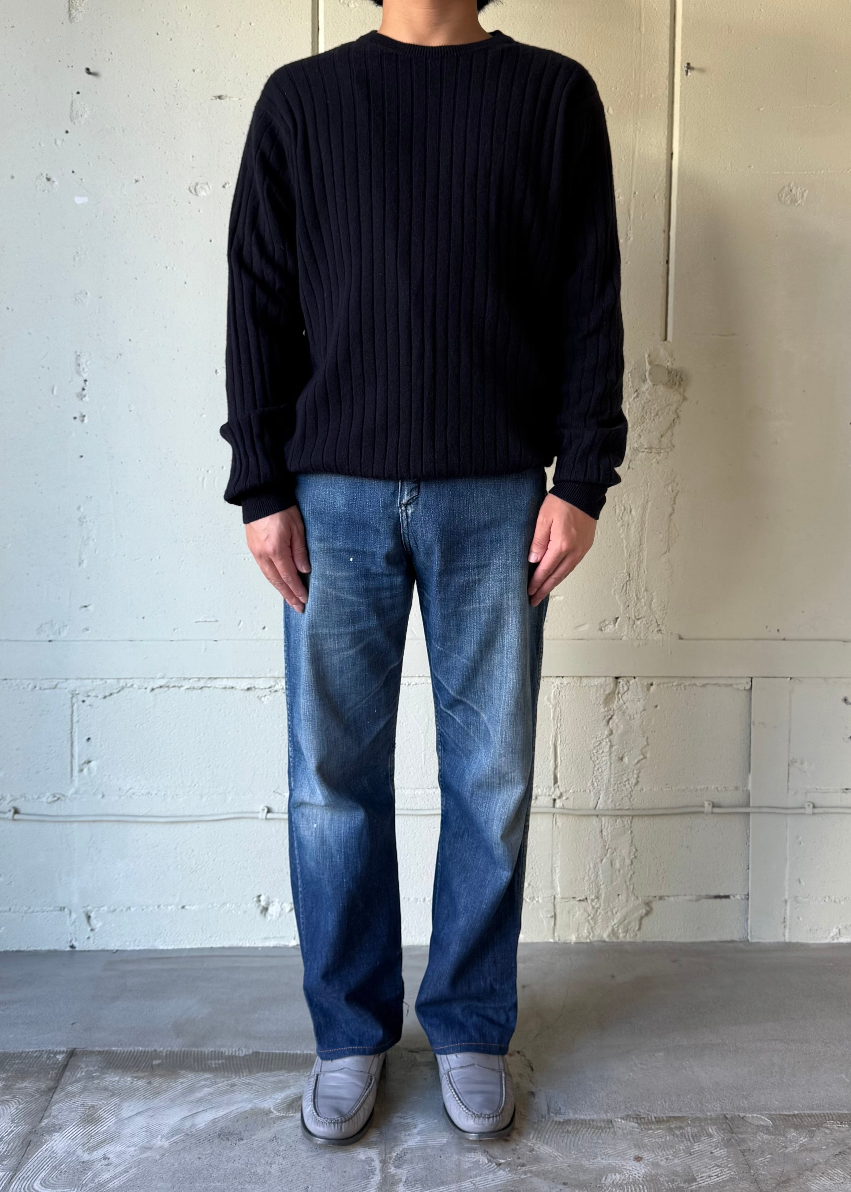 あぜ編みの中厚手-薄手の間位のカシミアセーターです。これぞベーシック。タグの社名もかっこいい。