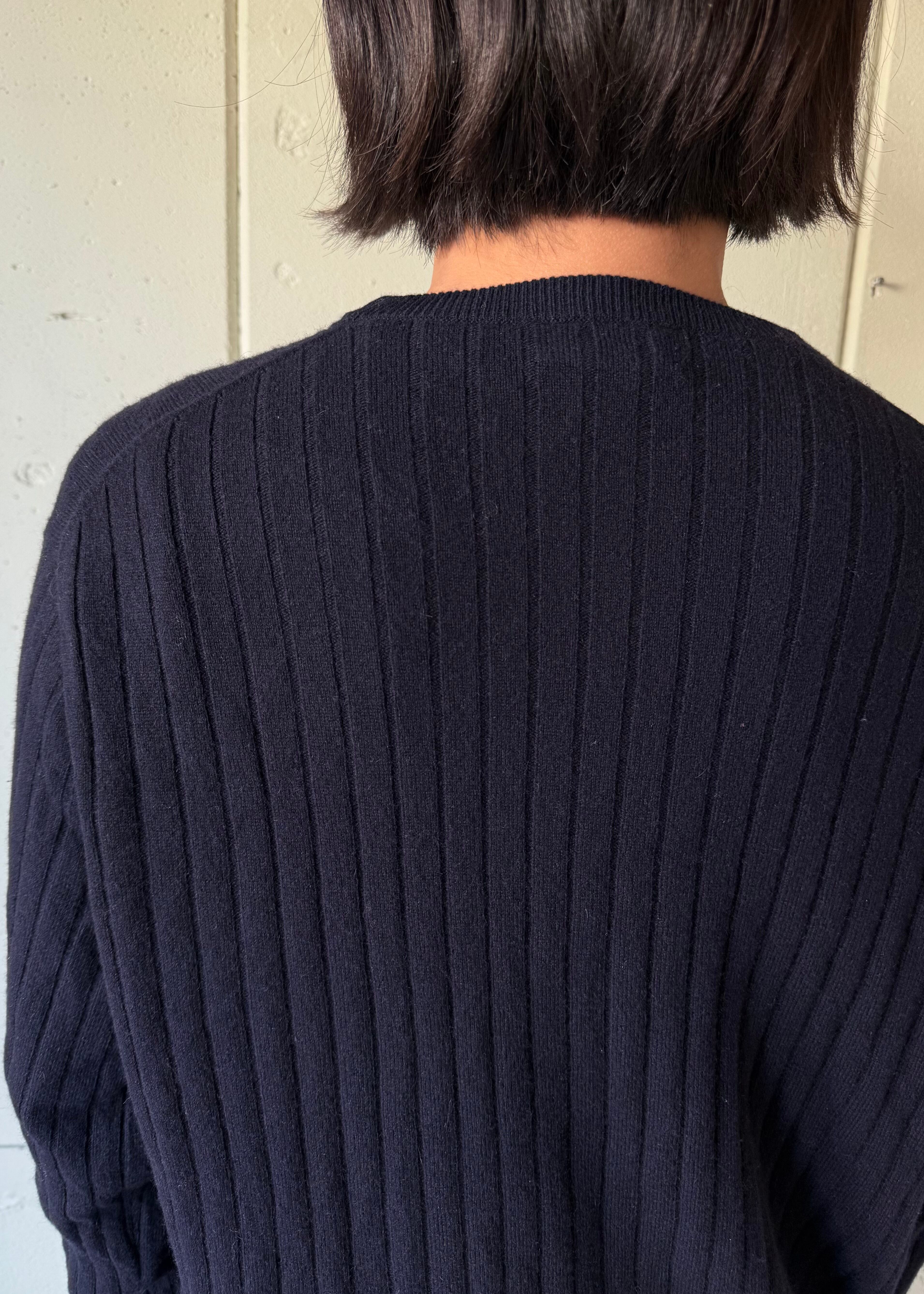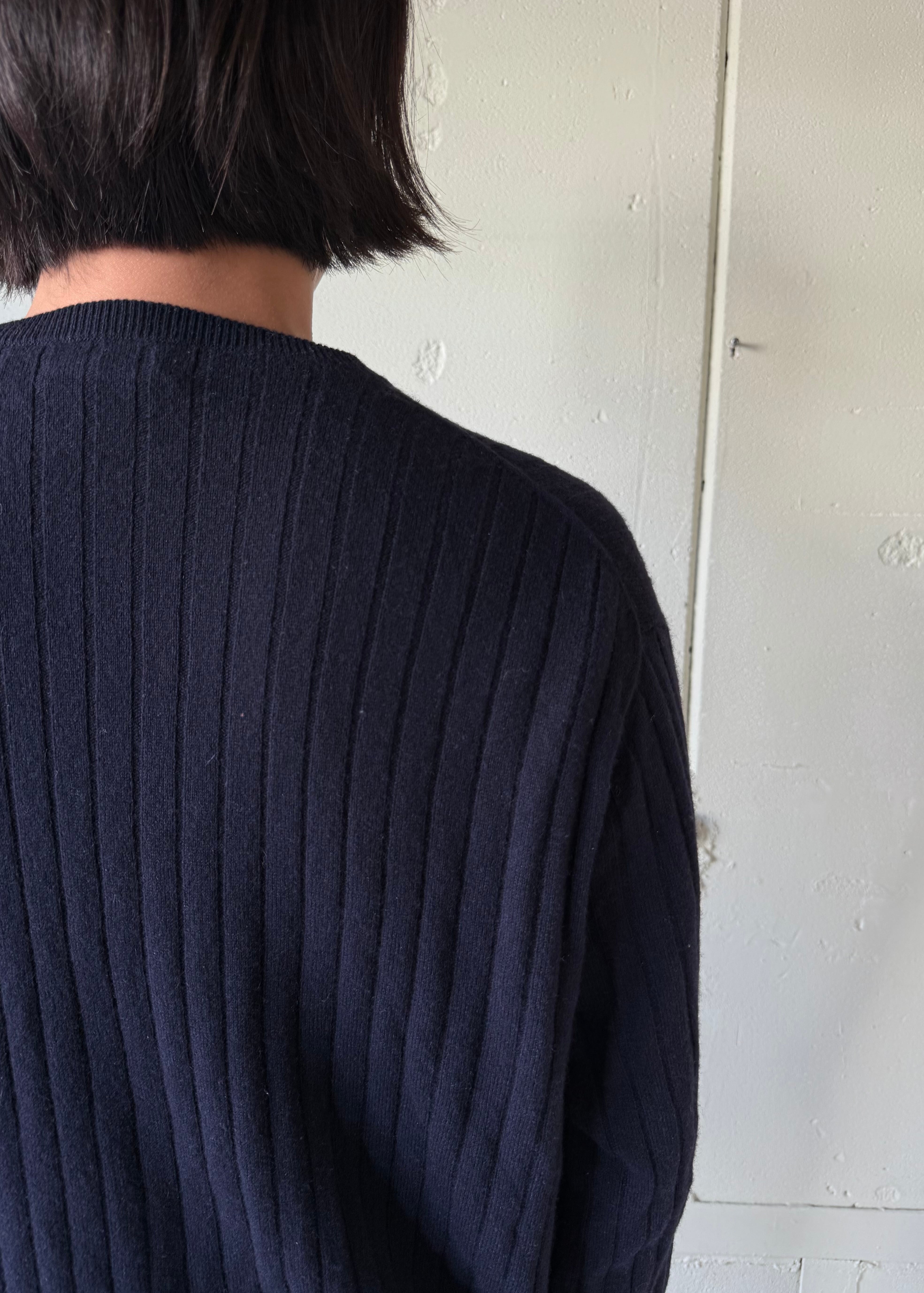 Uネックでネイビーとっても使いやすい、Tシャツの様なカシミア。ちょっとしたレストランにも着て行ける系古着。