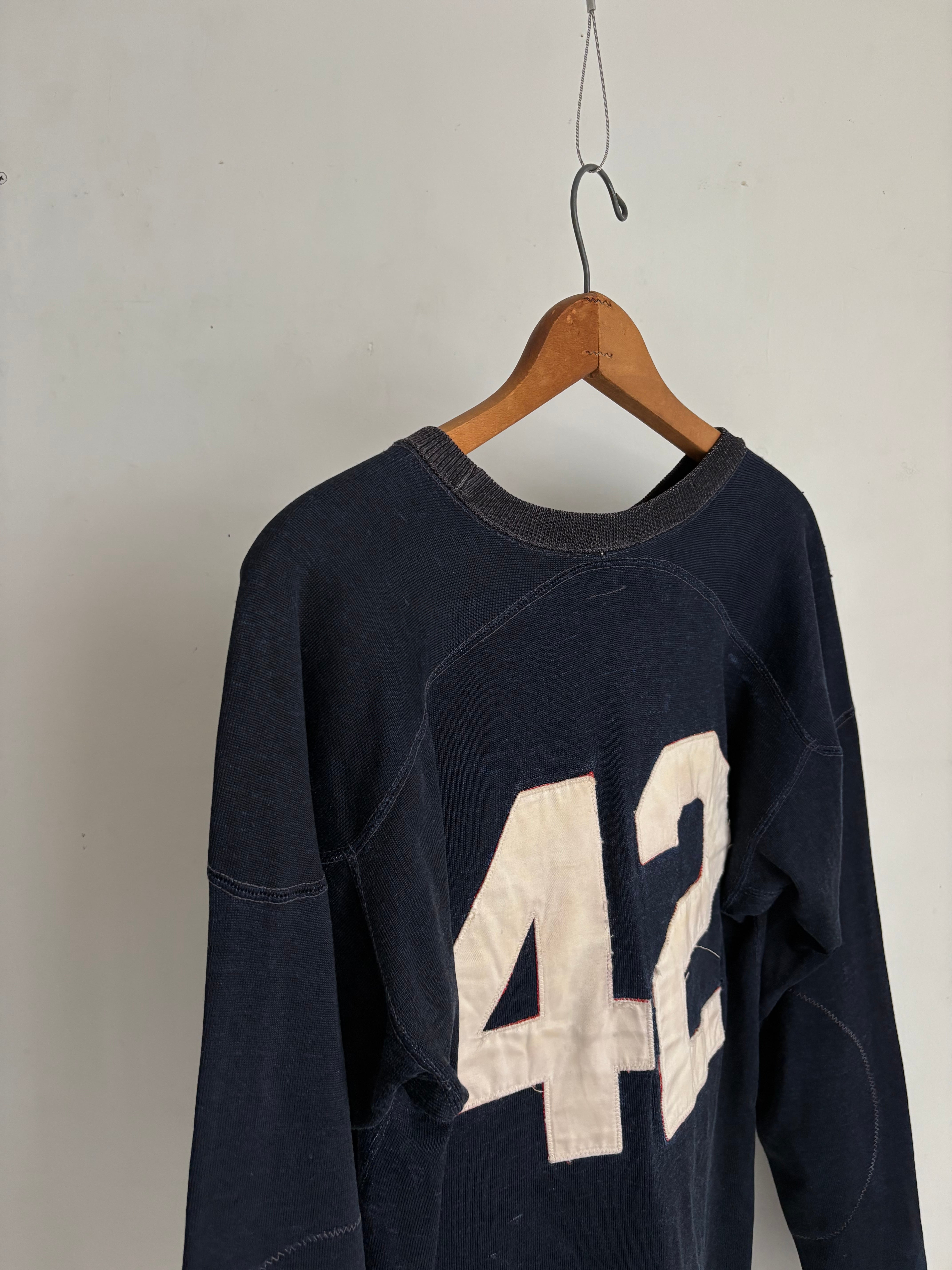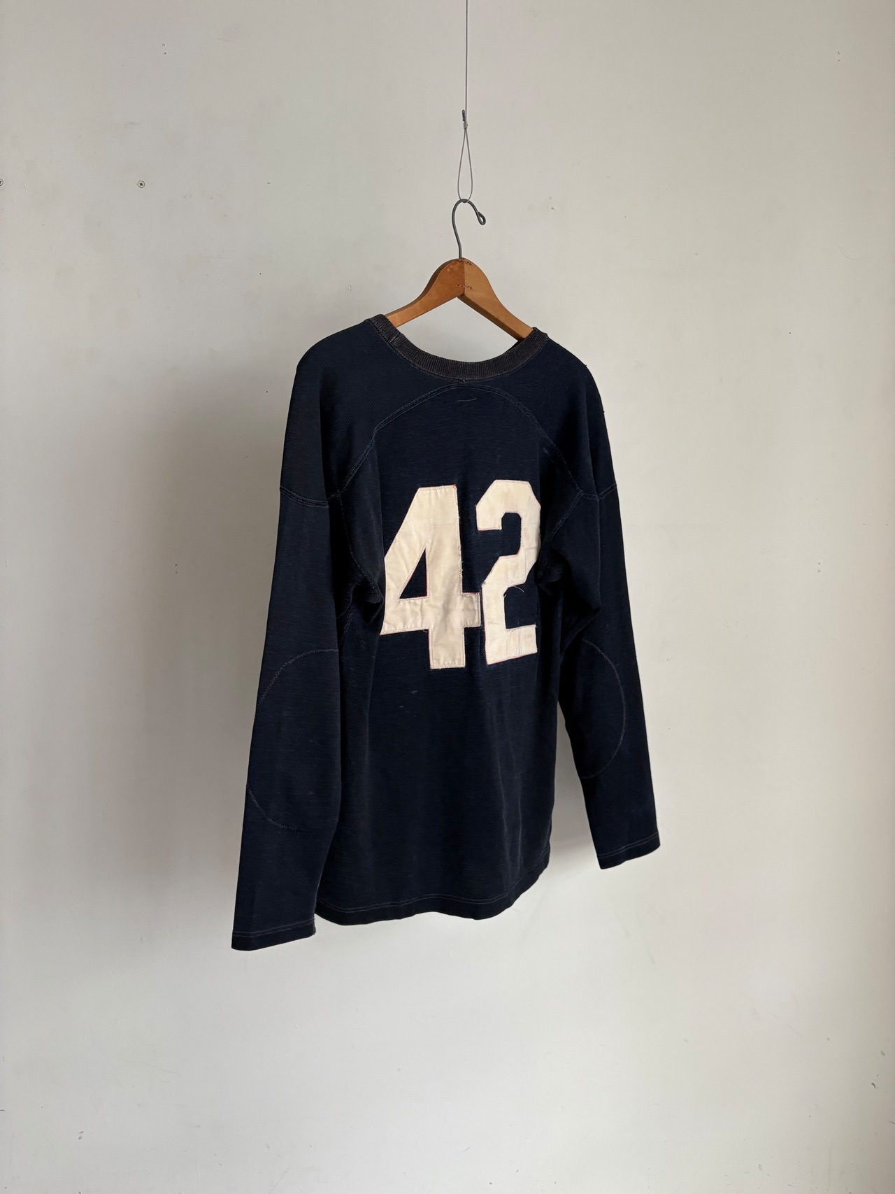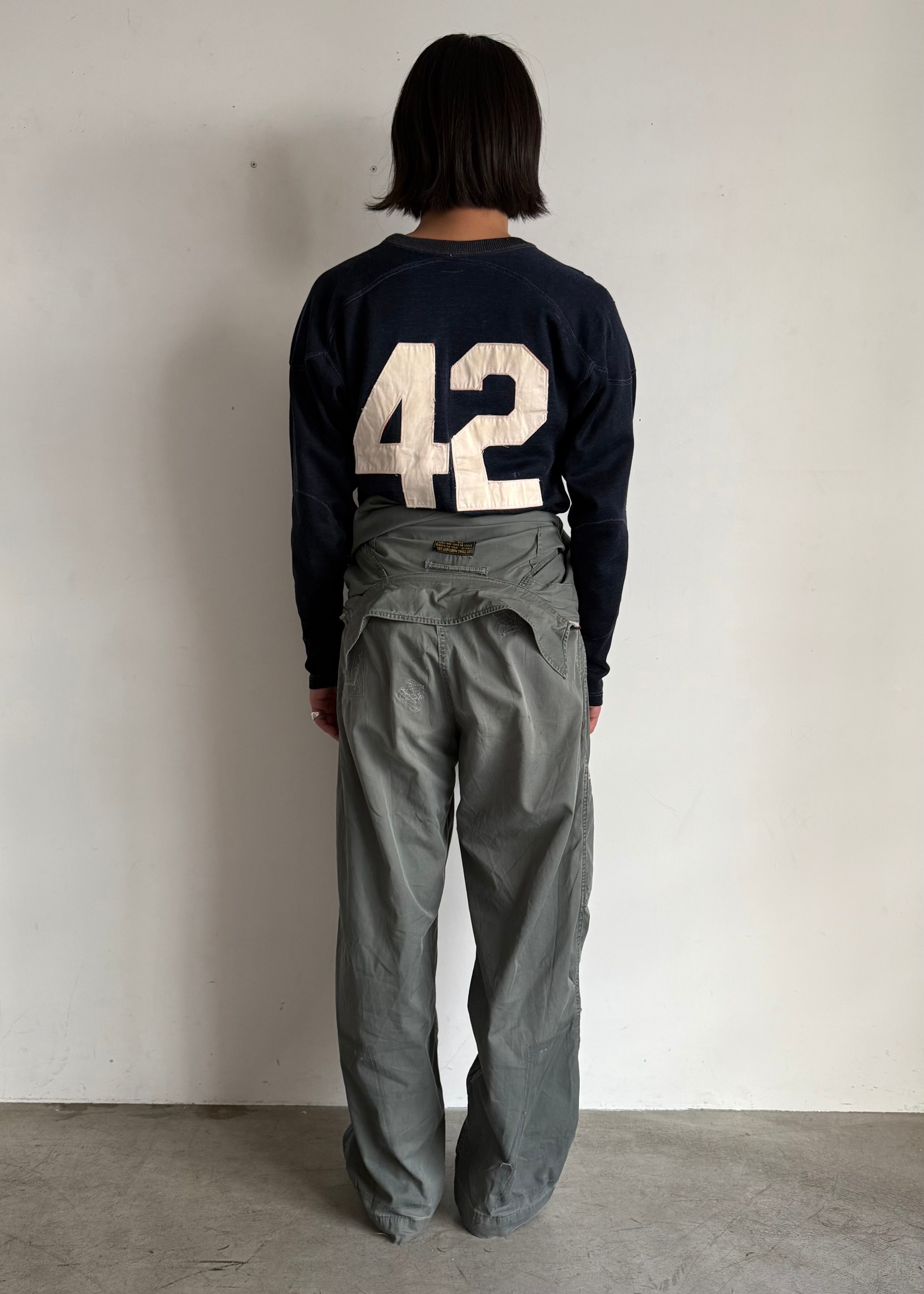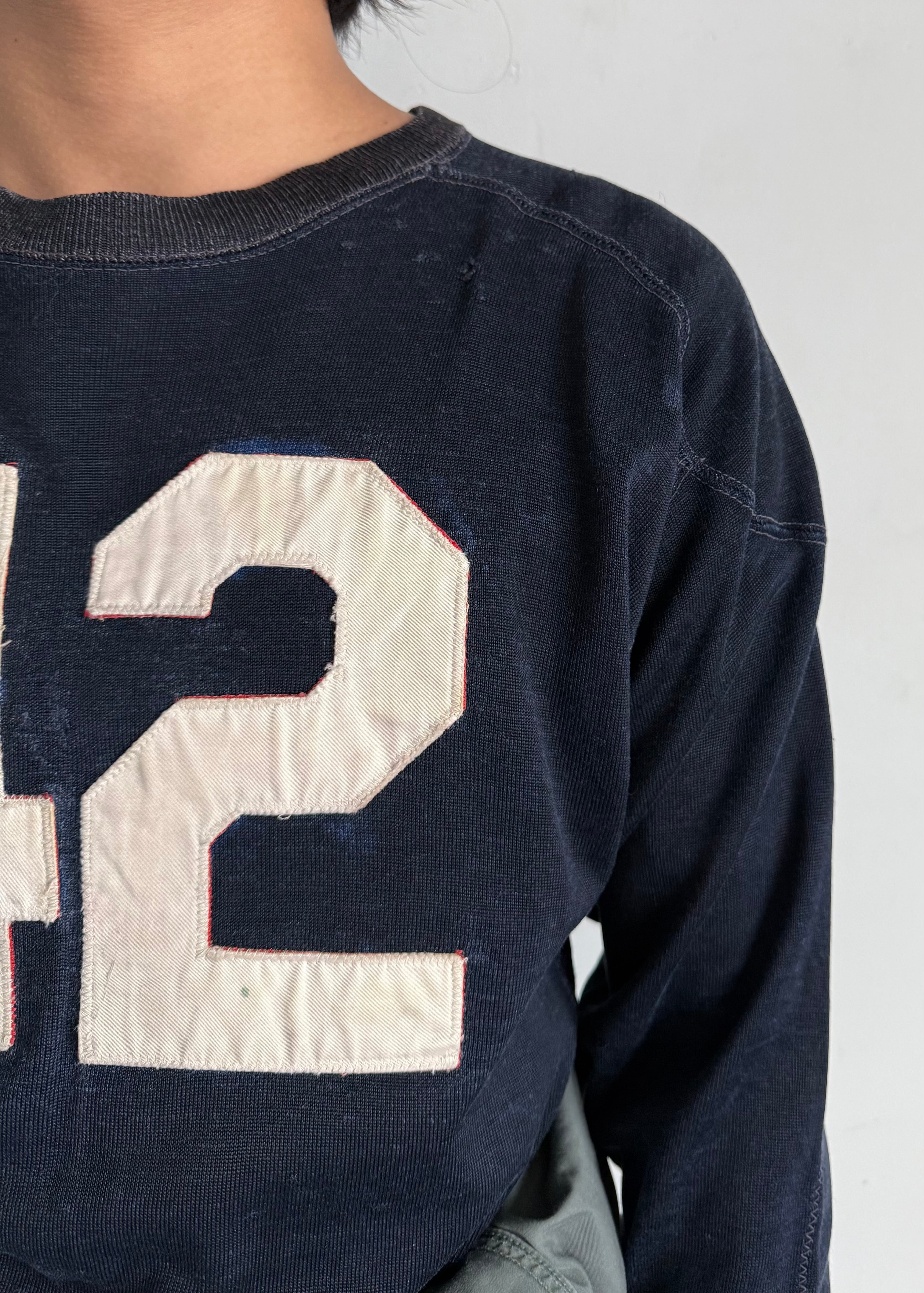 両面にナンバーのパッチと膝に縫い付けの補強が施されたとても雰囲気のあるビンテージジャージ