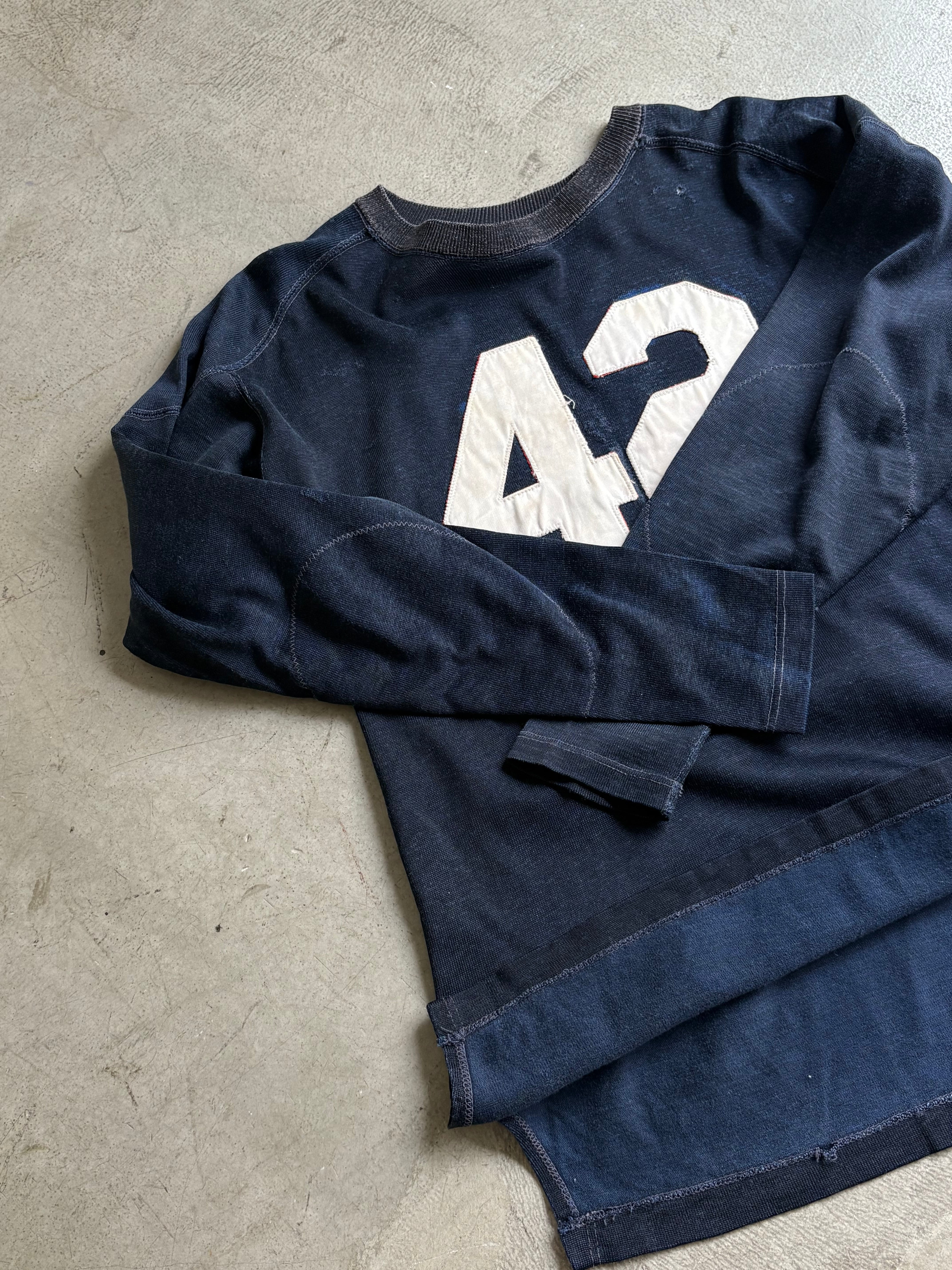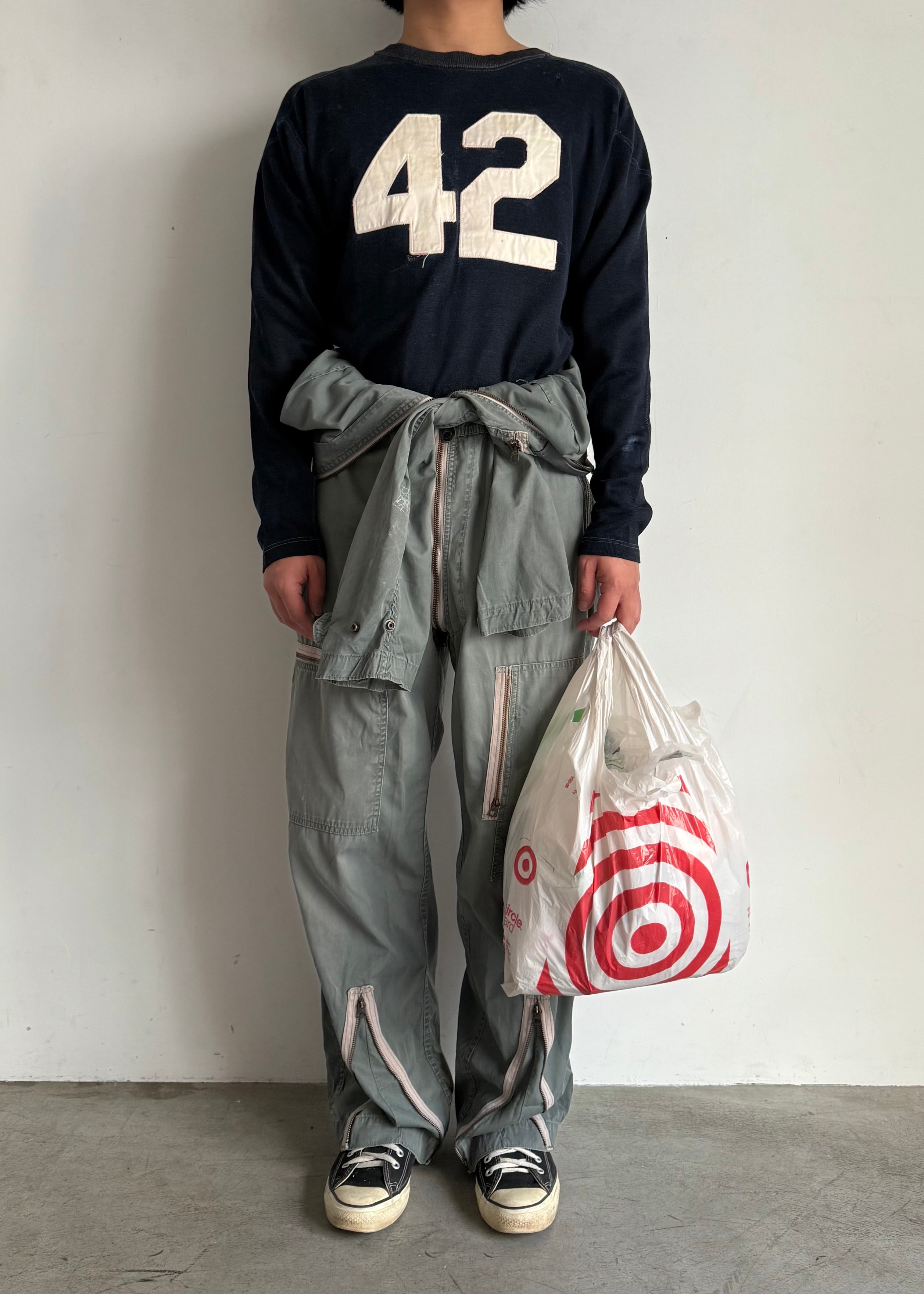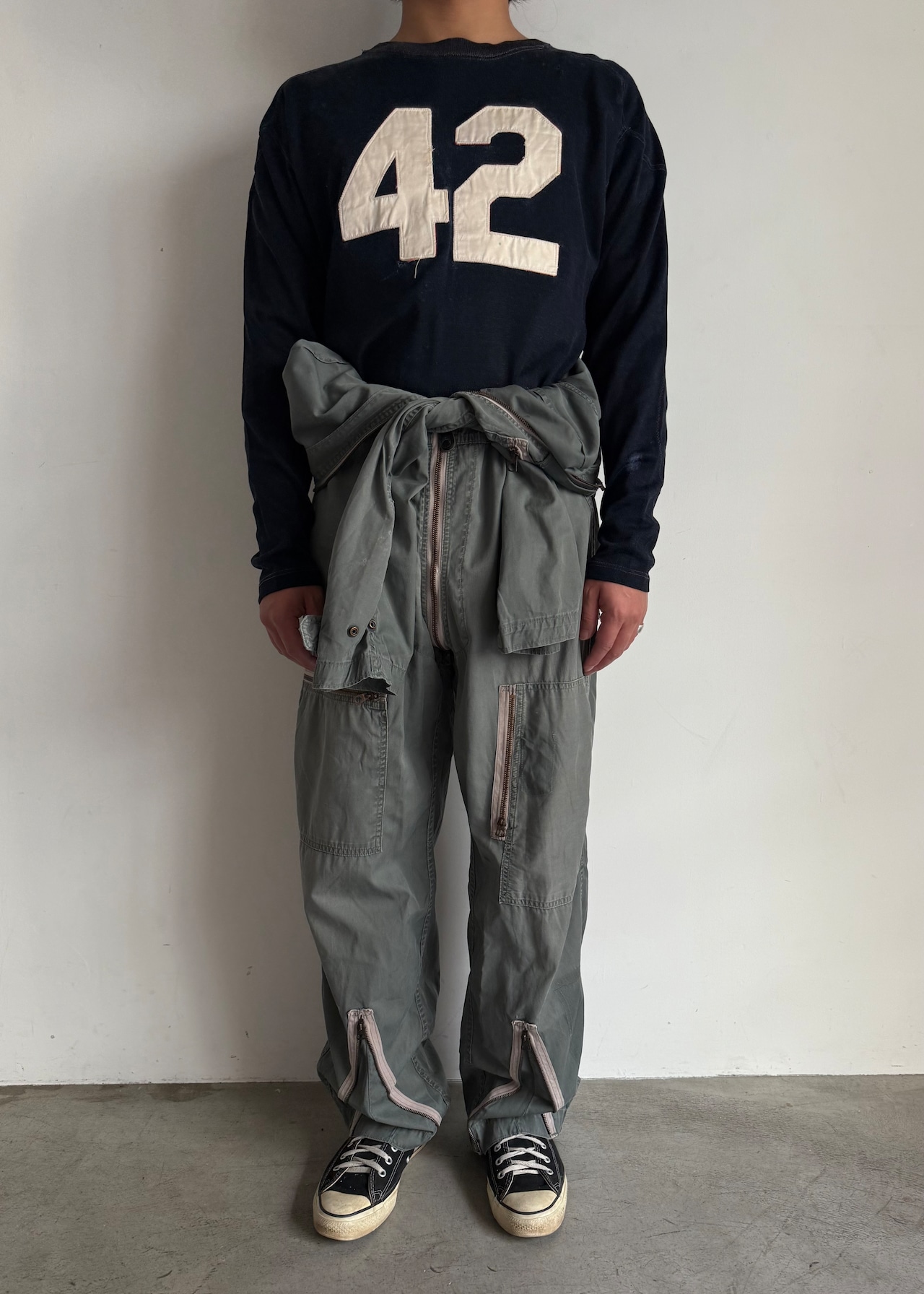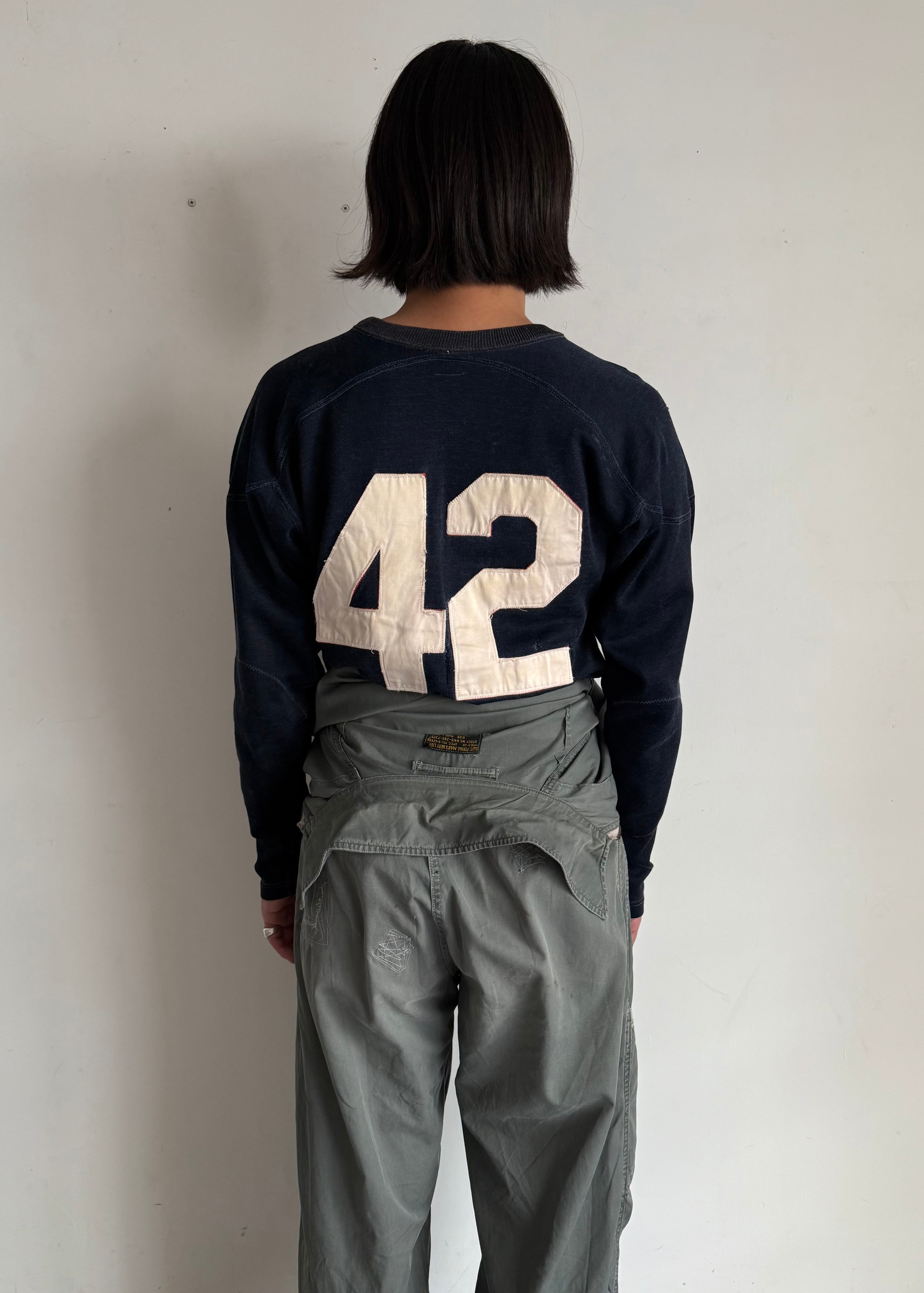 両面にナンバーのパッチと膝に縫い付けの補強が施されたとても雰囲気のあるビンテージジャージ