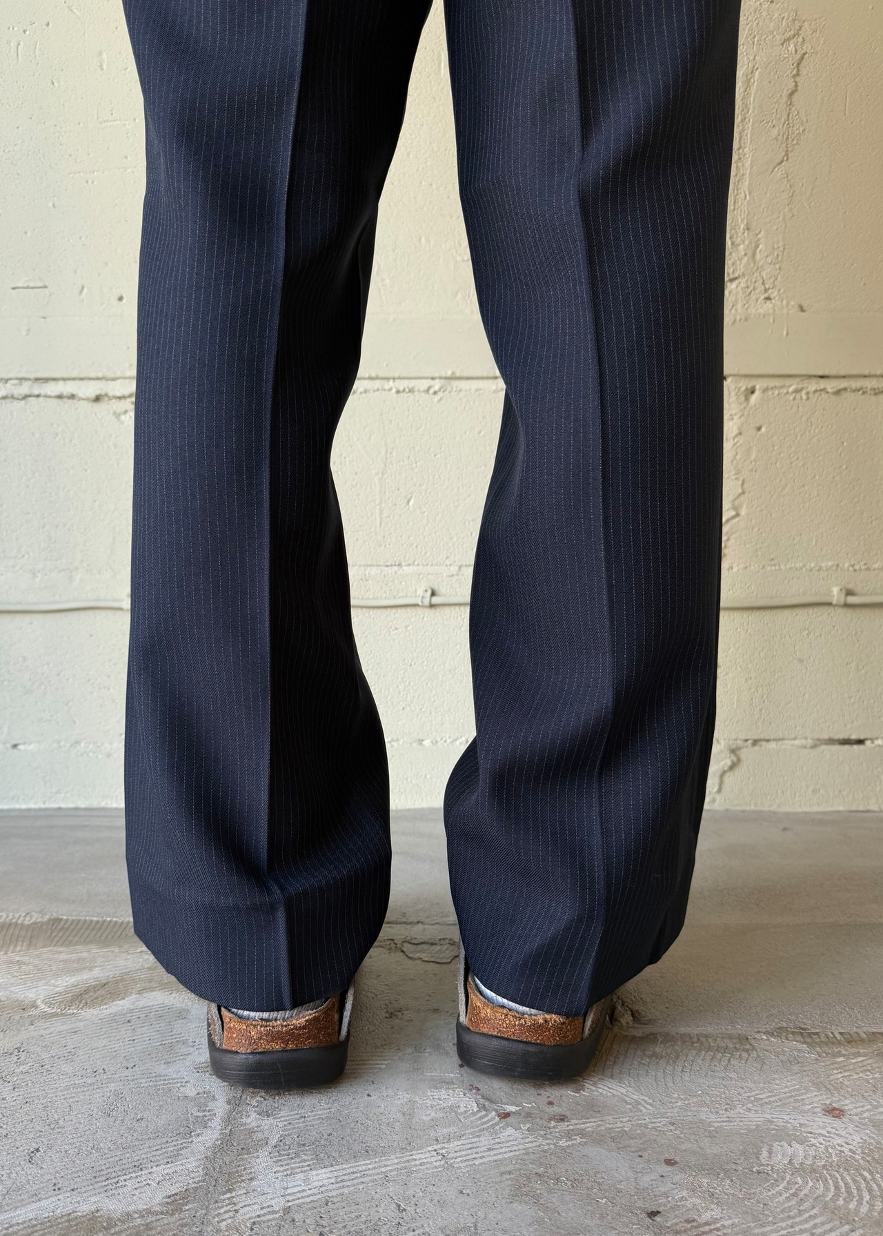 少しスーツの様なストライプがまた良いのです。薄さも程よいので夏も履けます。