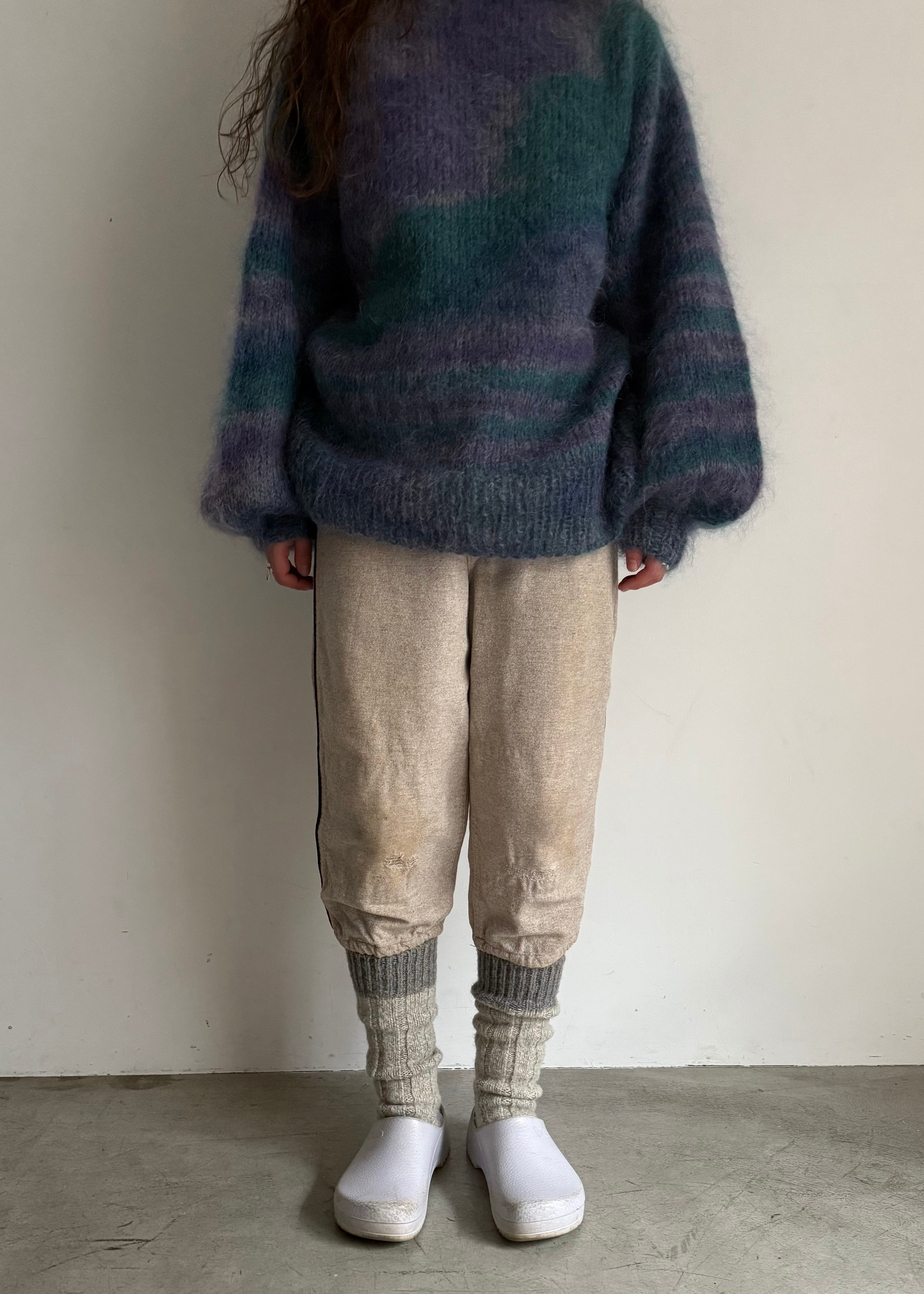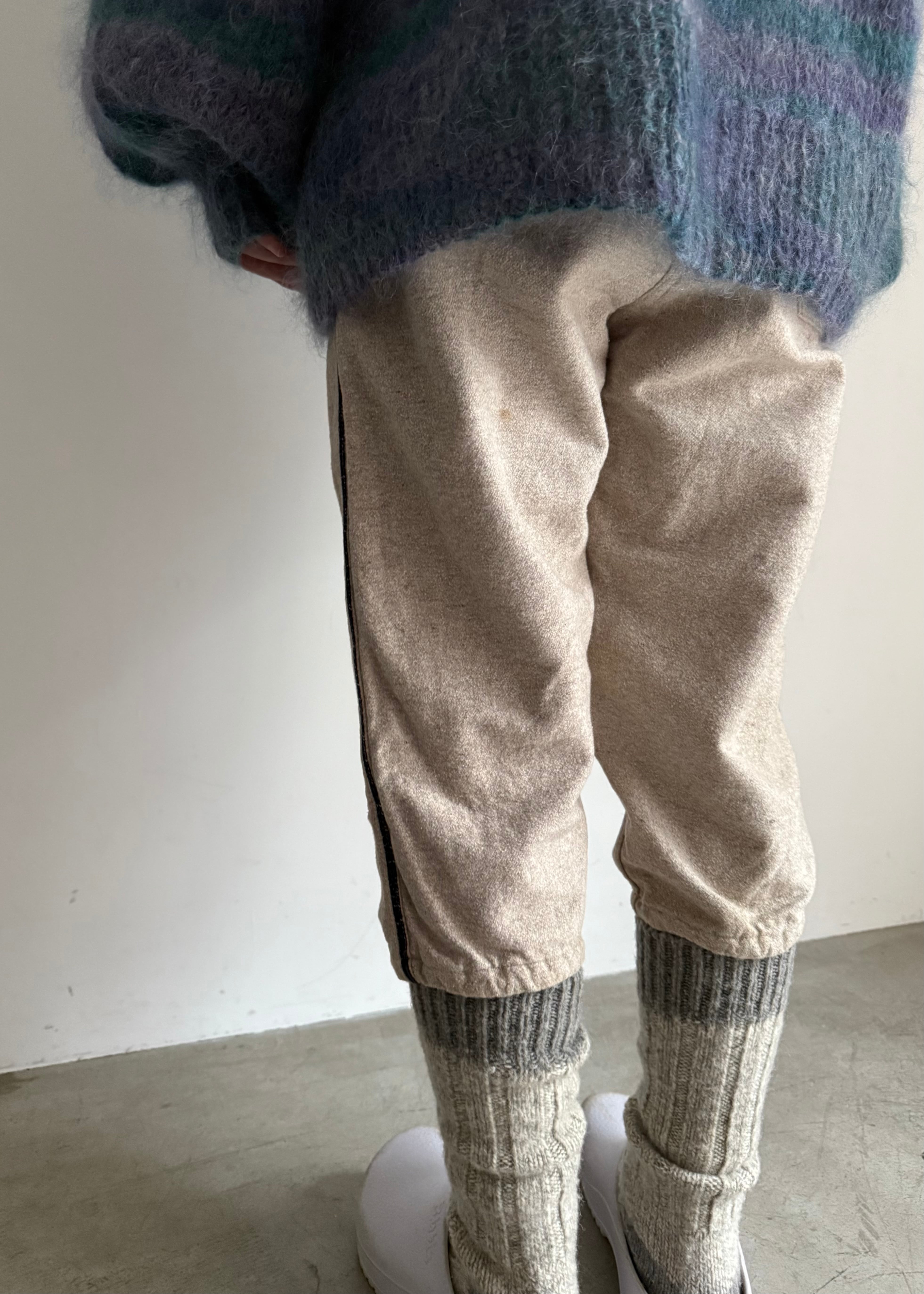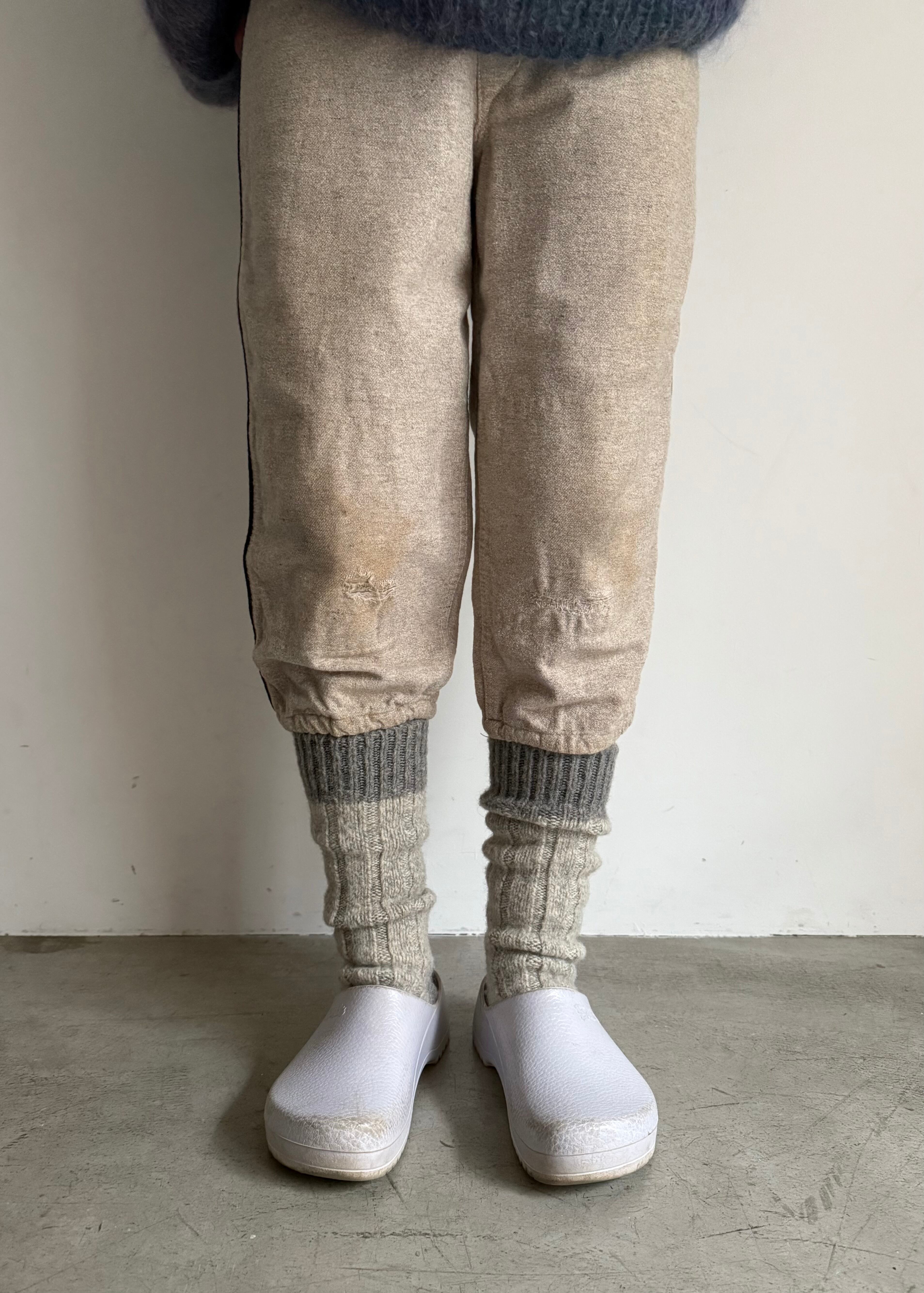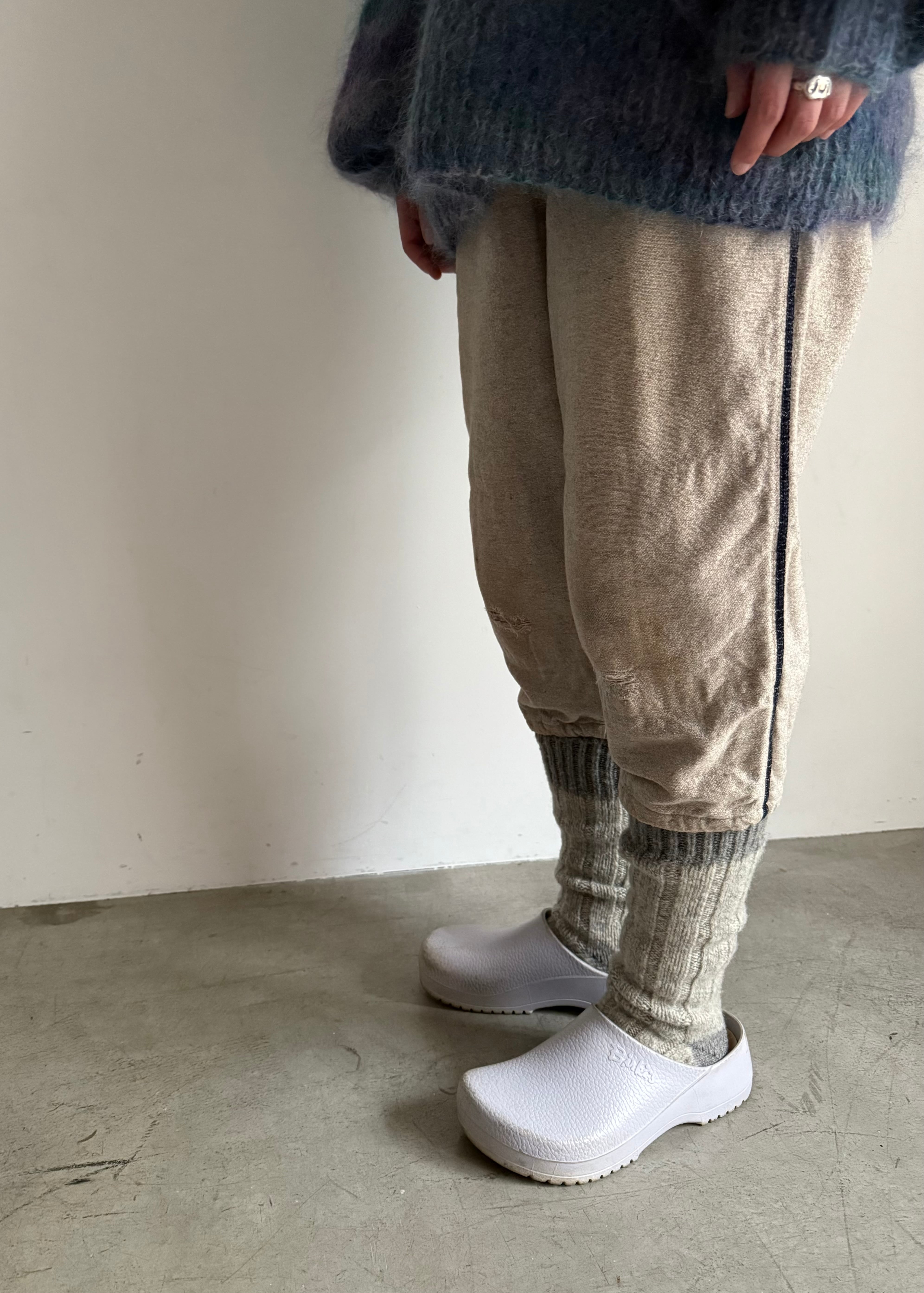 ちょっとアンダーソックスを履いているイメージでウールのラグソックスを合わせてみました。サーマルパンツやタイツを合わせてみるのもいいでしょう。