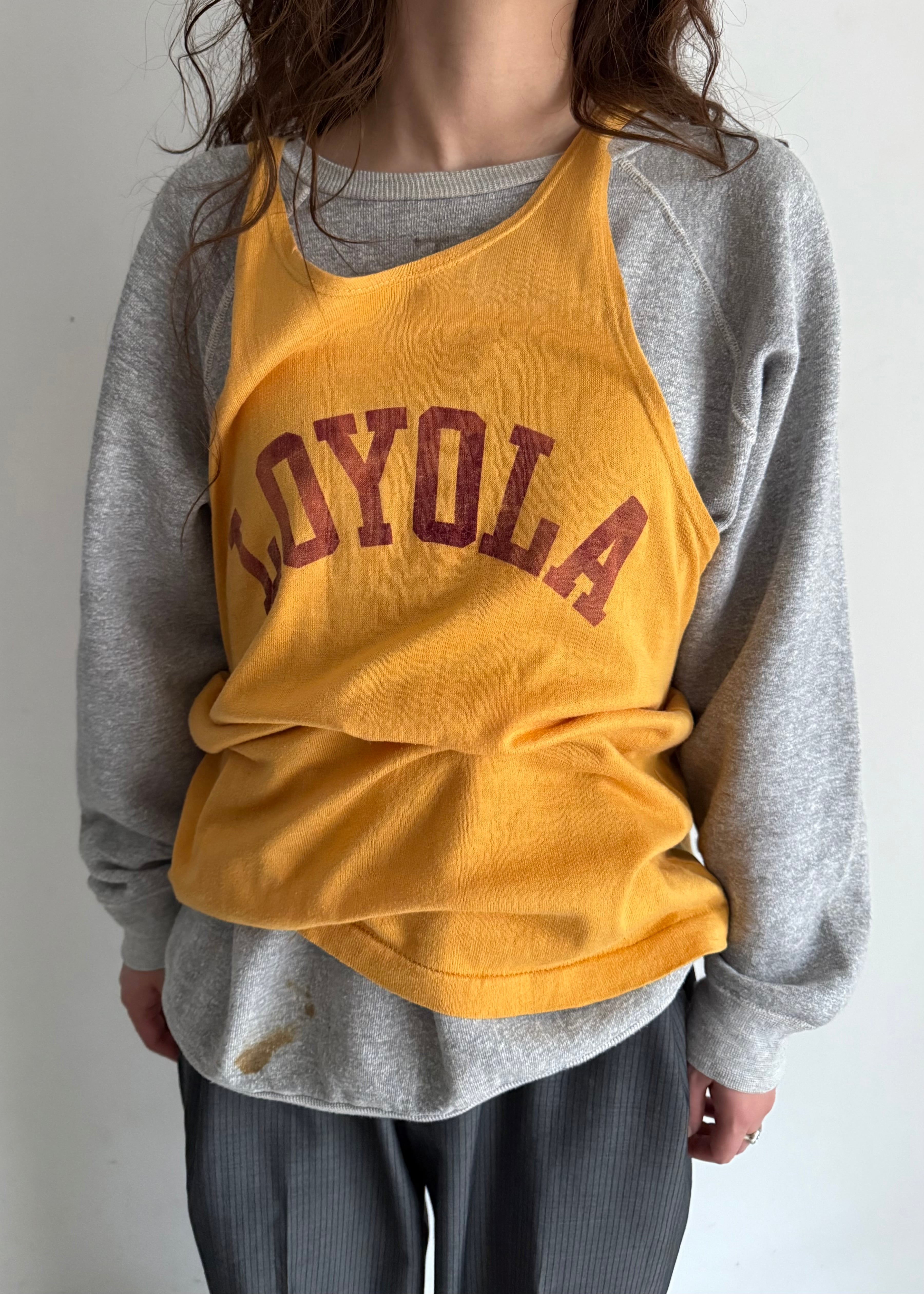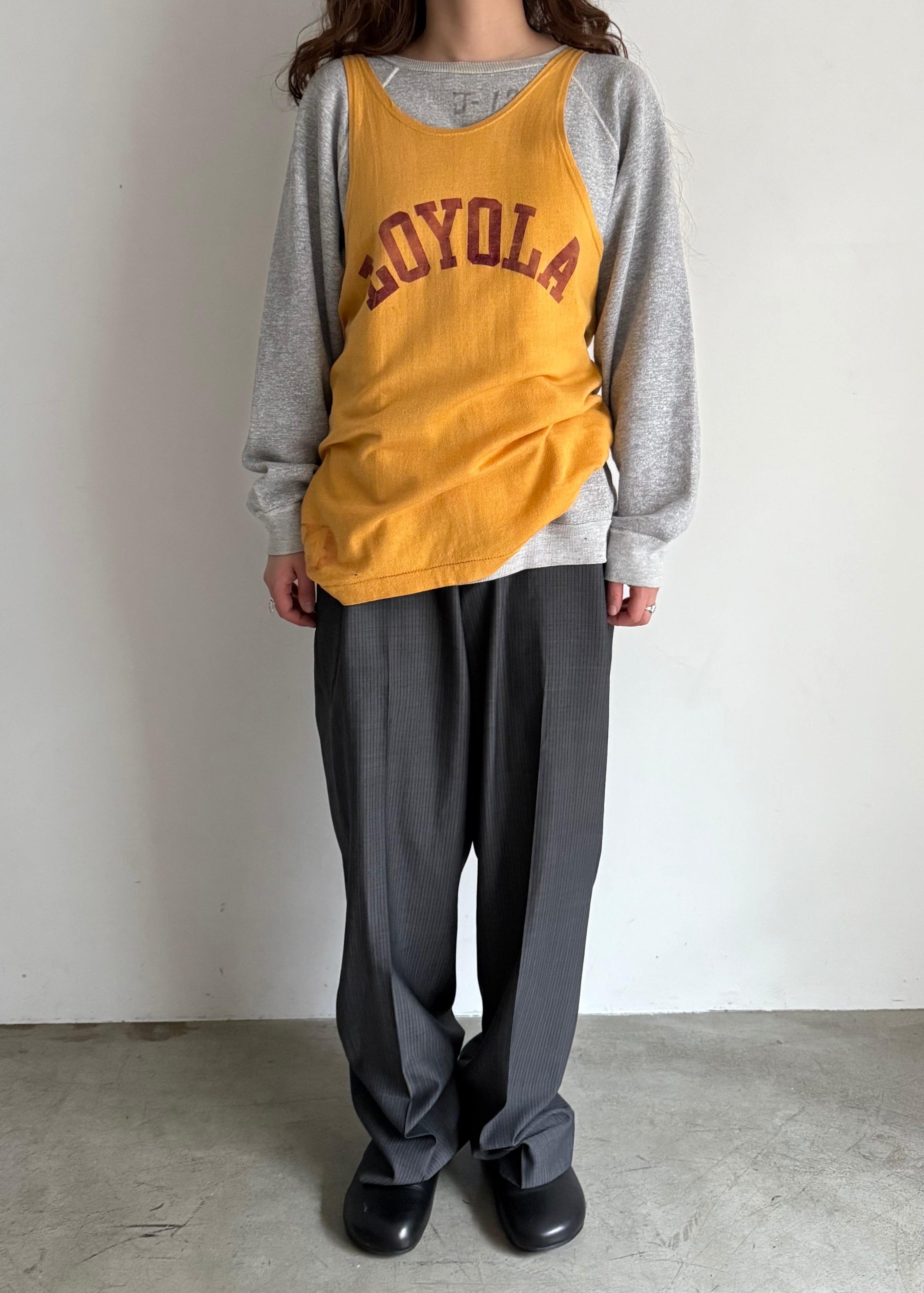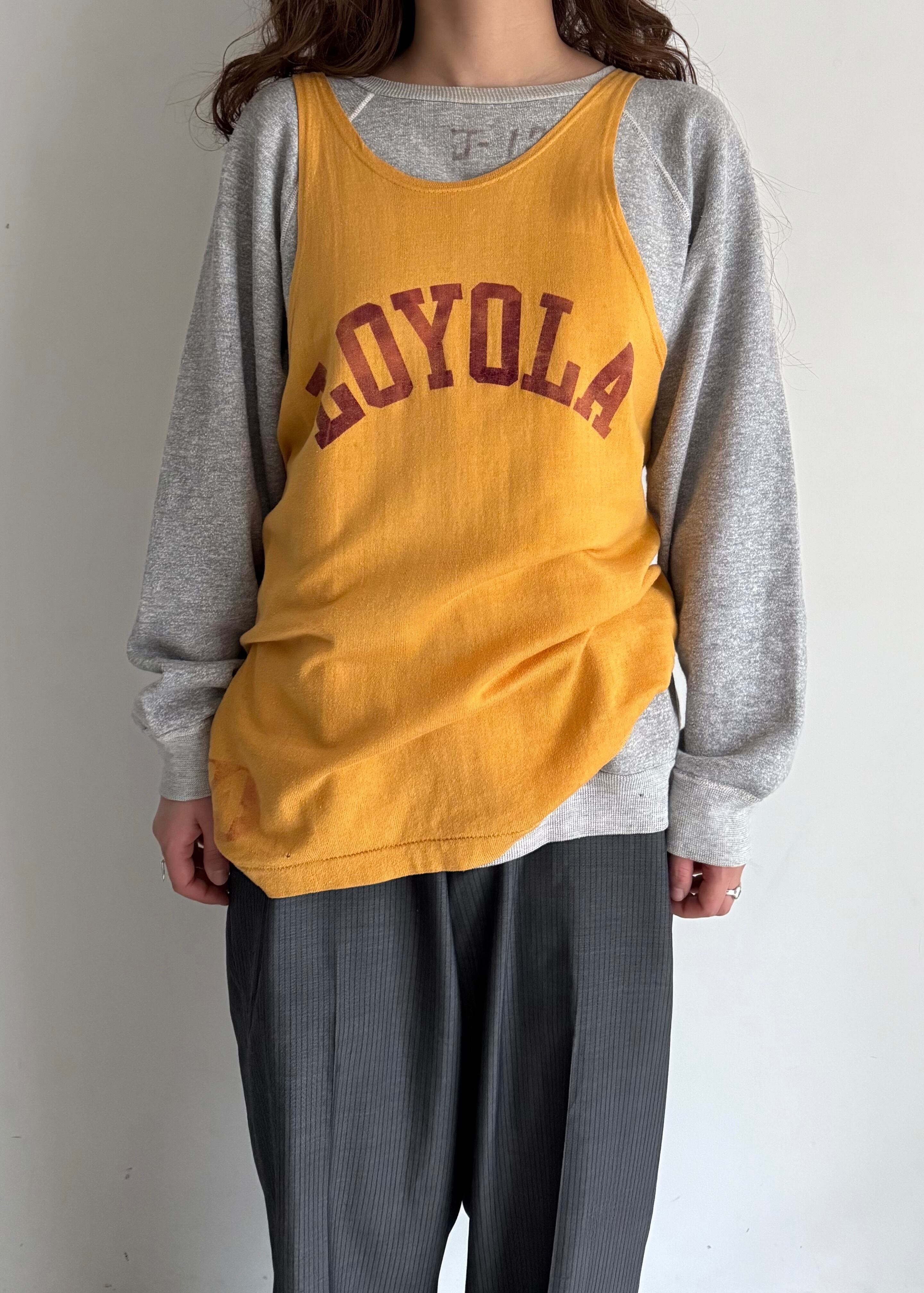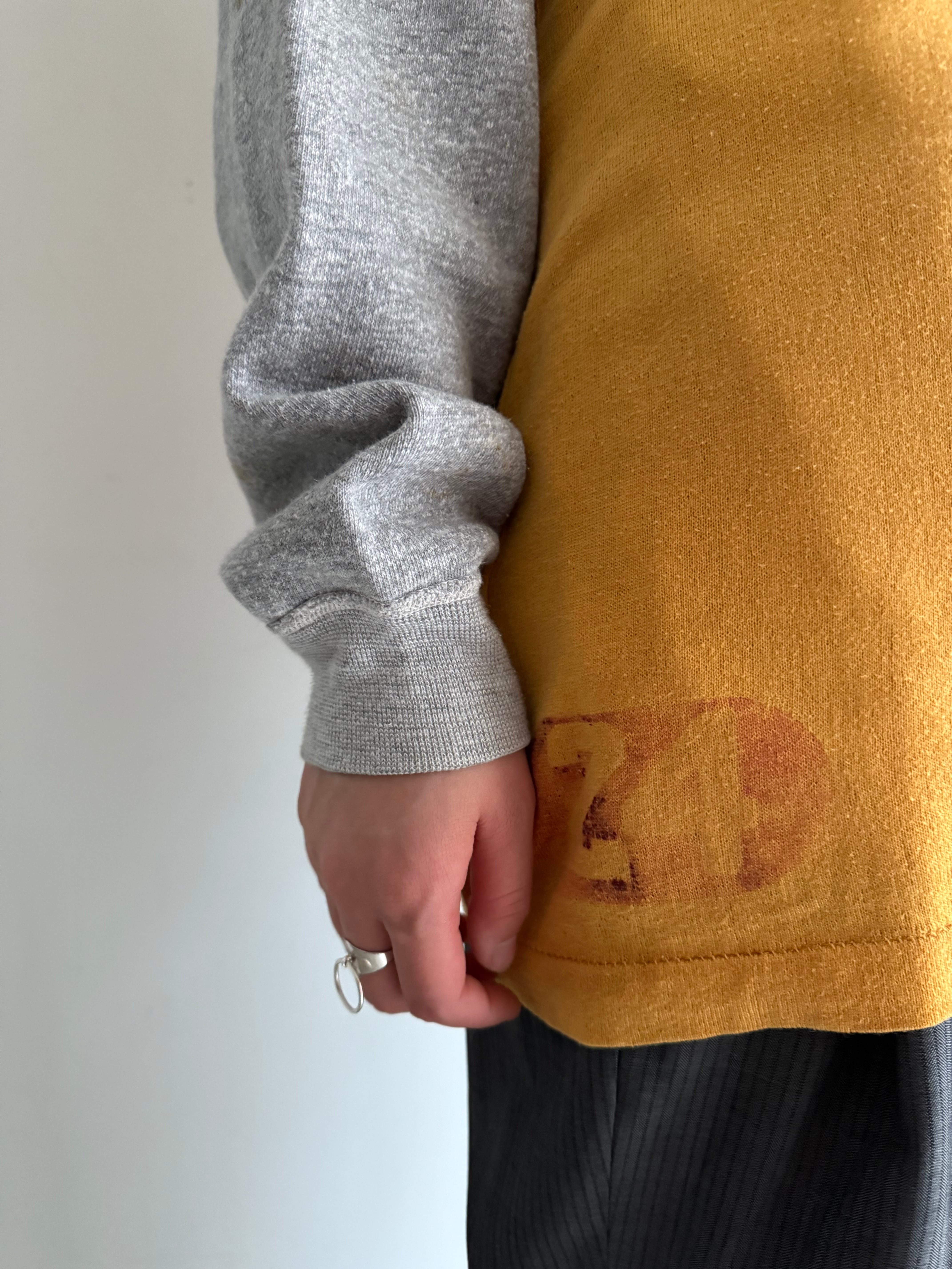 同じ色の薄手のカシミアとかにも重ねてみたいですね。当時のアスレチックの写真を見ると必ずこの手のギアはタイトに着られています。とすると、このくらいの大きさを着用していた方は身体が大きかったのでしょう。