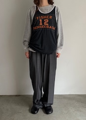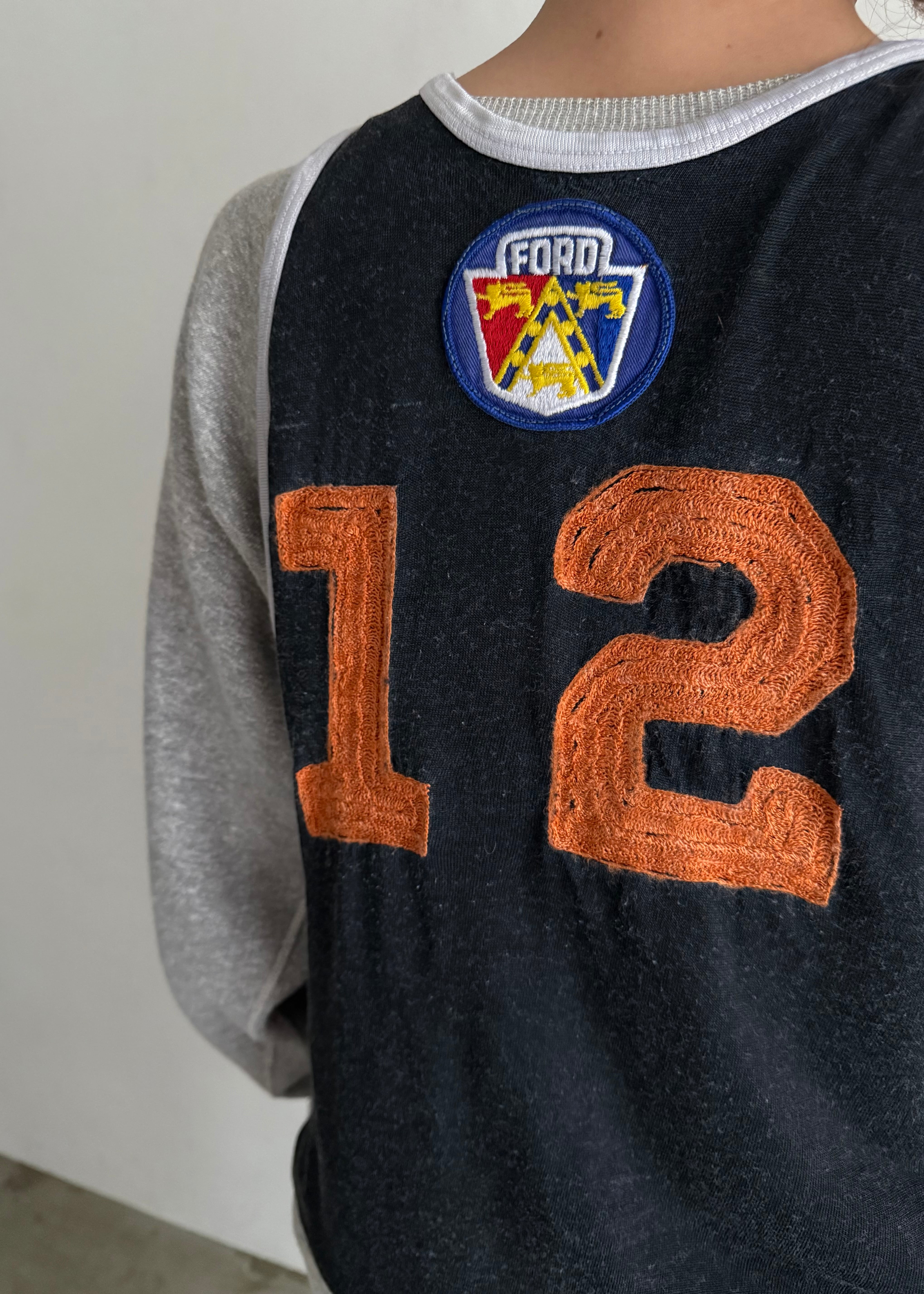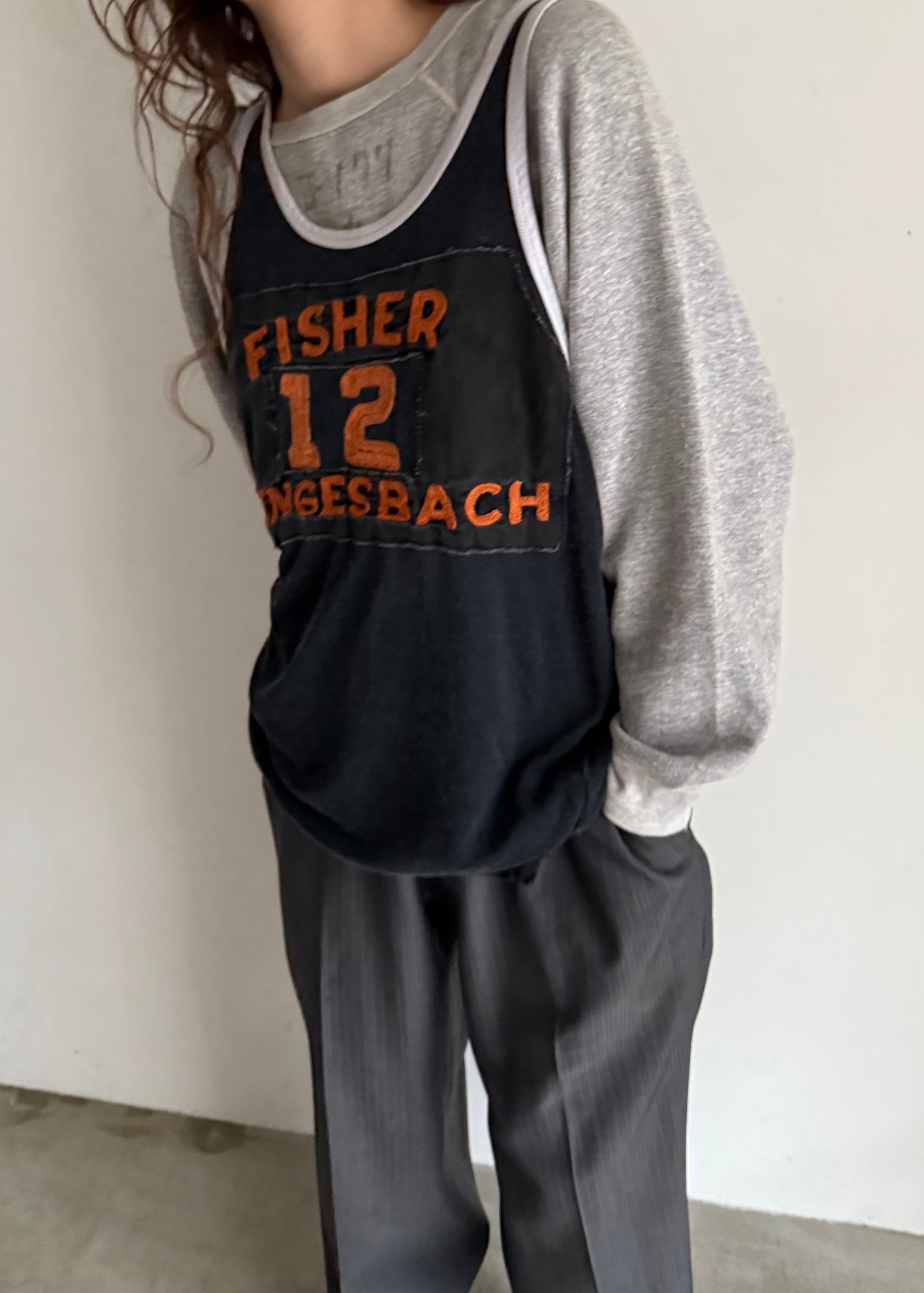 しかも背面の番号も全て拙いチェインステッチです。重ねた時にウエスト部分が細くならないので様々なレイヤードを楽しんでいただけそうですね。