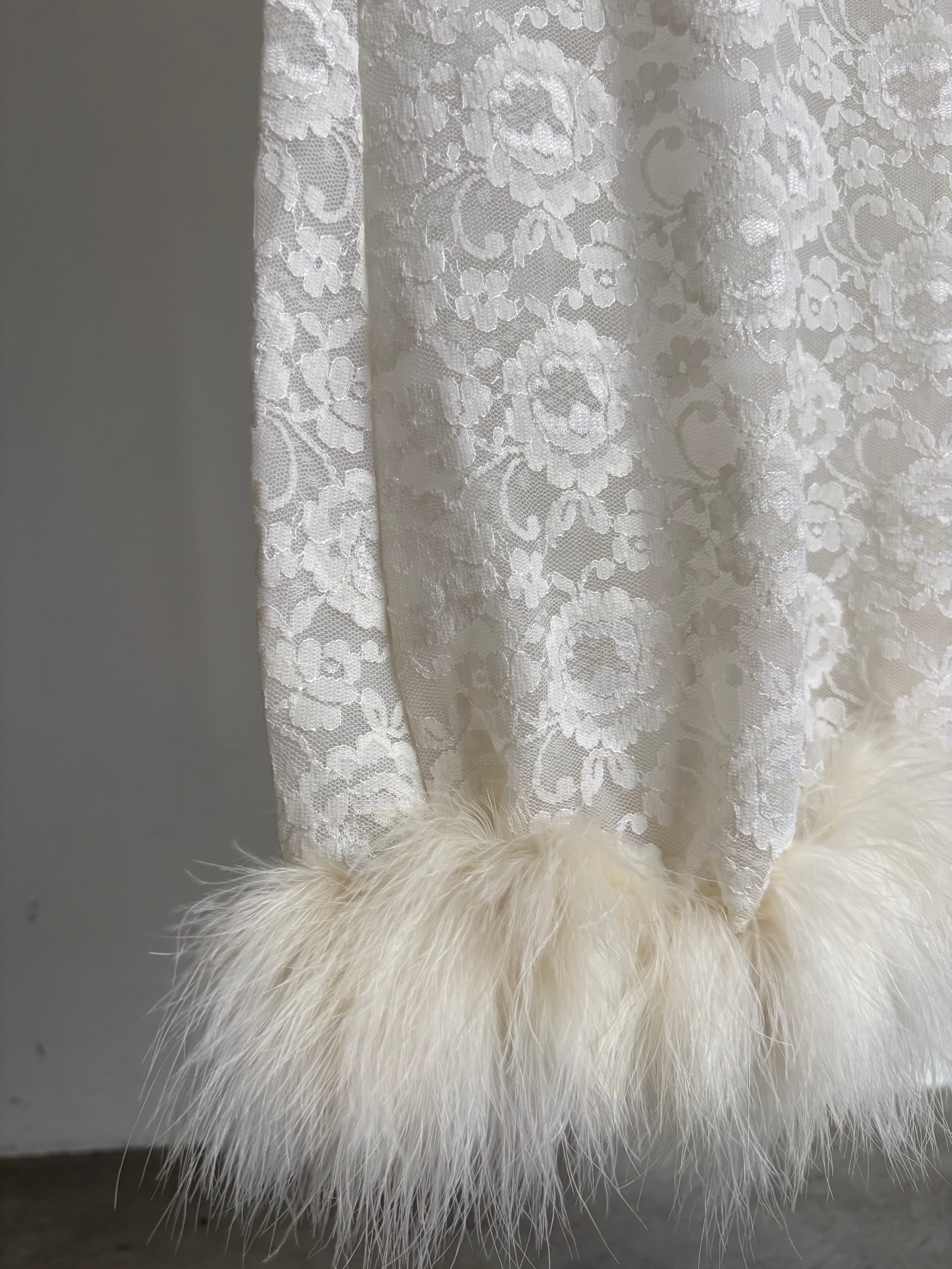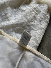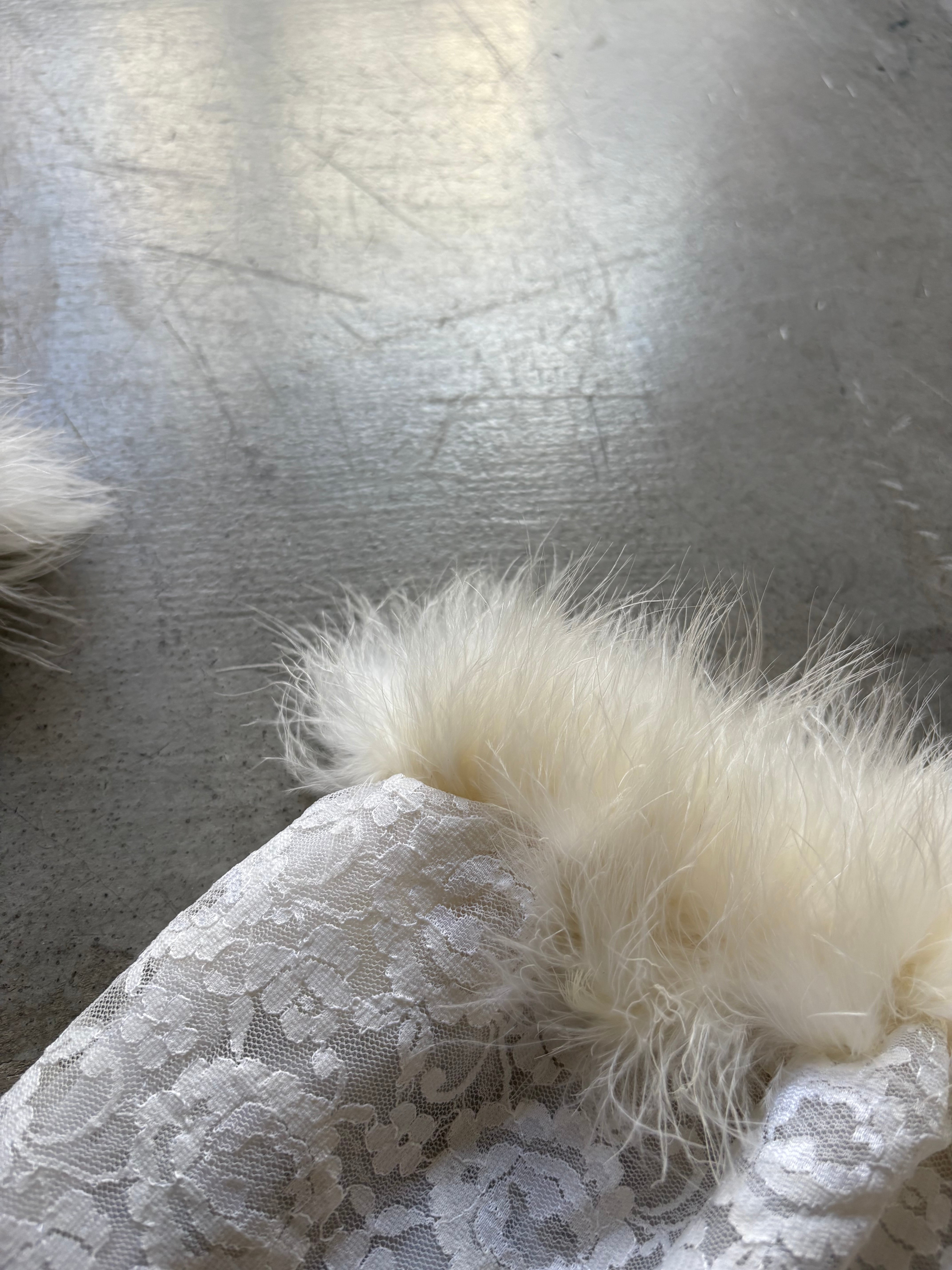 しっかりとリアルのフェザー装飾がなされております。ボディーは伸縮性のある化繊レース素材ですのでレイヤードにもってこい。
