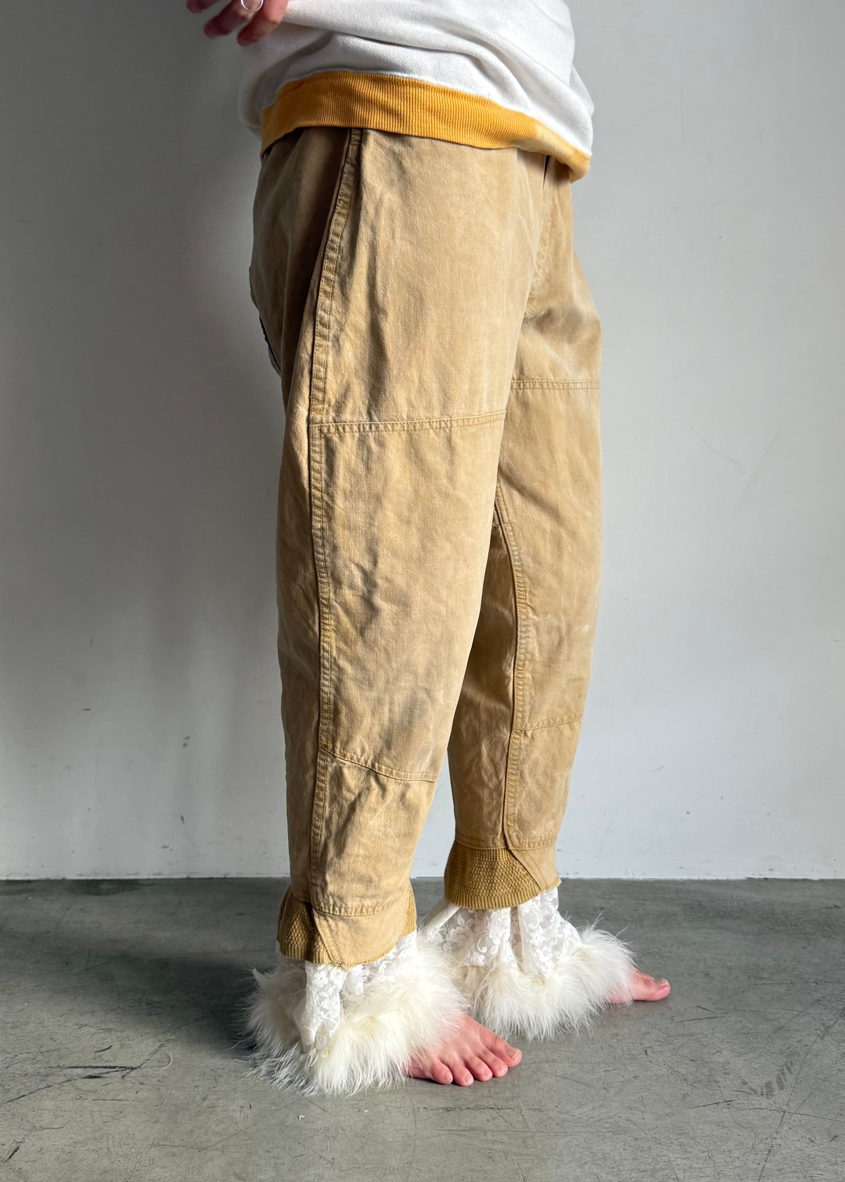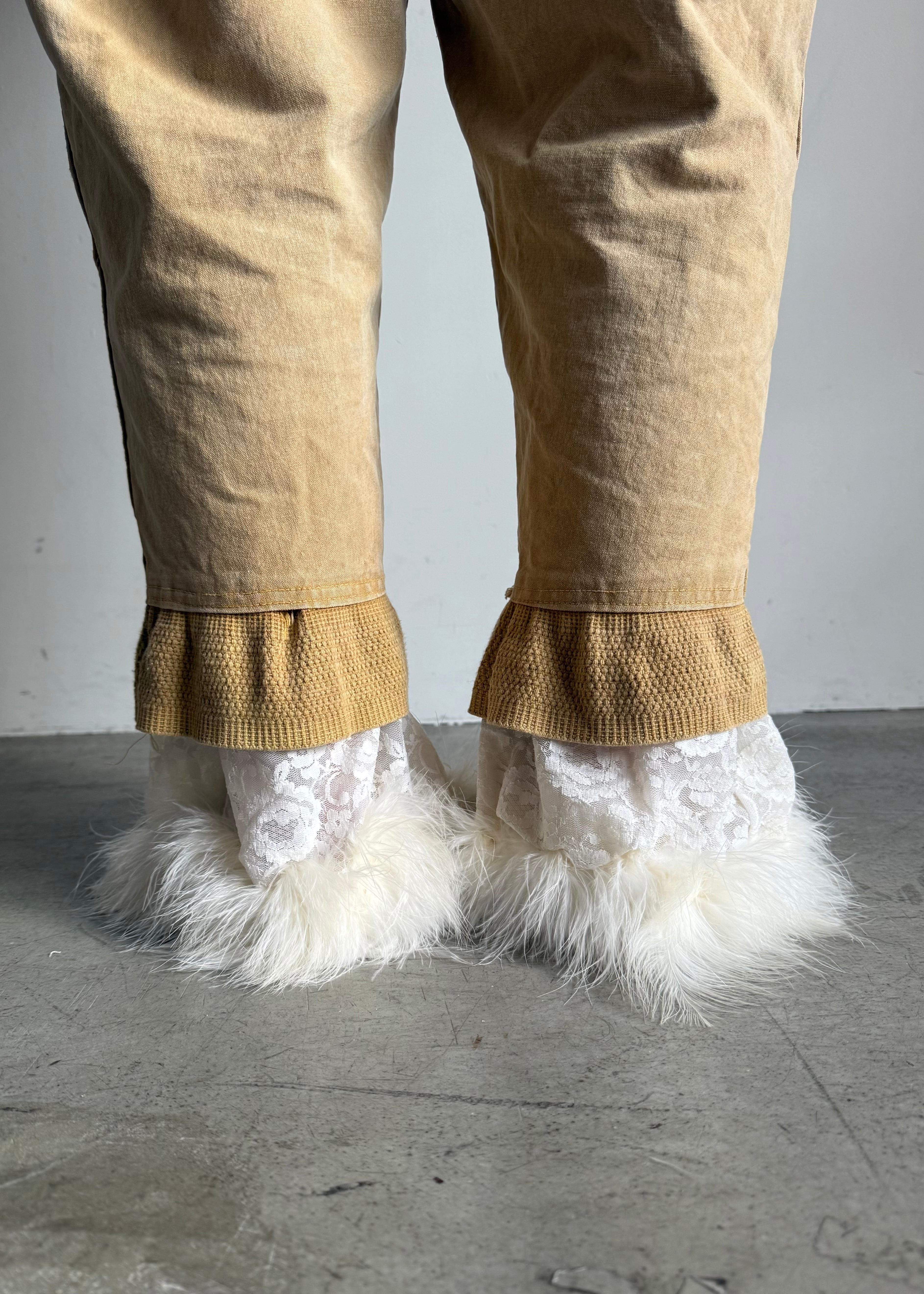 裾周りもですがローライズのパンツやスラックスを緩めに合わせて腰回りのデザインも楽しめるかと思います。