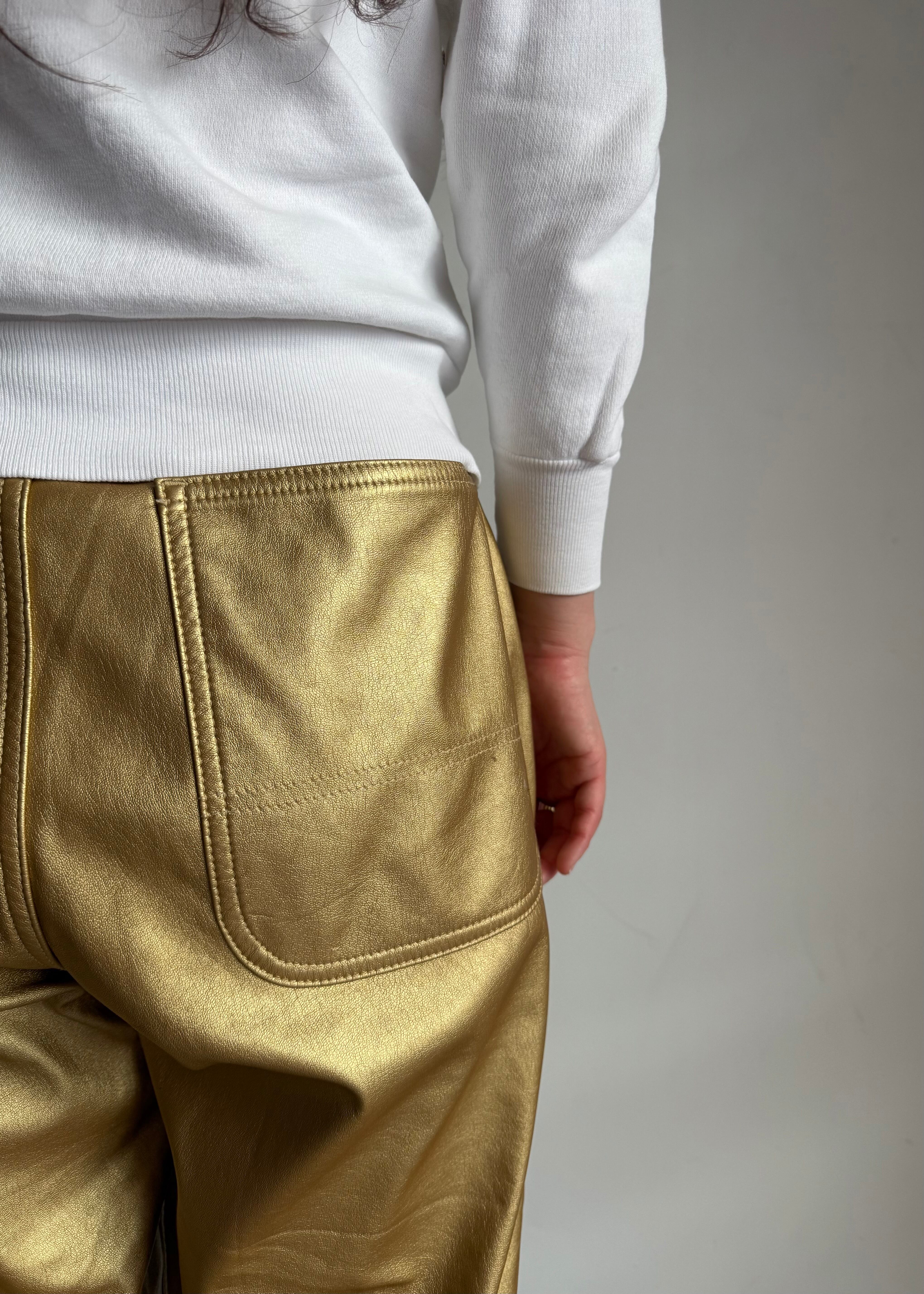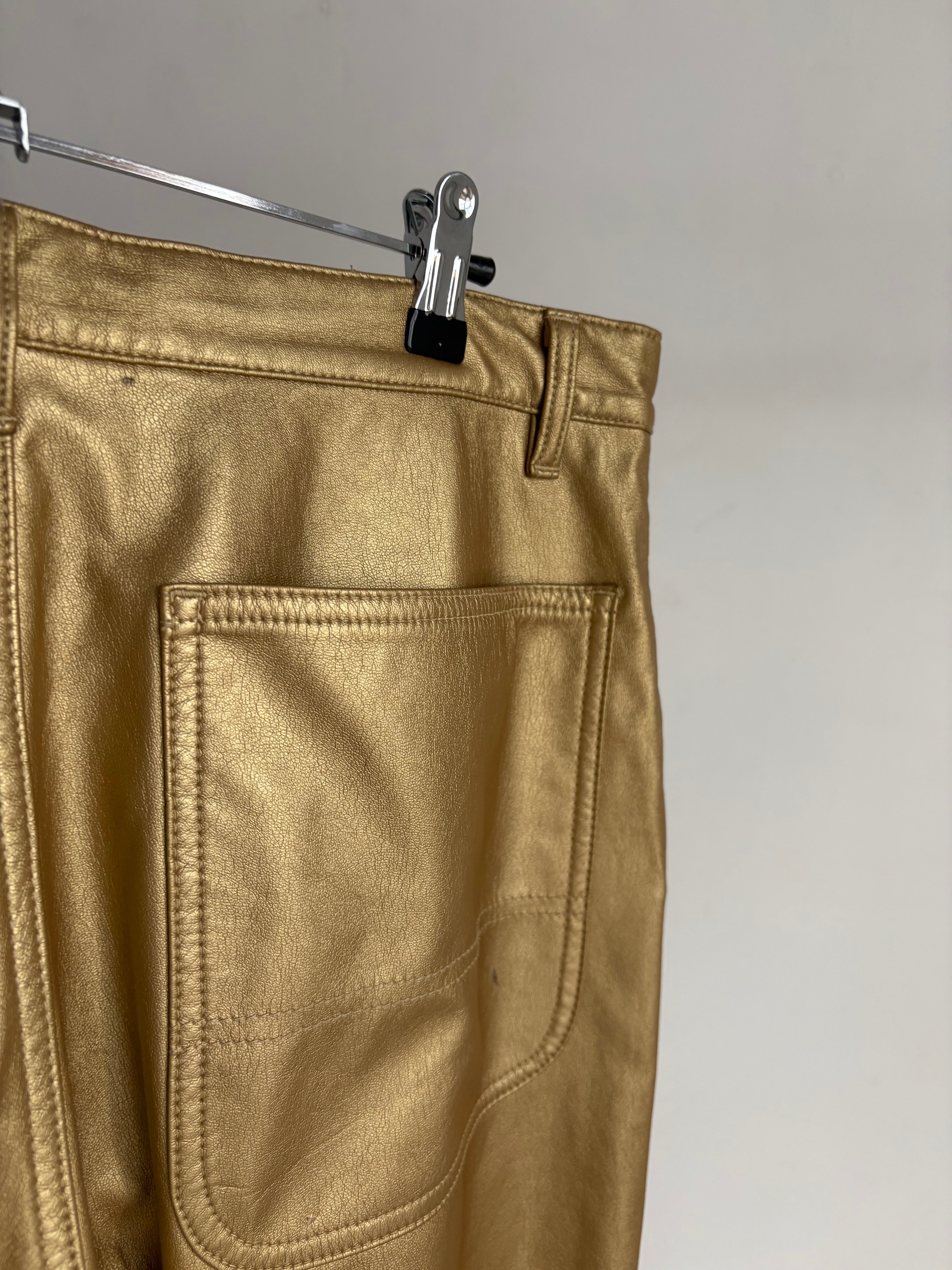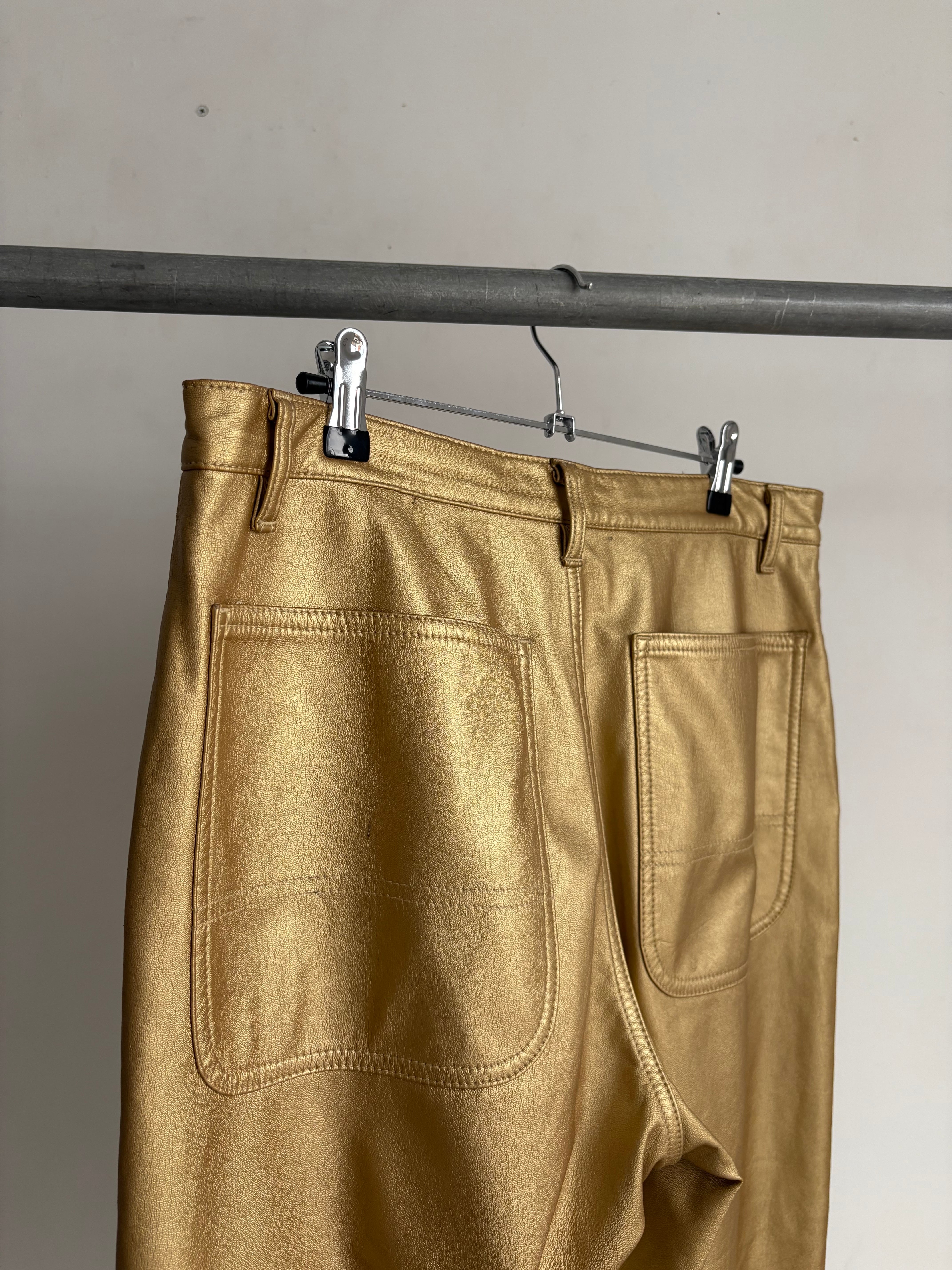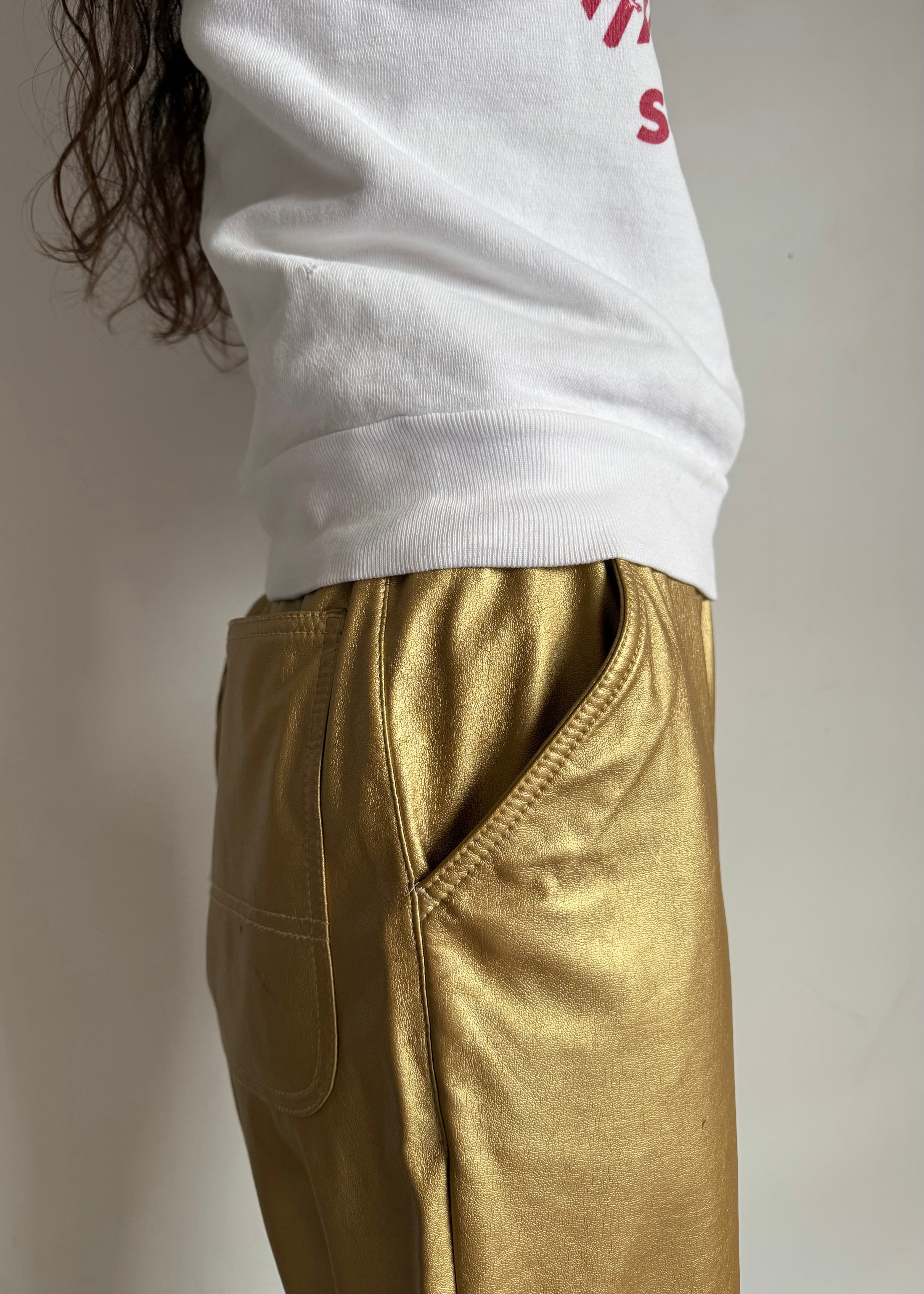 色と素材以外はワークパンツのディテールなのが良いですね。フロントののボタンも靴のソールの様な素材。