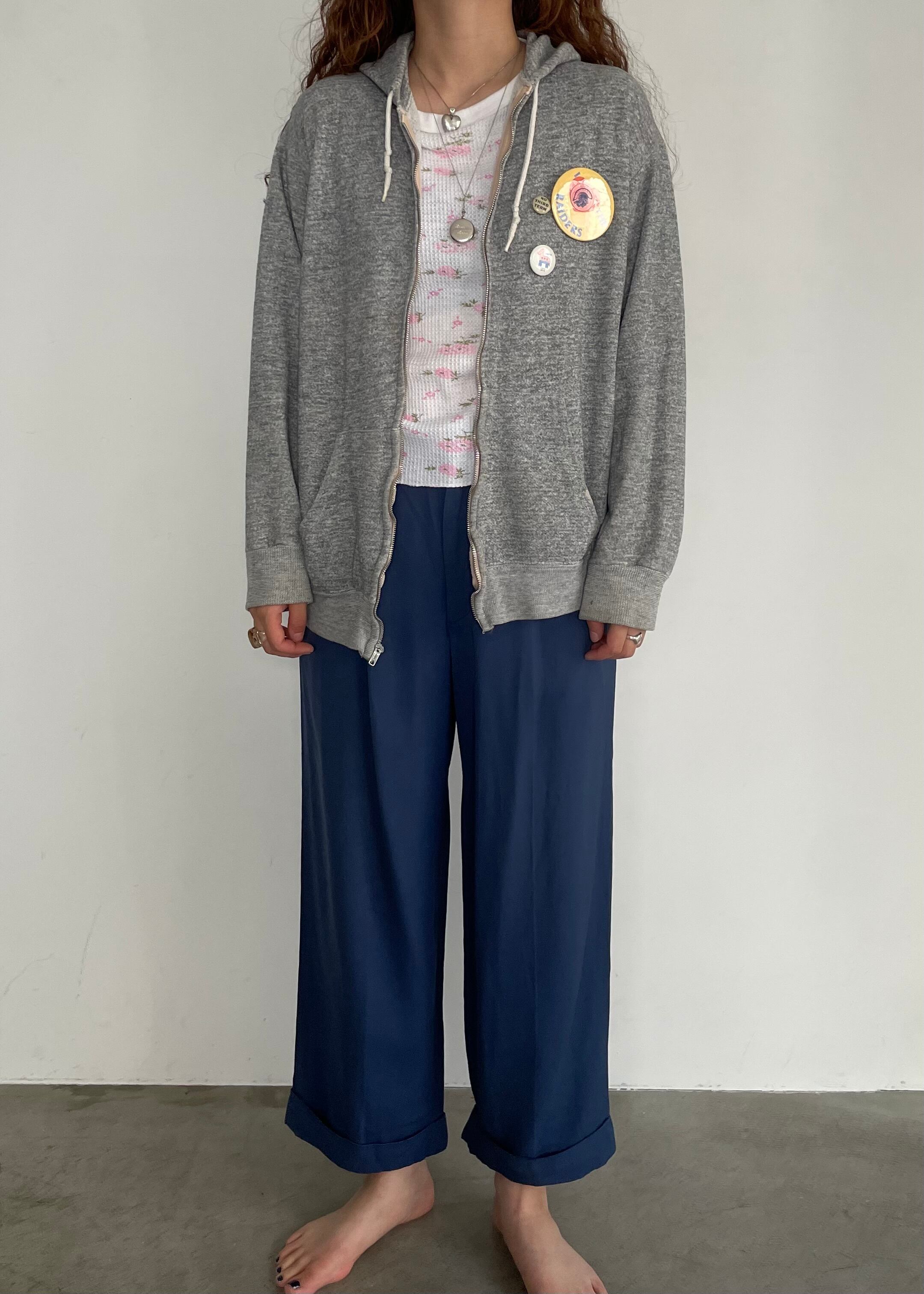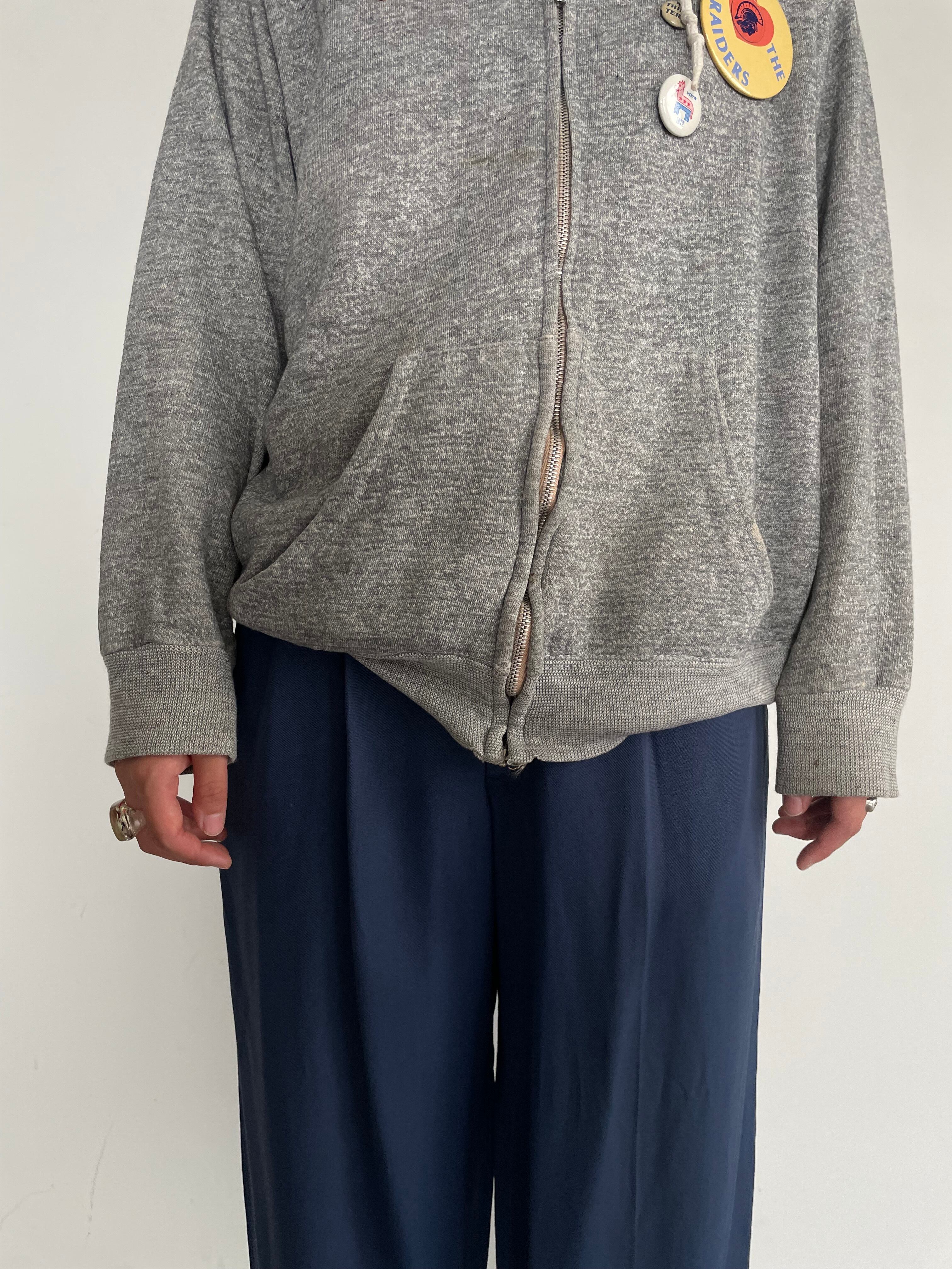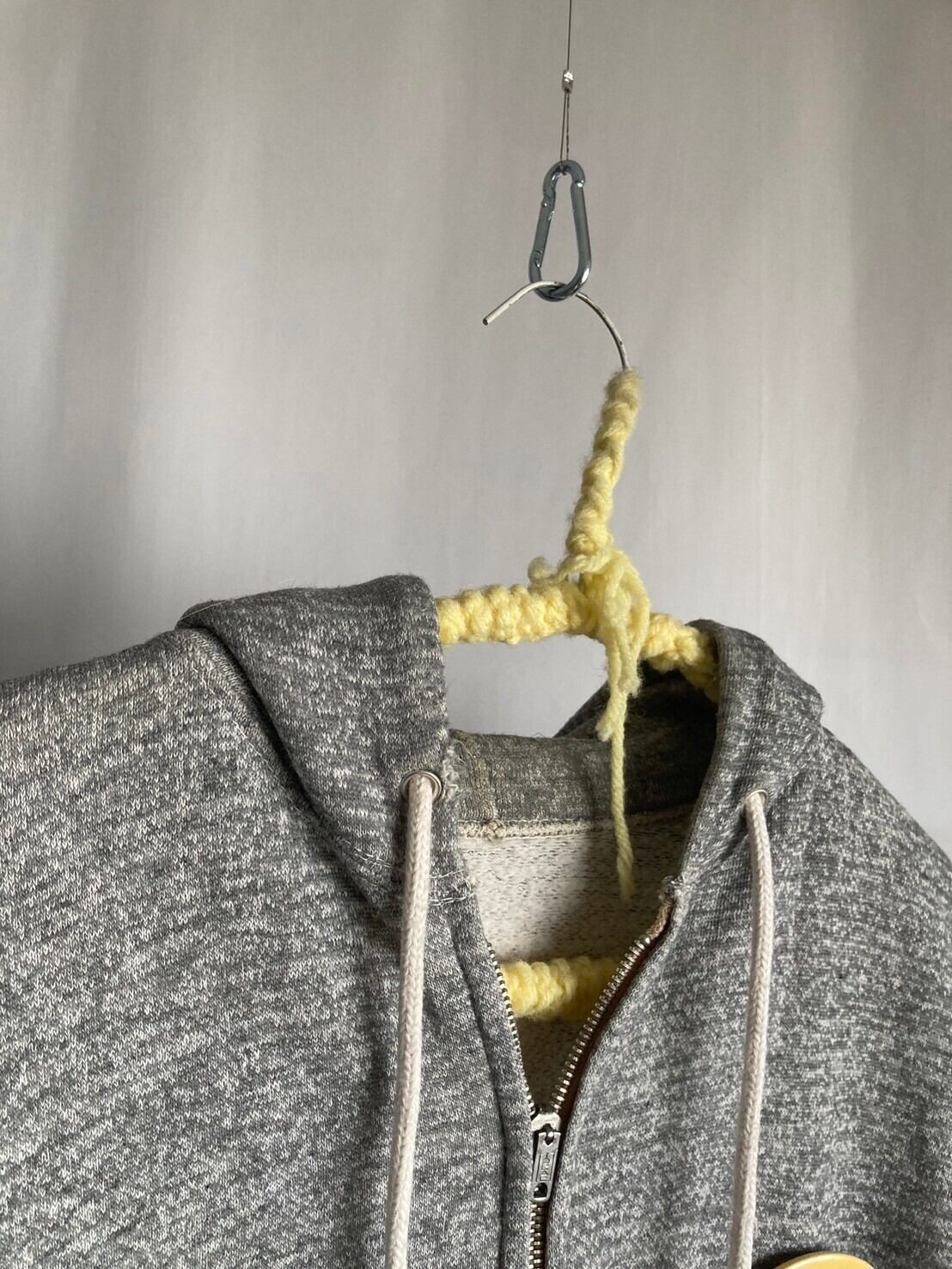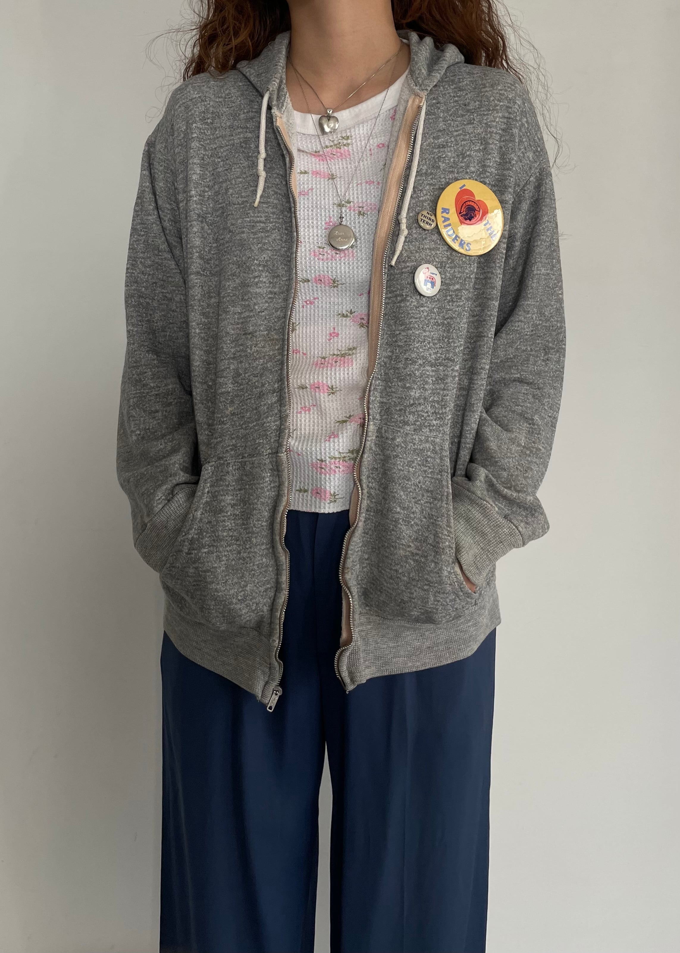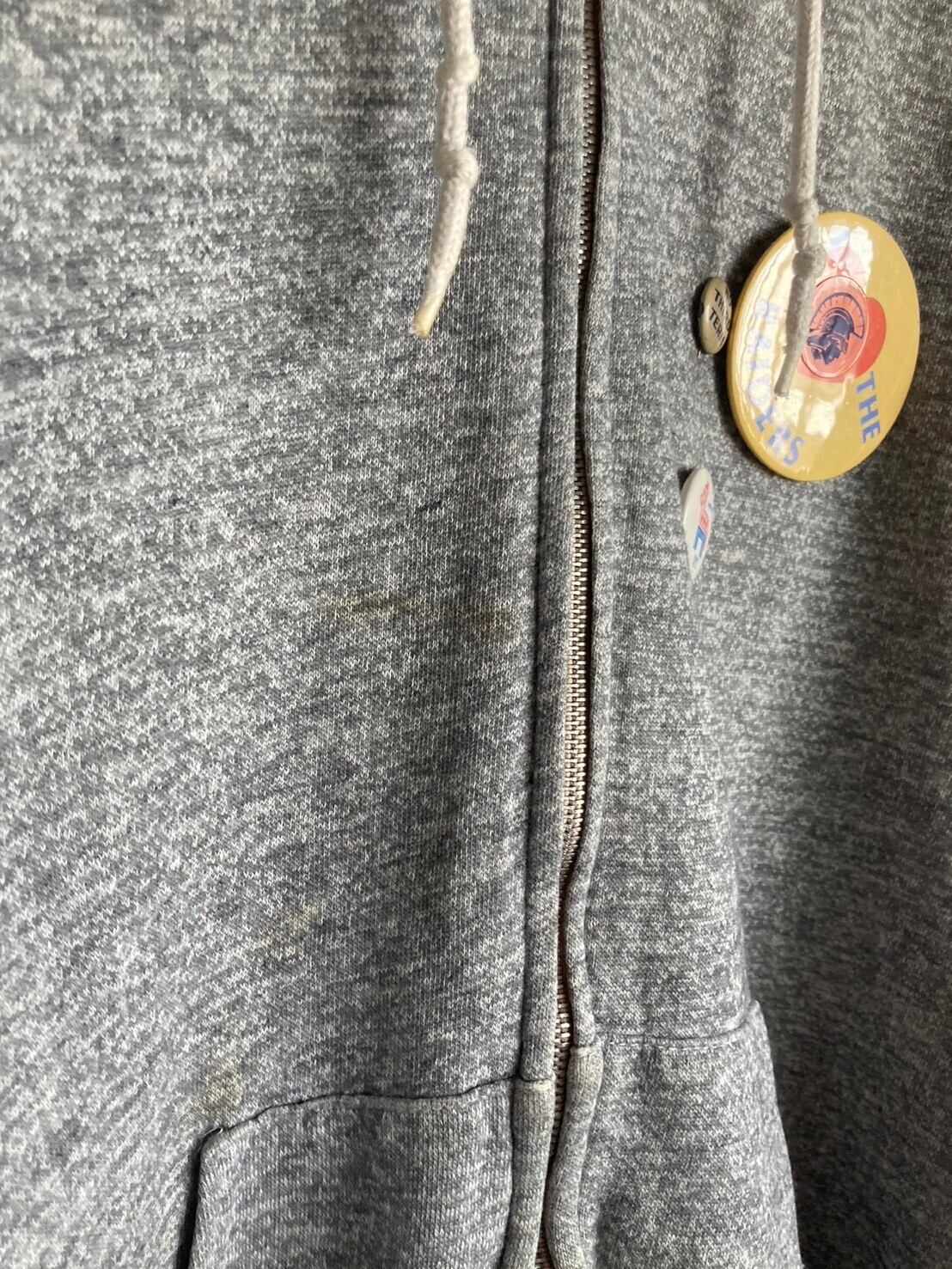 堪らないヘザーグレーのボディ。ジップのうねりやらリブのこの感じがとても古着。