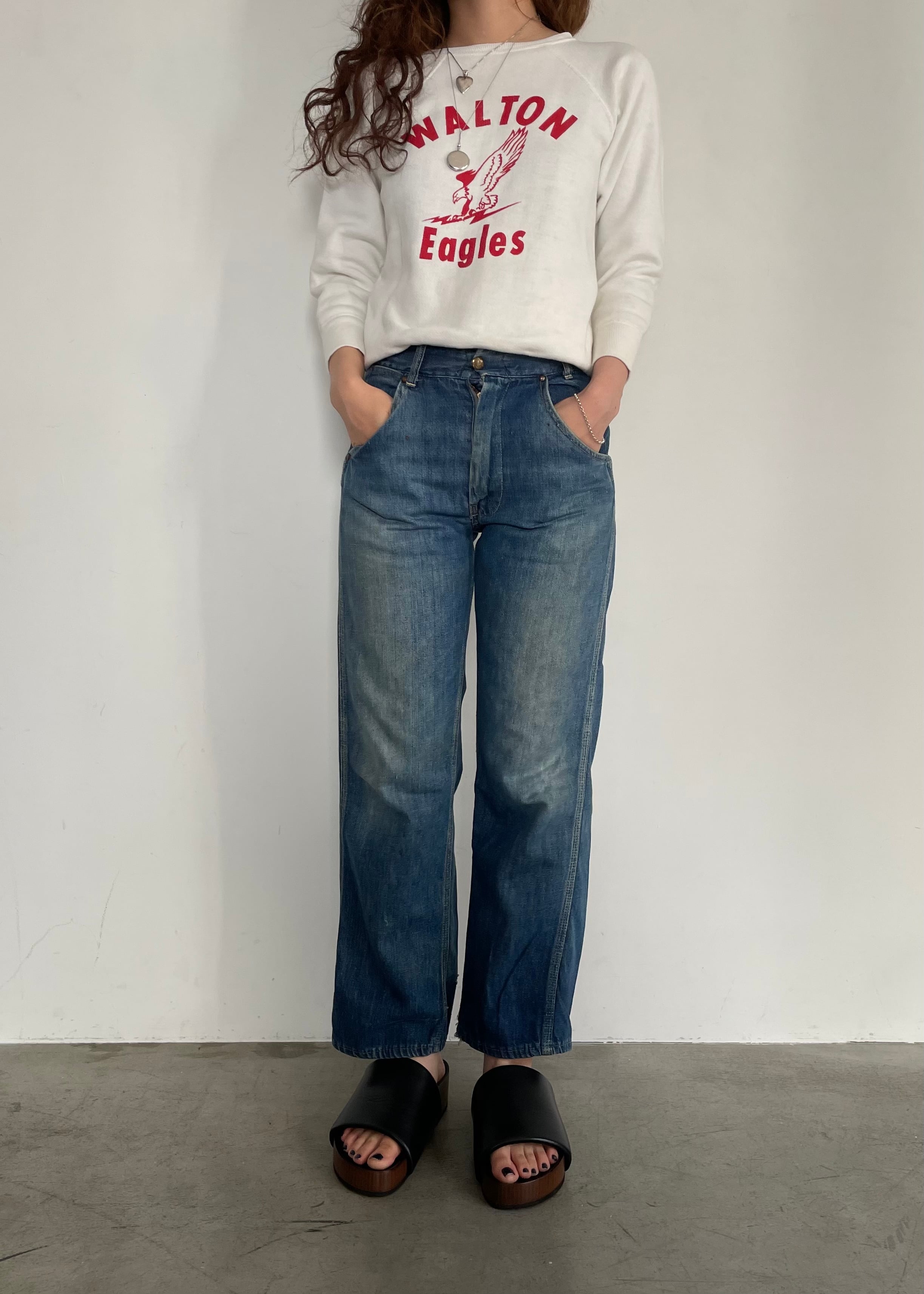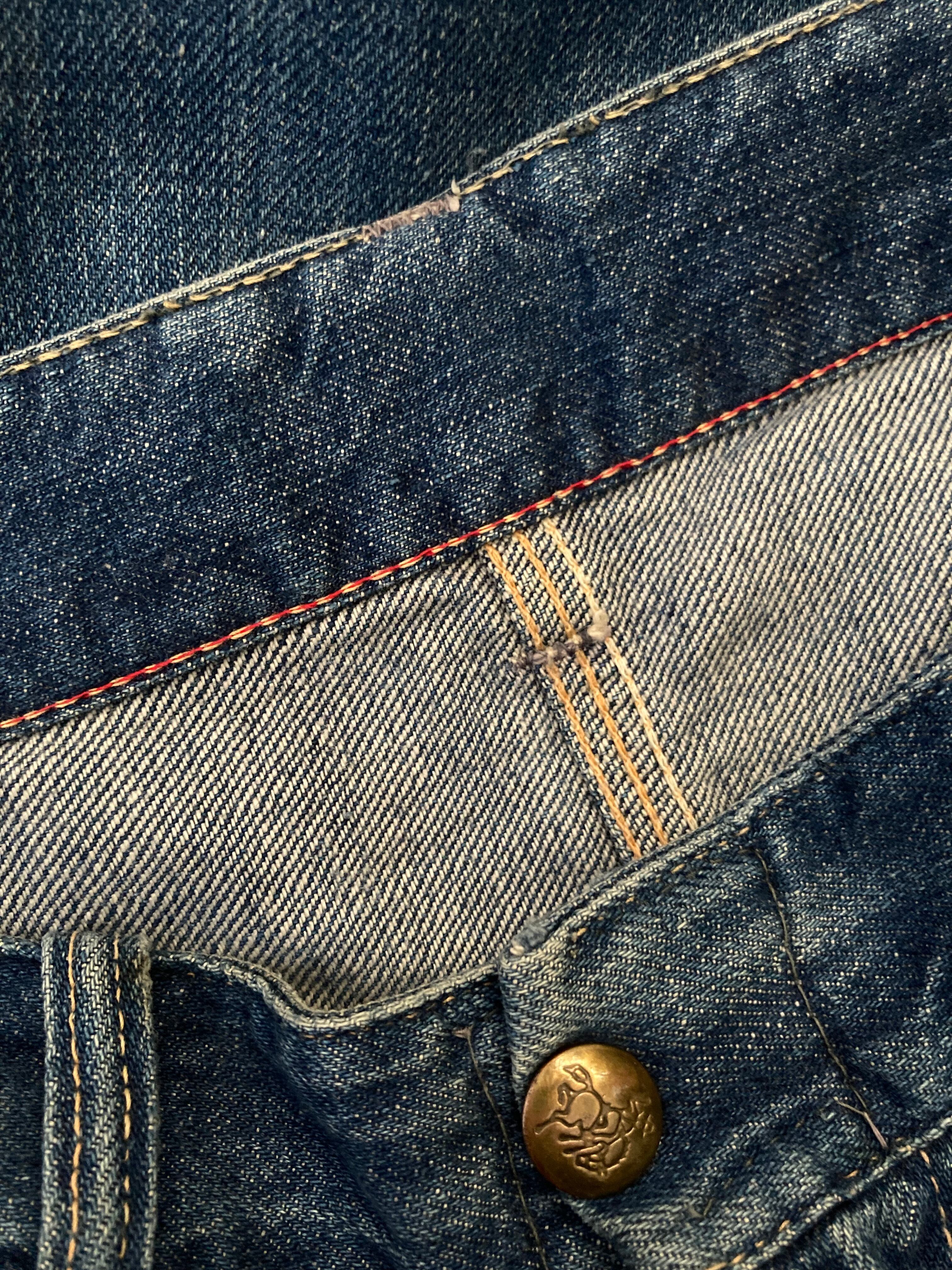 コの字zipper、イエローステッチ、縦落ちが、、、そんな細かいことより履いたらとても可愛いデニムです。