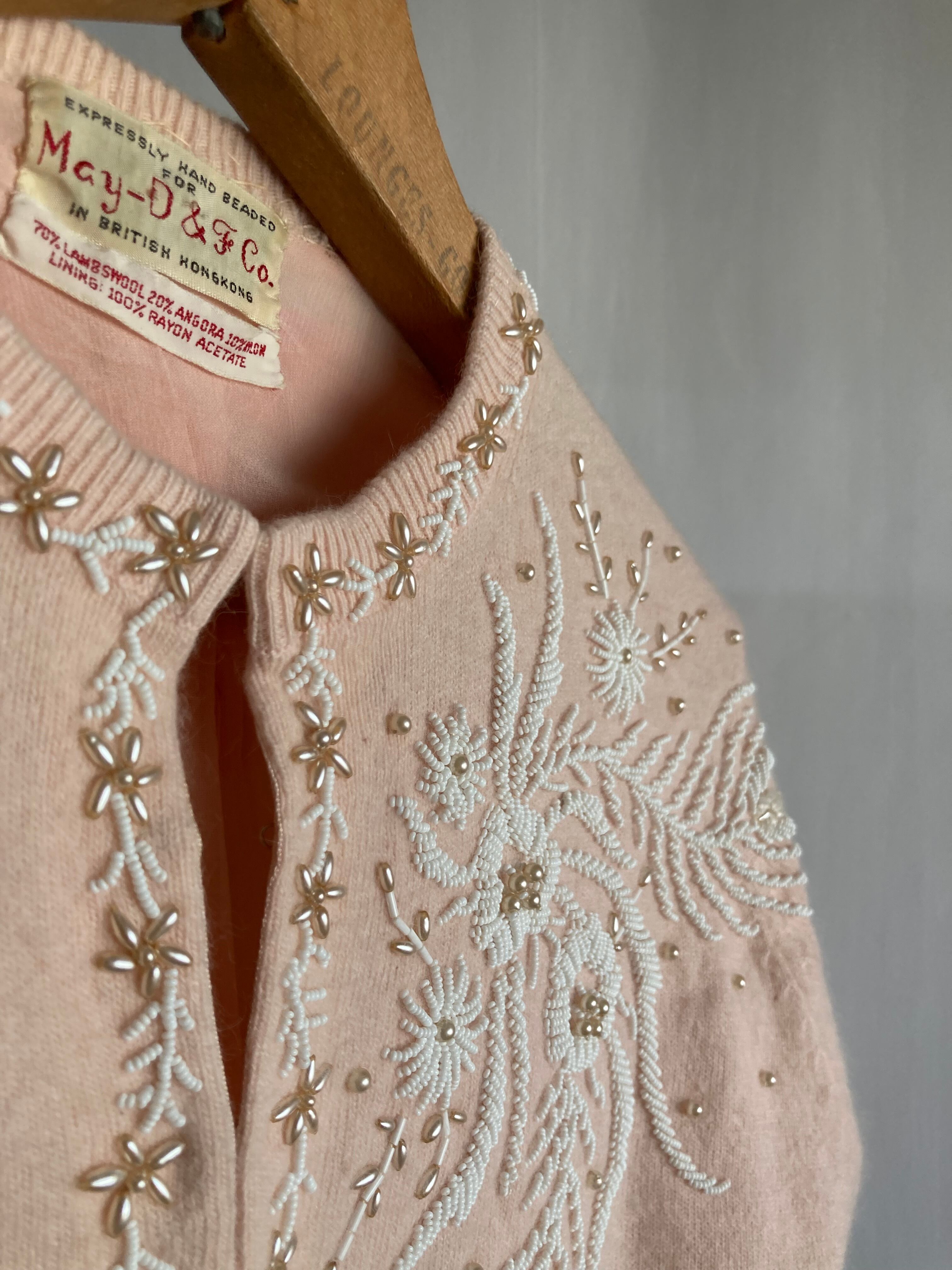 古いデコレートカーディガン。アンゴラヘアミックスでとっても柔らかいです。
