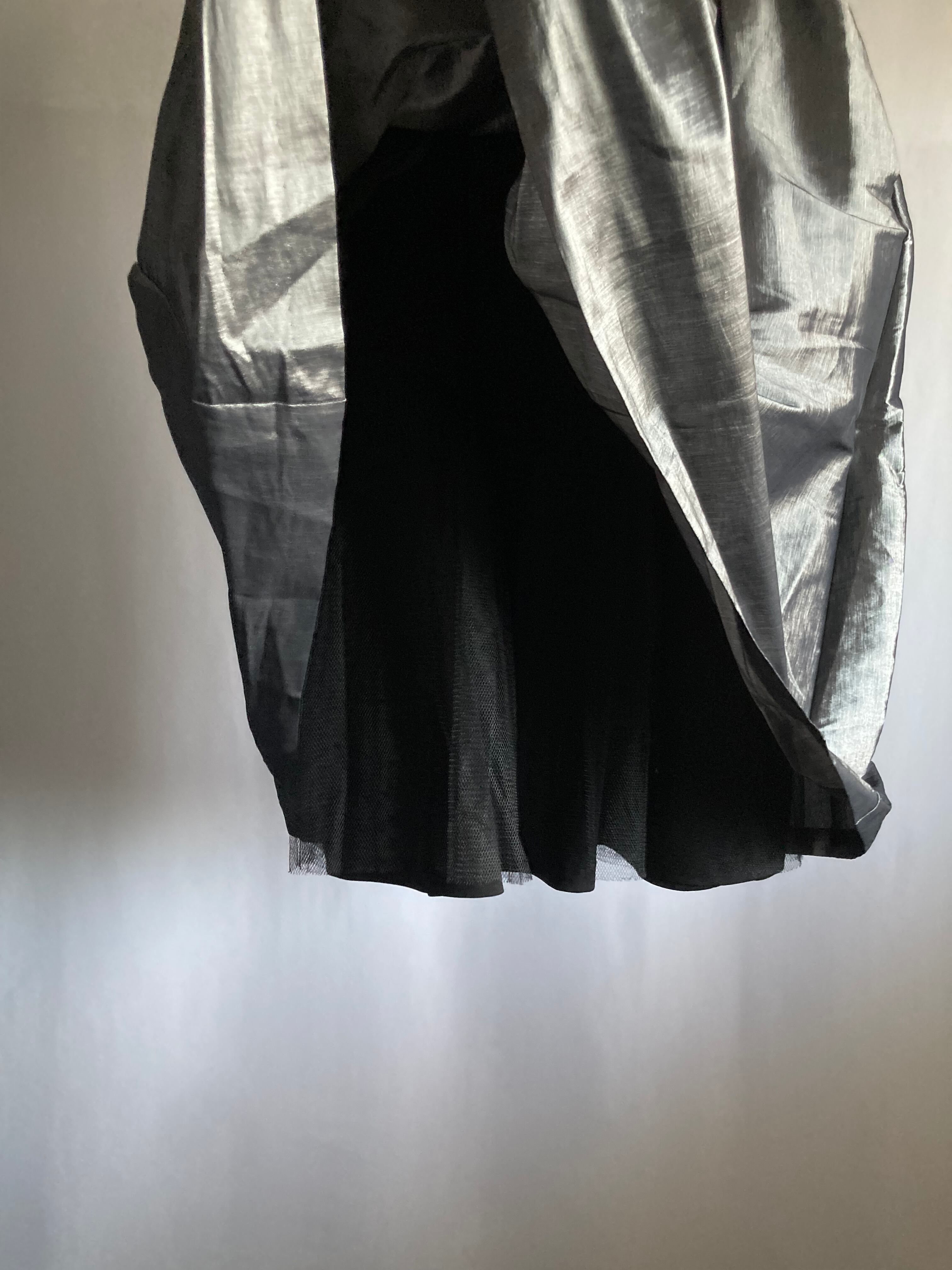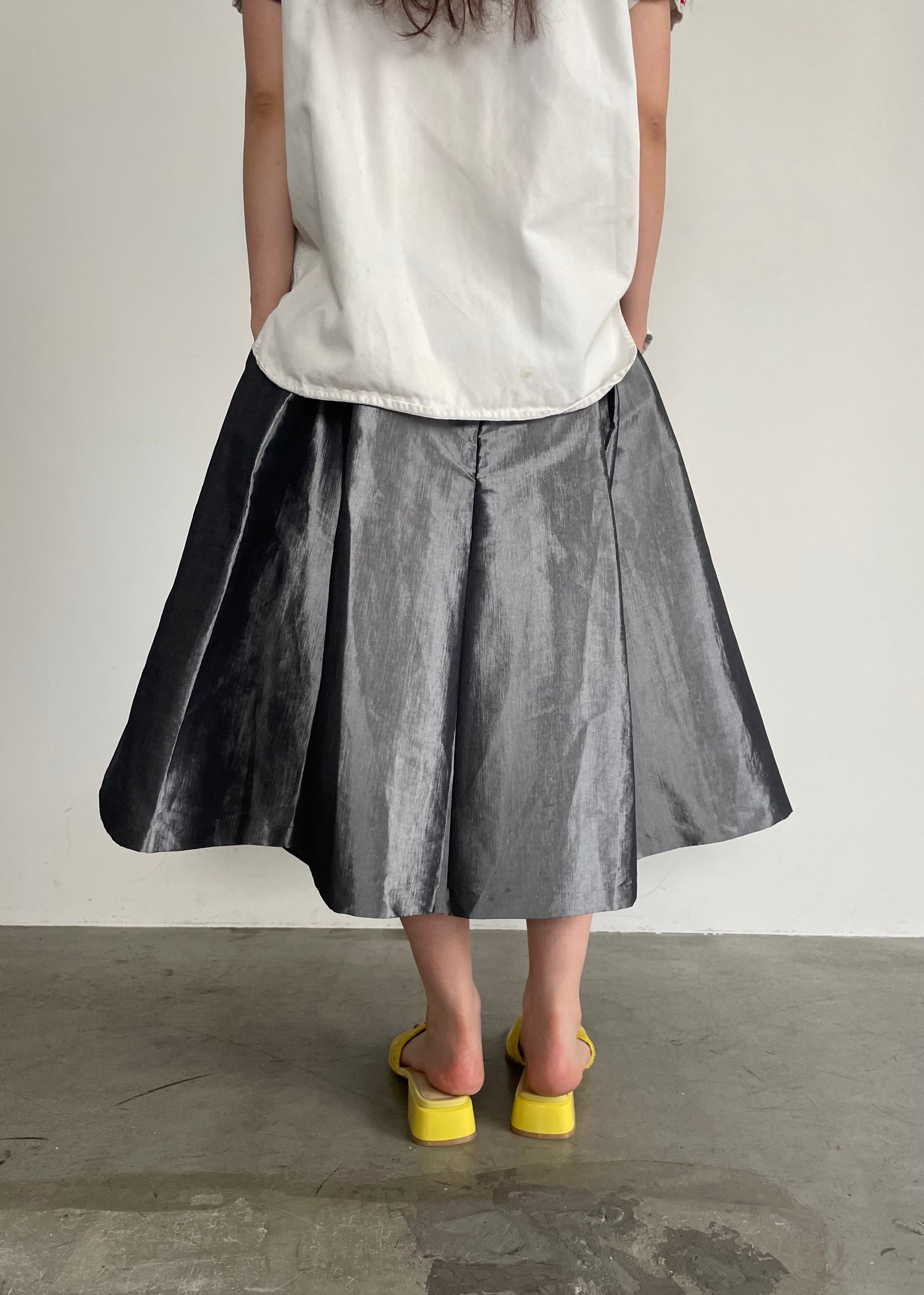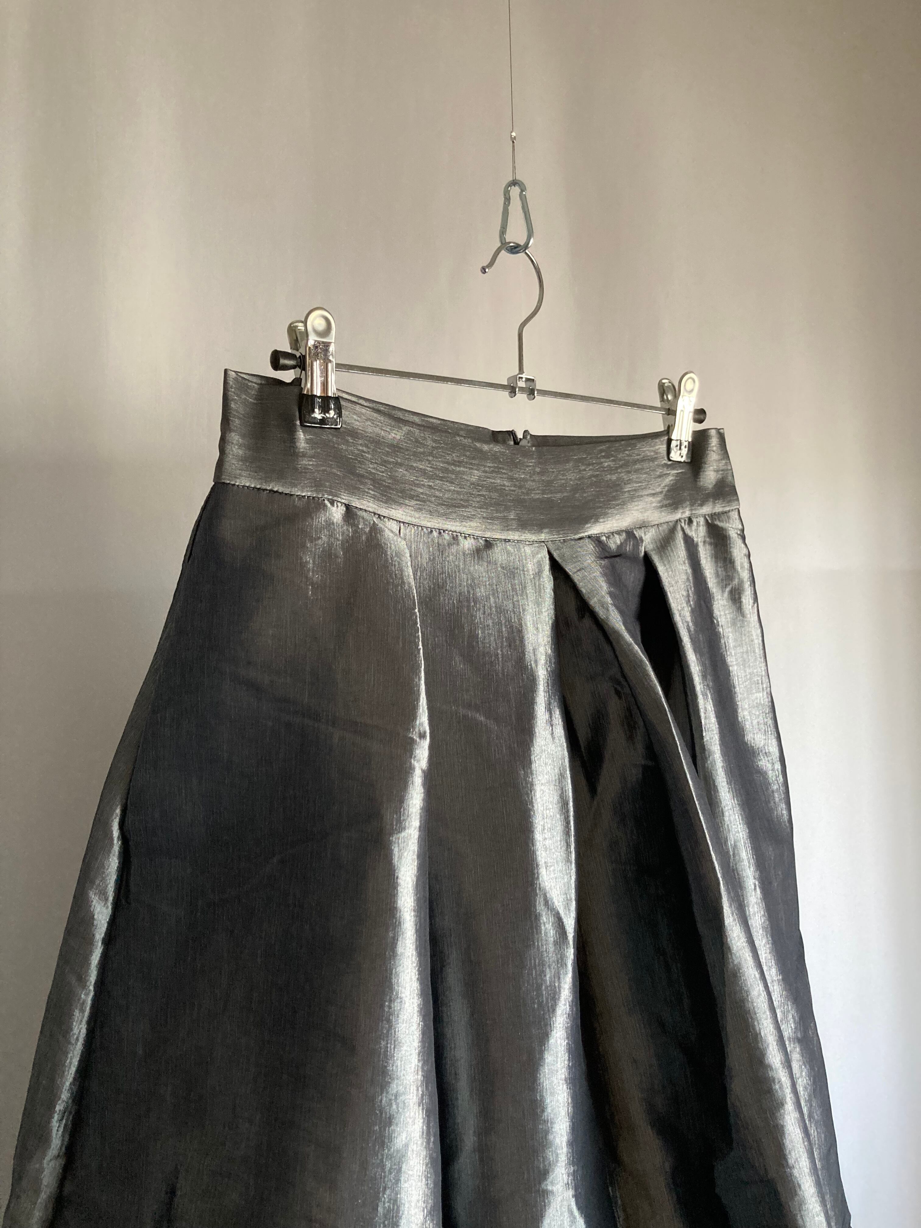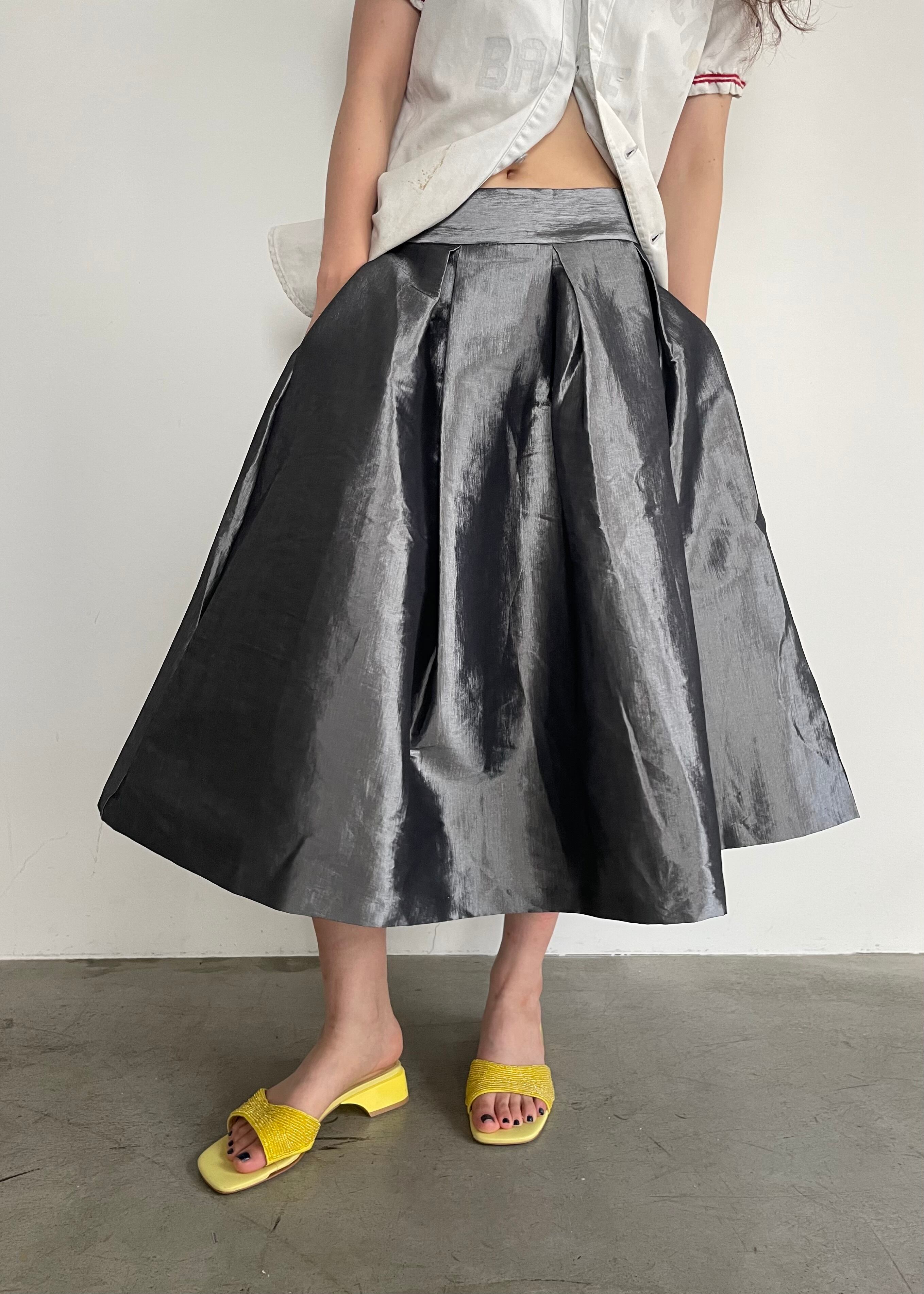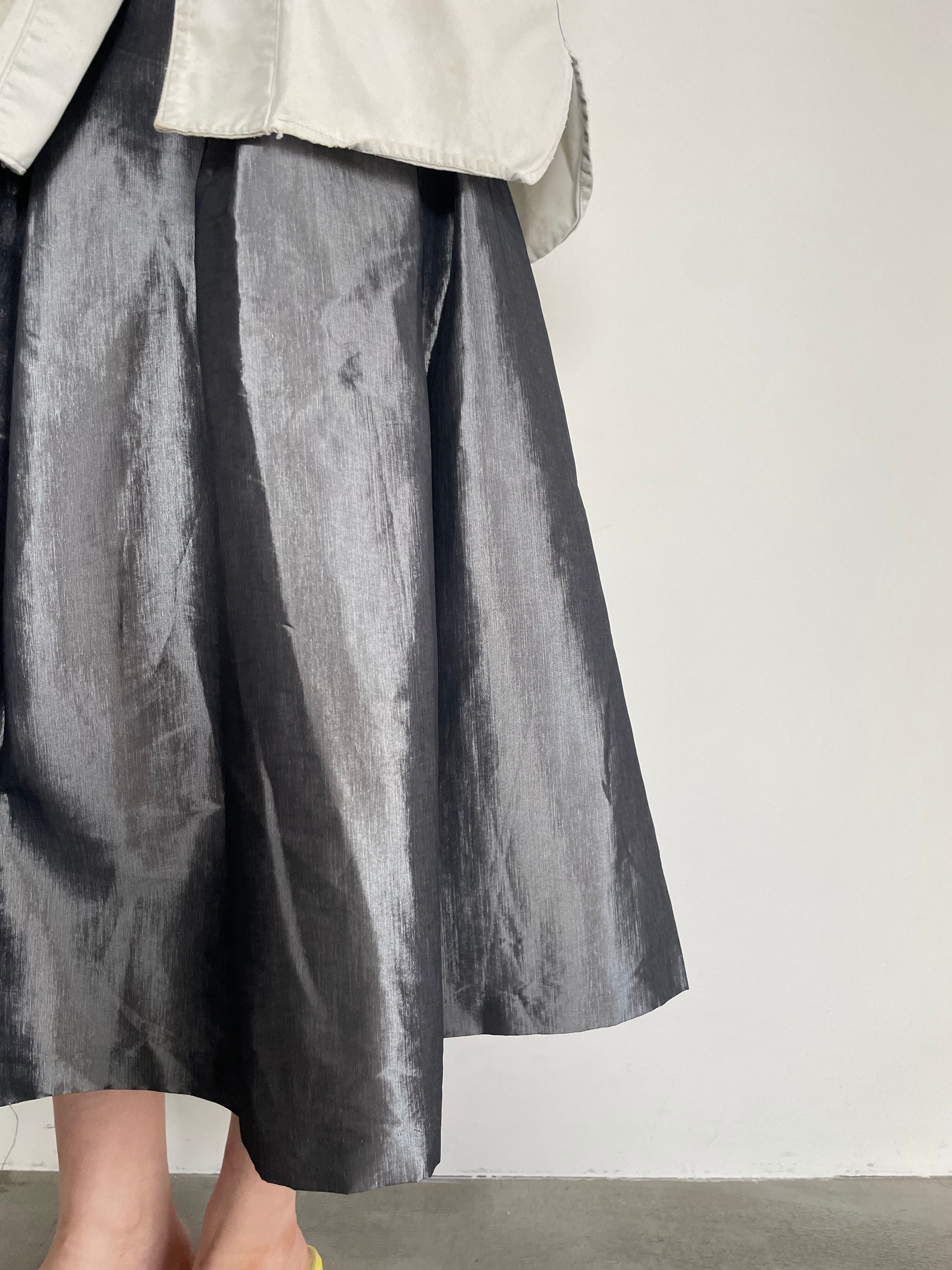 メタリックのボリュームがあるスカートです。中にライニングに併せてチュールがつくのでとても感じのいいボリューム感が。