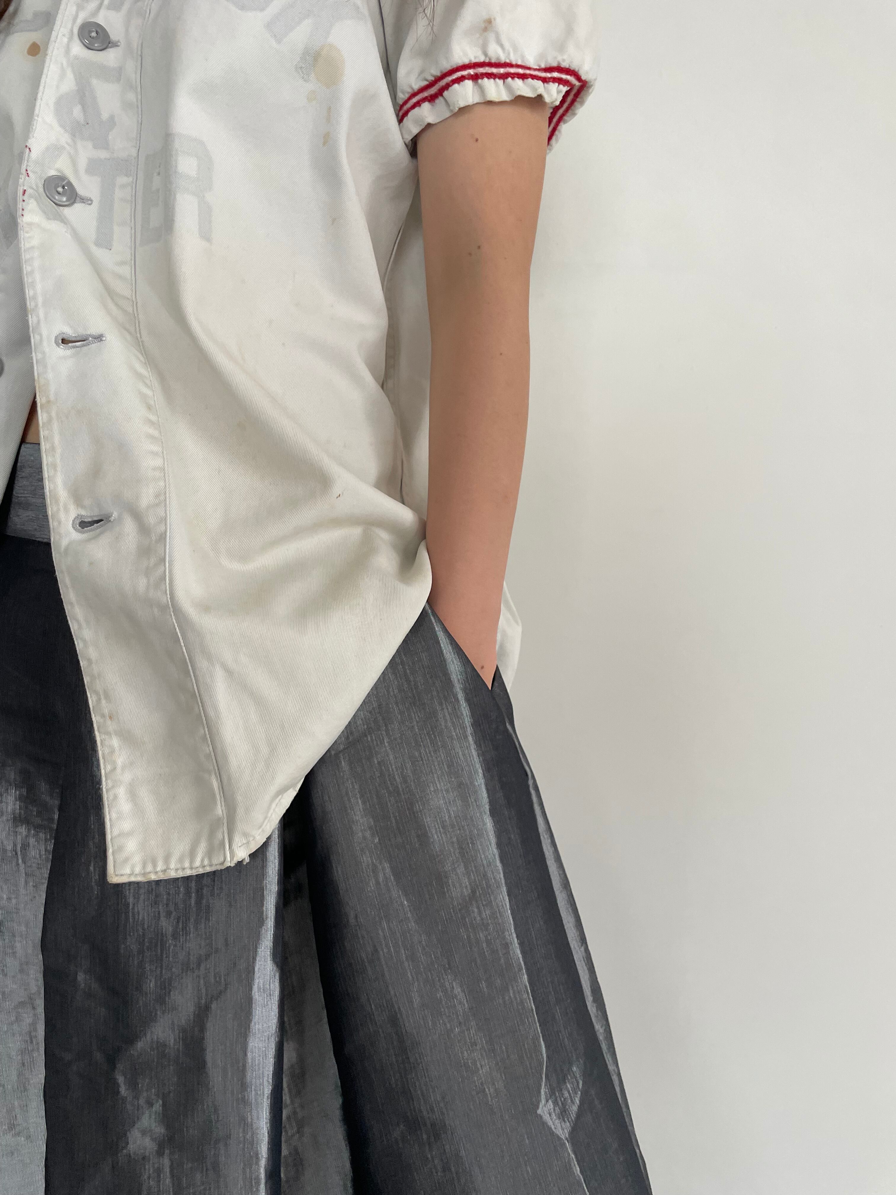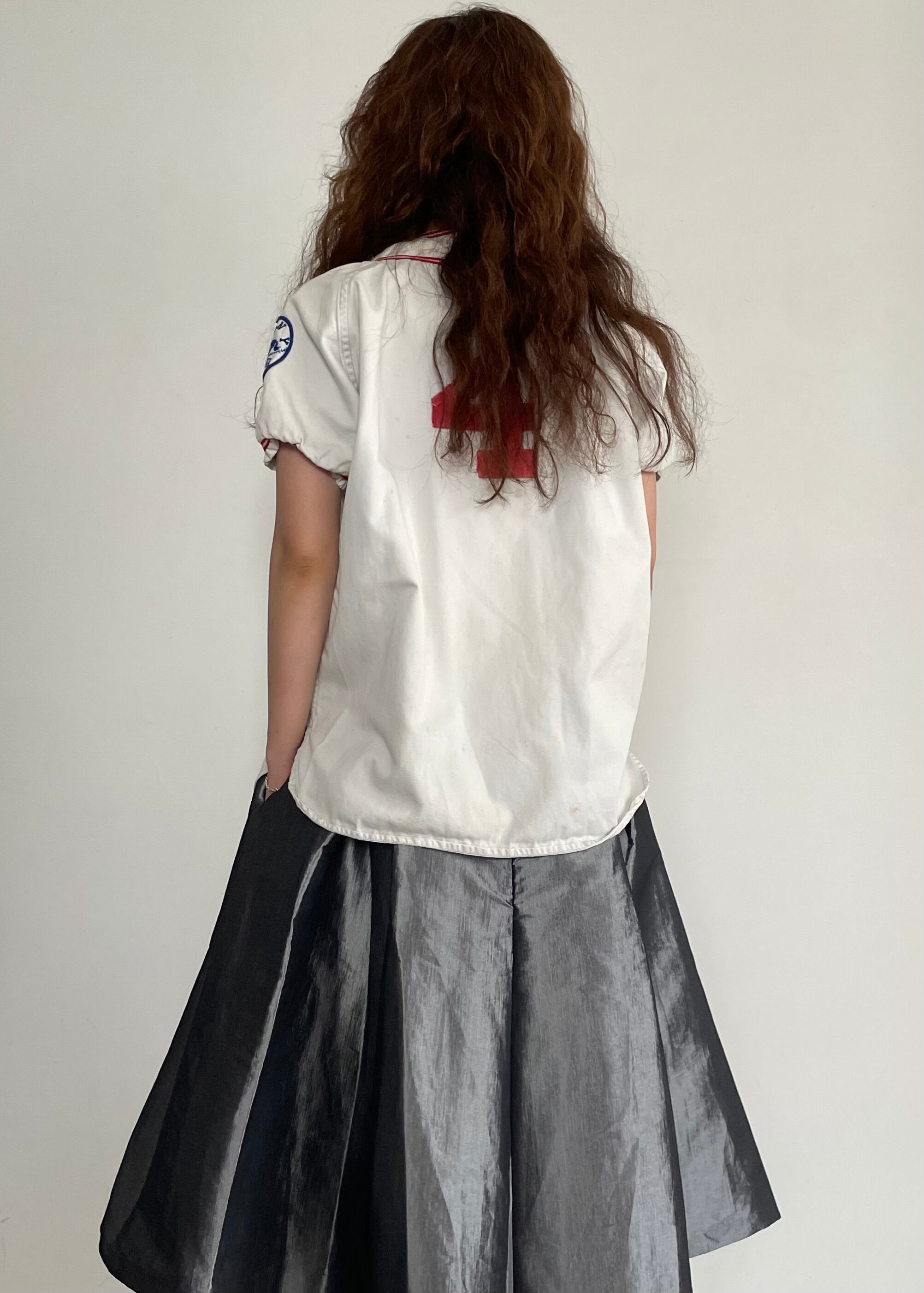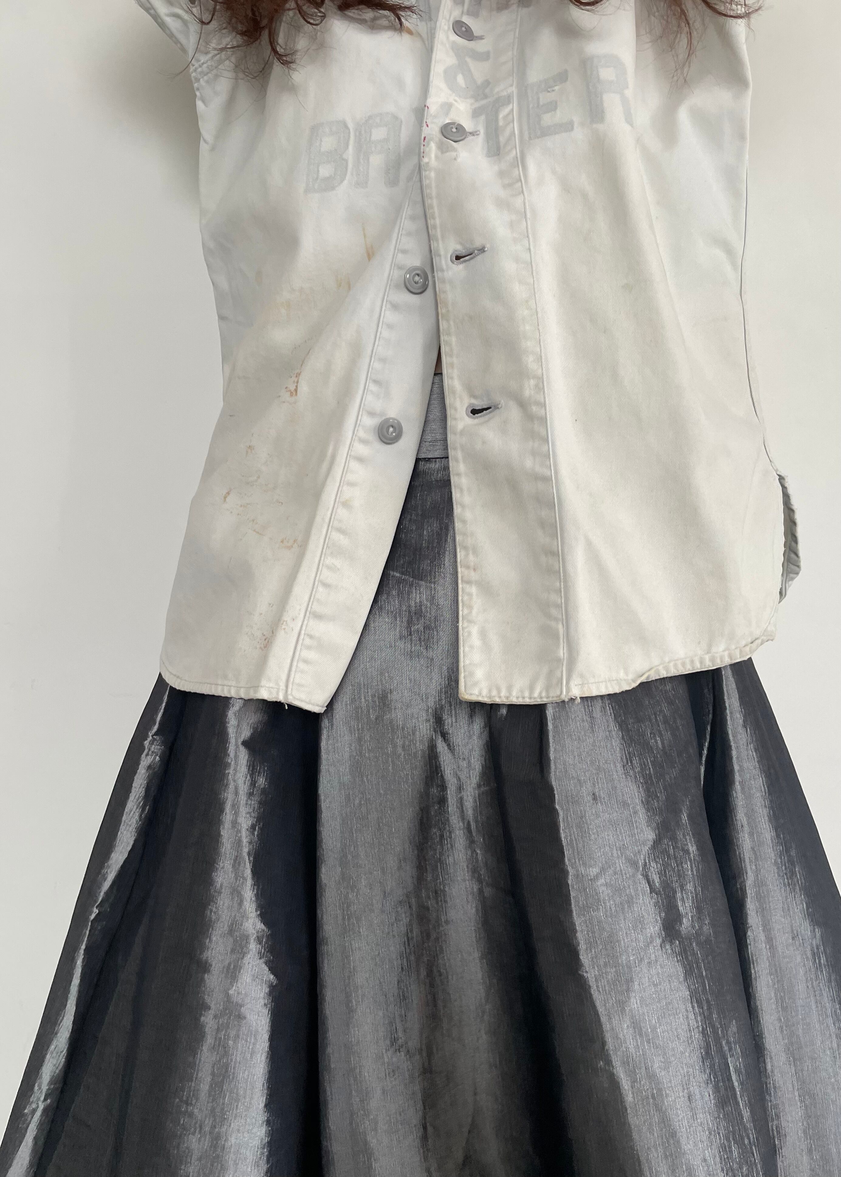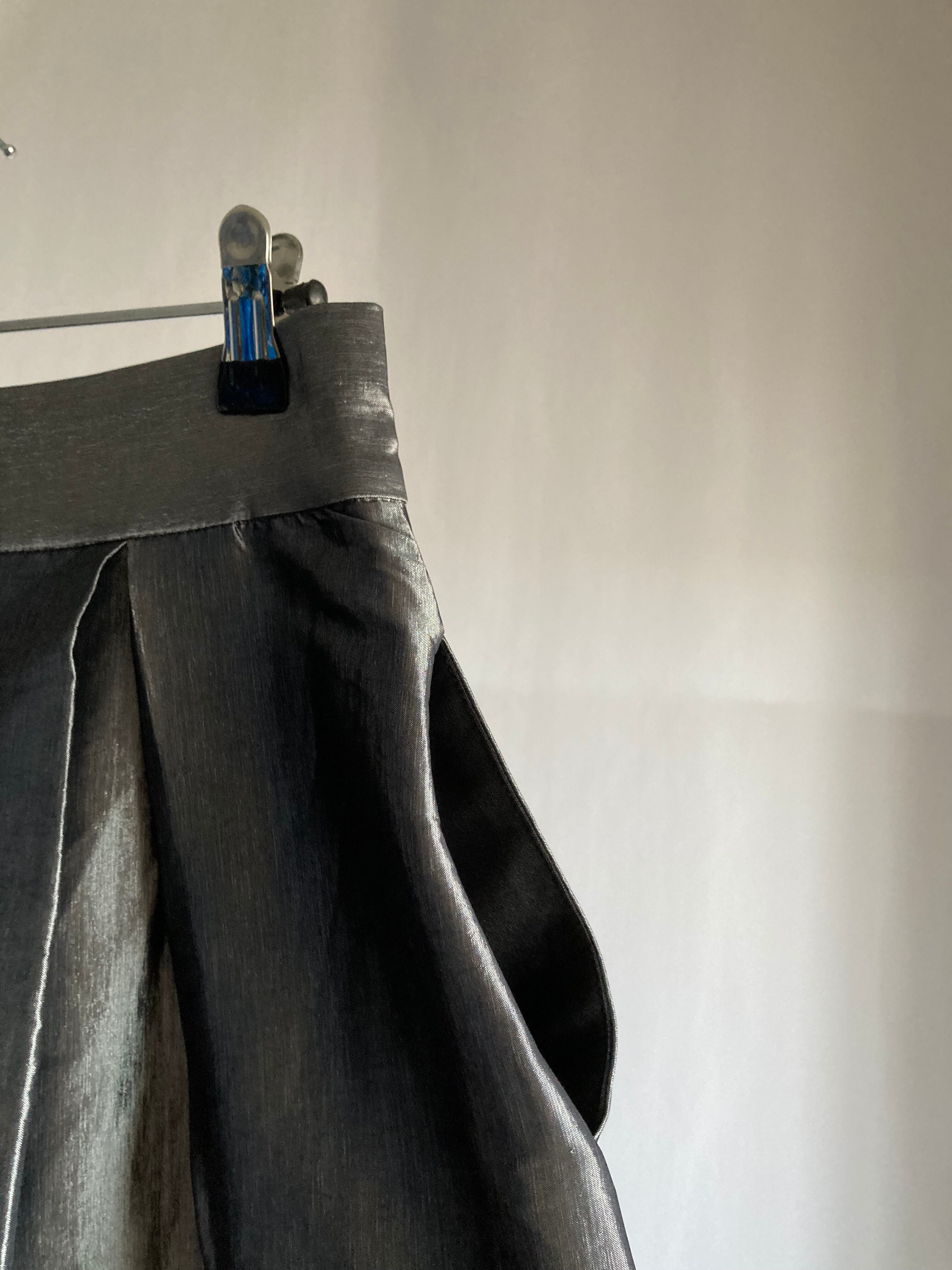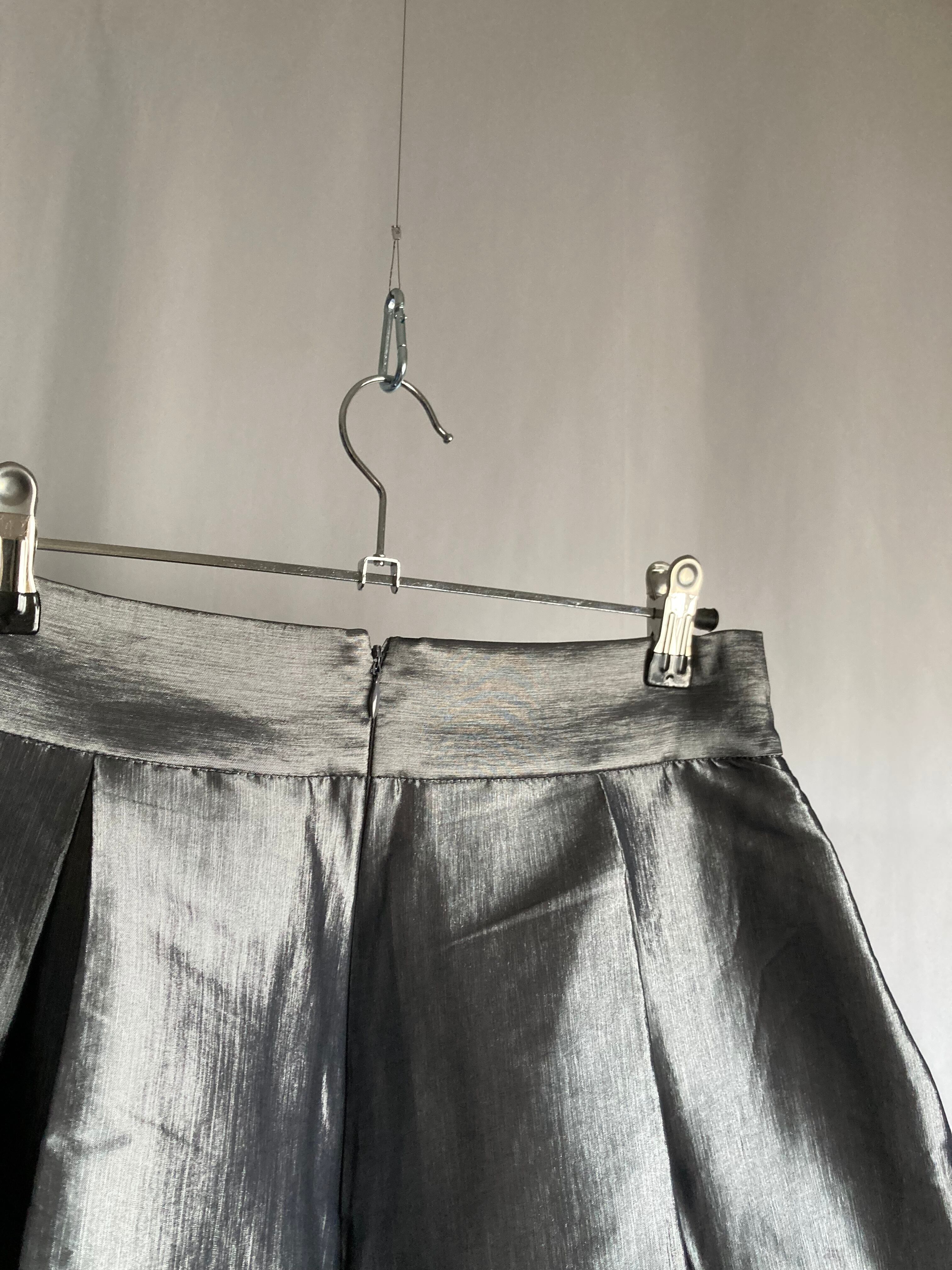 メタリックのボリュームがあるスカートです。中にライニングに併せてチュールがつくのでとても感じのいいボリューム感が。