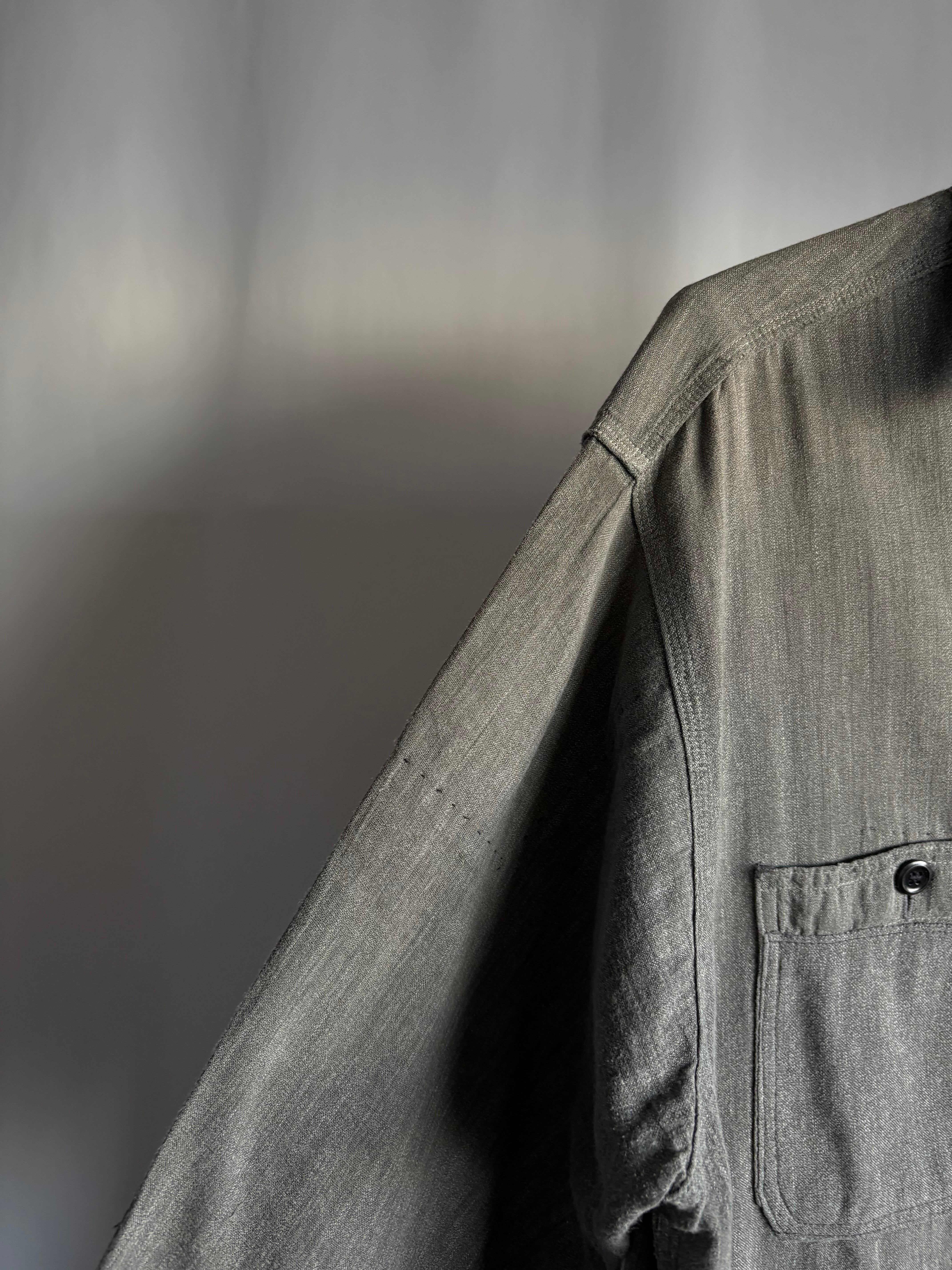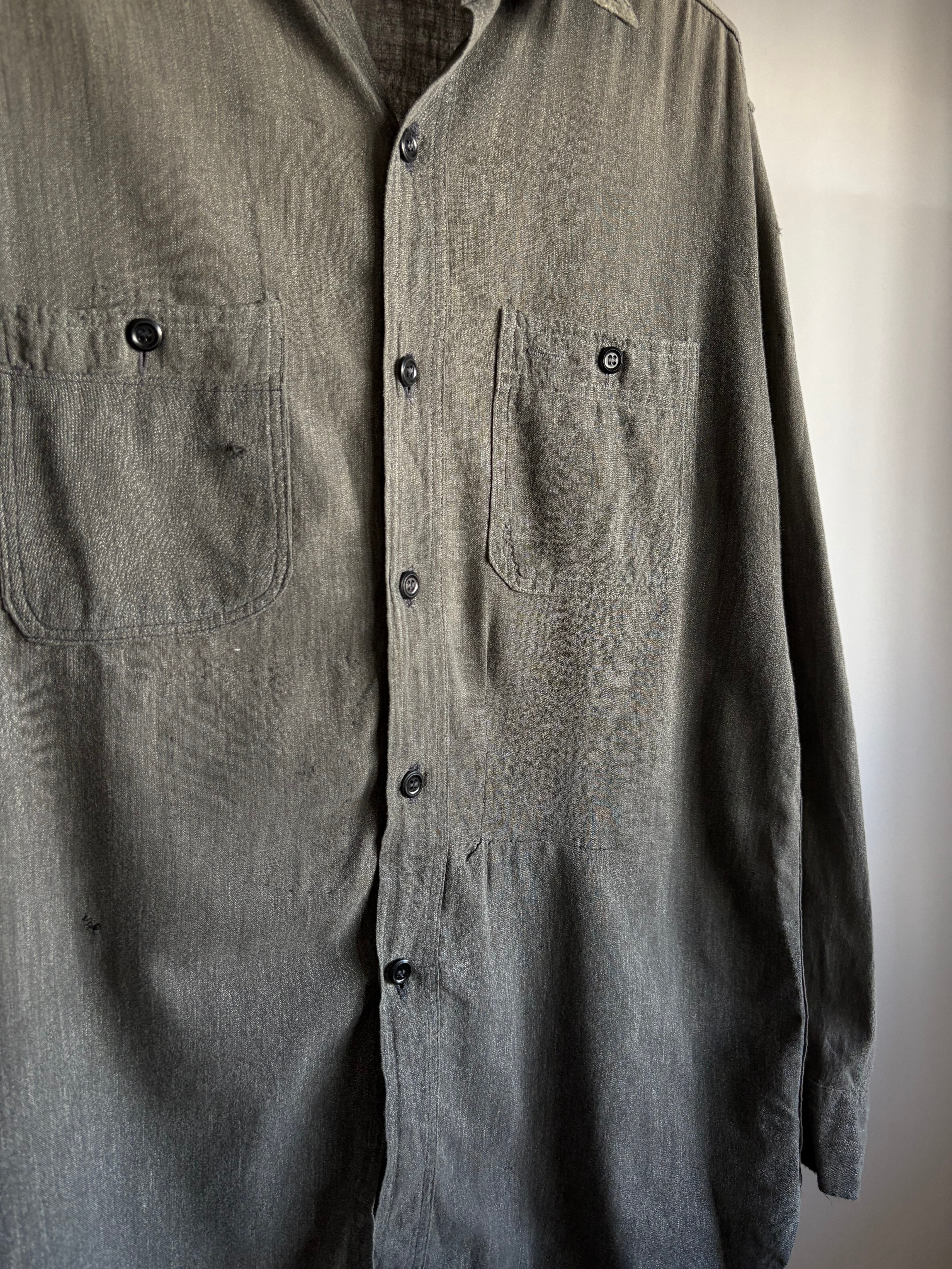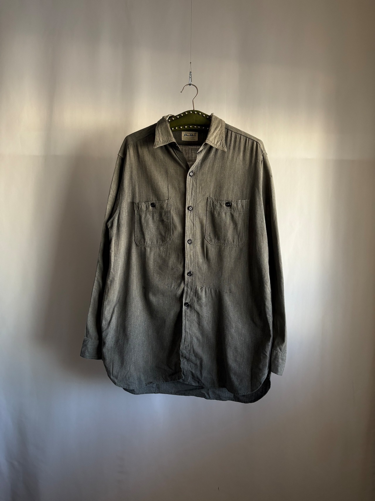 大きいです。黒い色のシャンブレーシャツです。通常は青が常なこのシャツですが珍しさとごま塩の様なこれでしかない様な色の塩梅が妙。