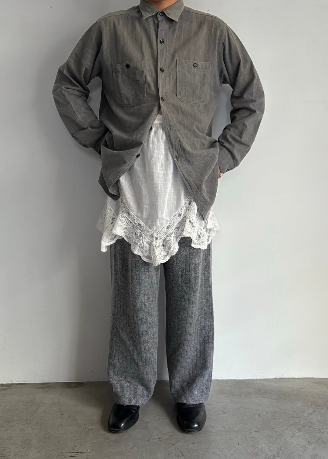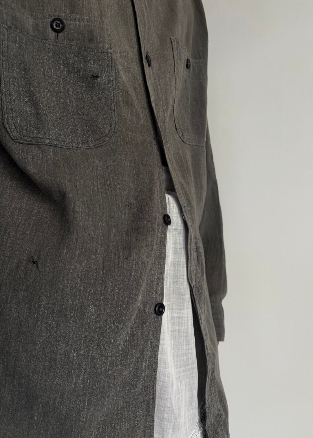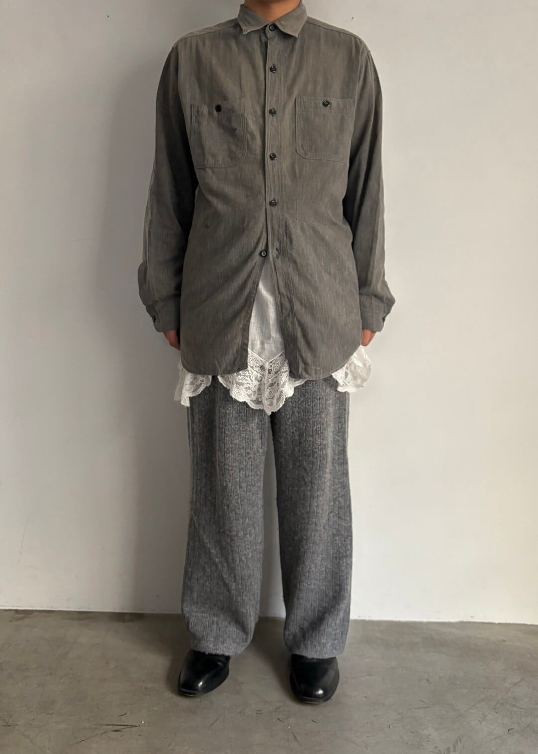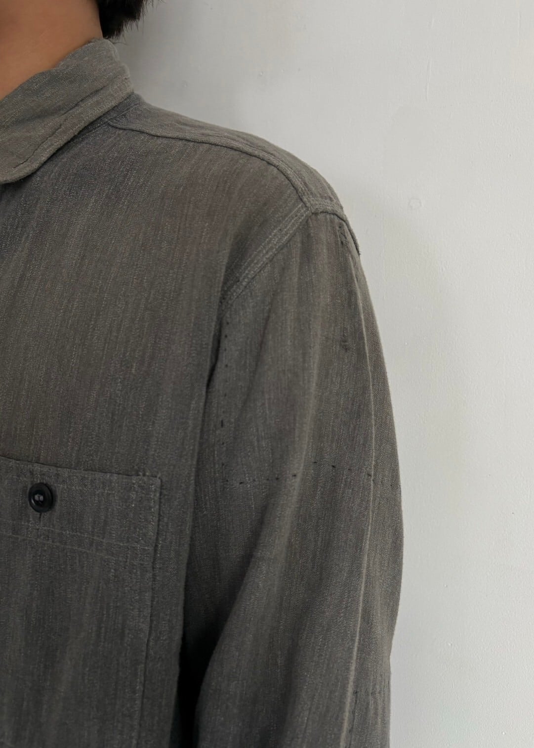 大きいです。黒い色のシャンブレーシャツです。通常は青が常なこのシャツですが珍しさとごま塩の様なこれでしかない様な色の塩梅が妙。