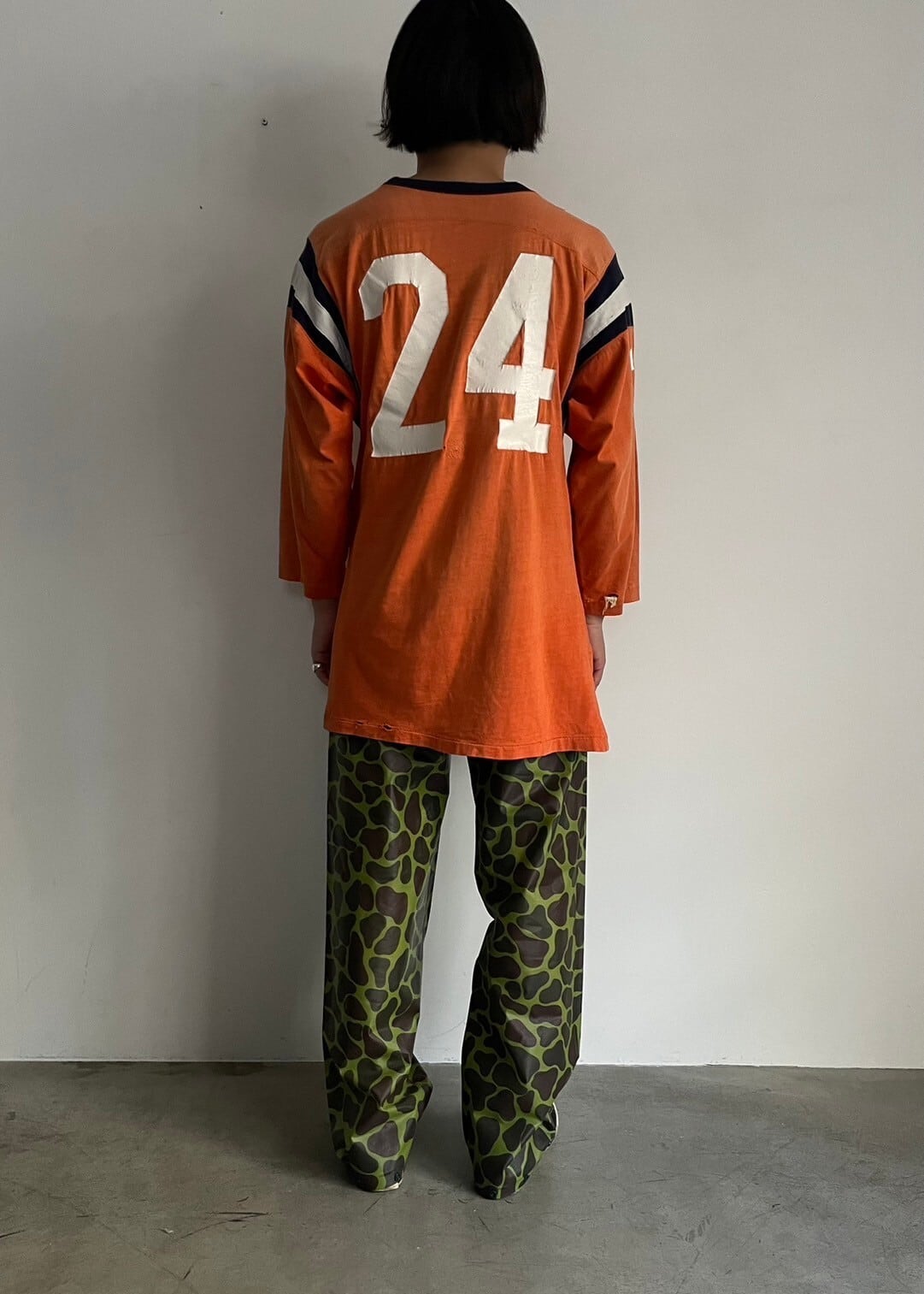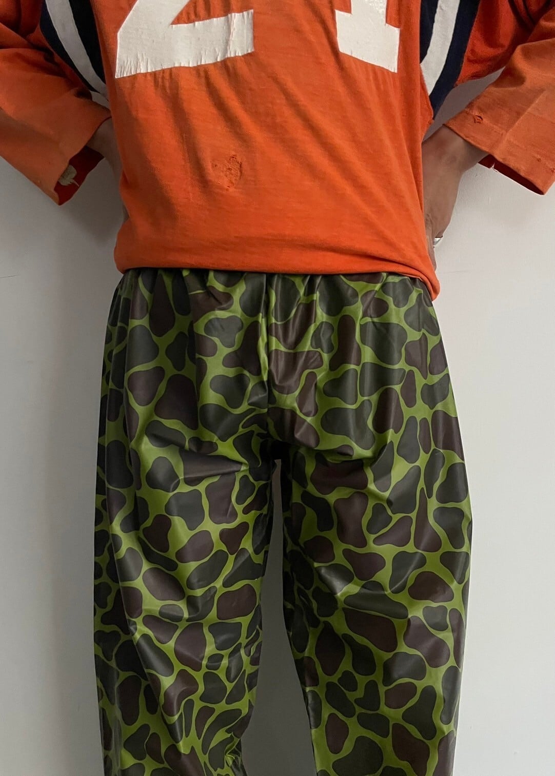 結構ビニールなカバーパンツです。沼地、湿地帯でのハンティング仕様でしょうか。