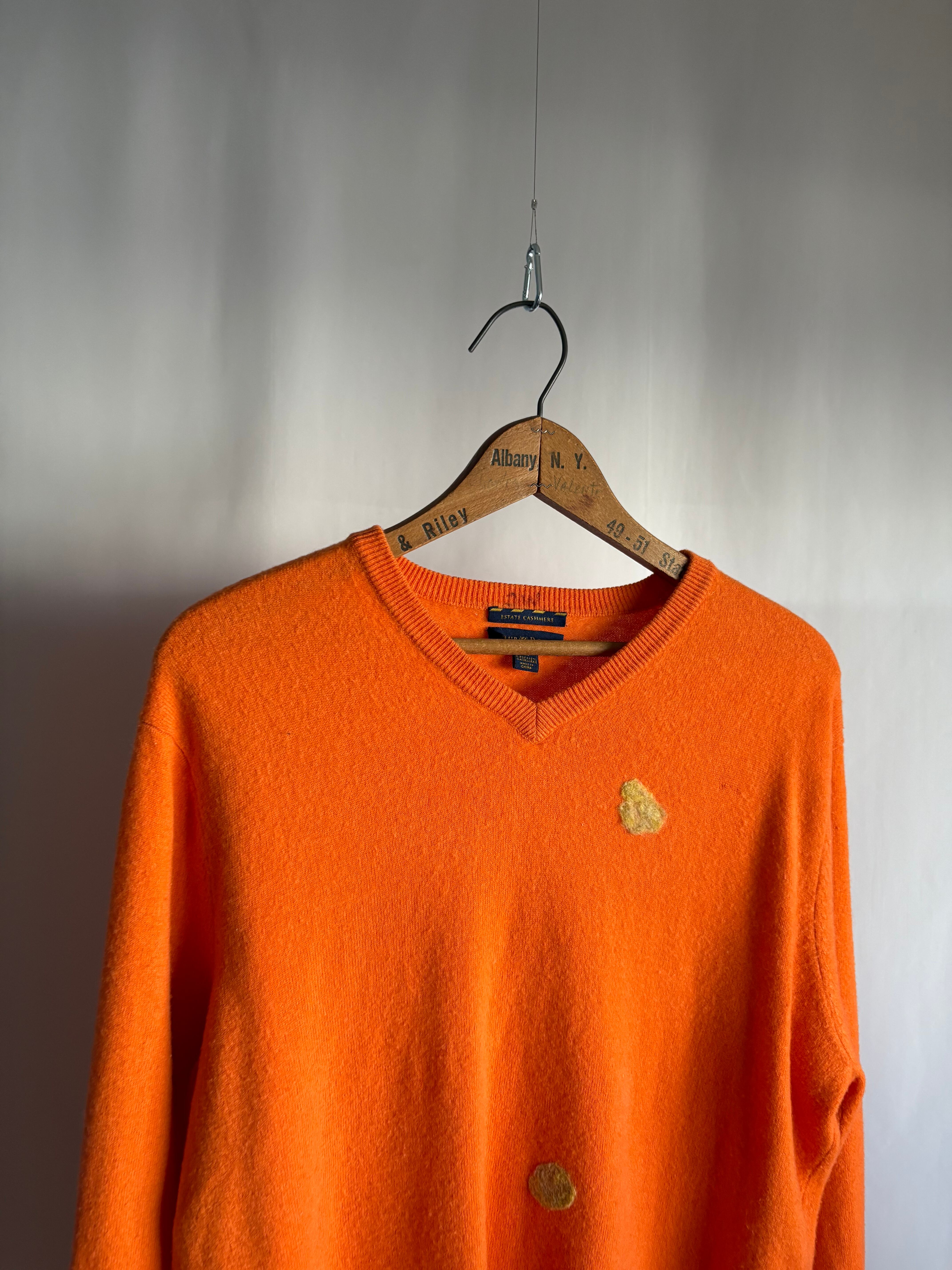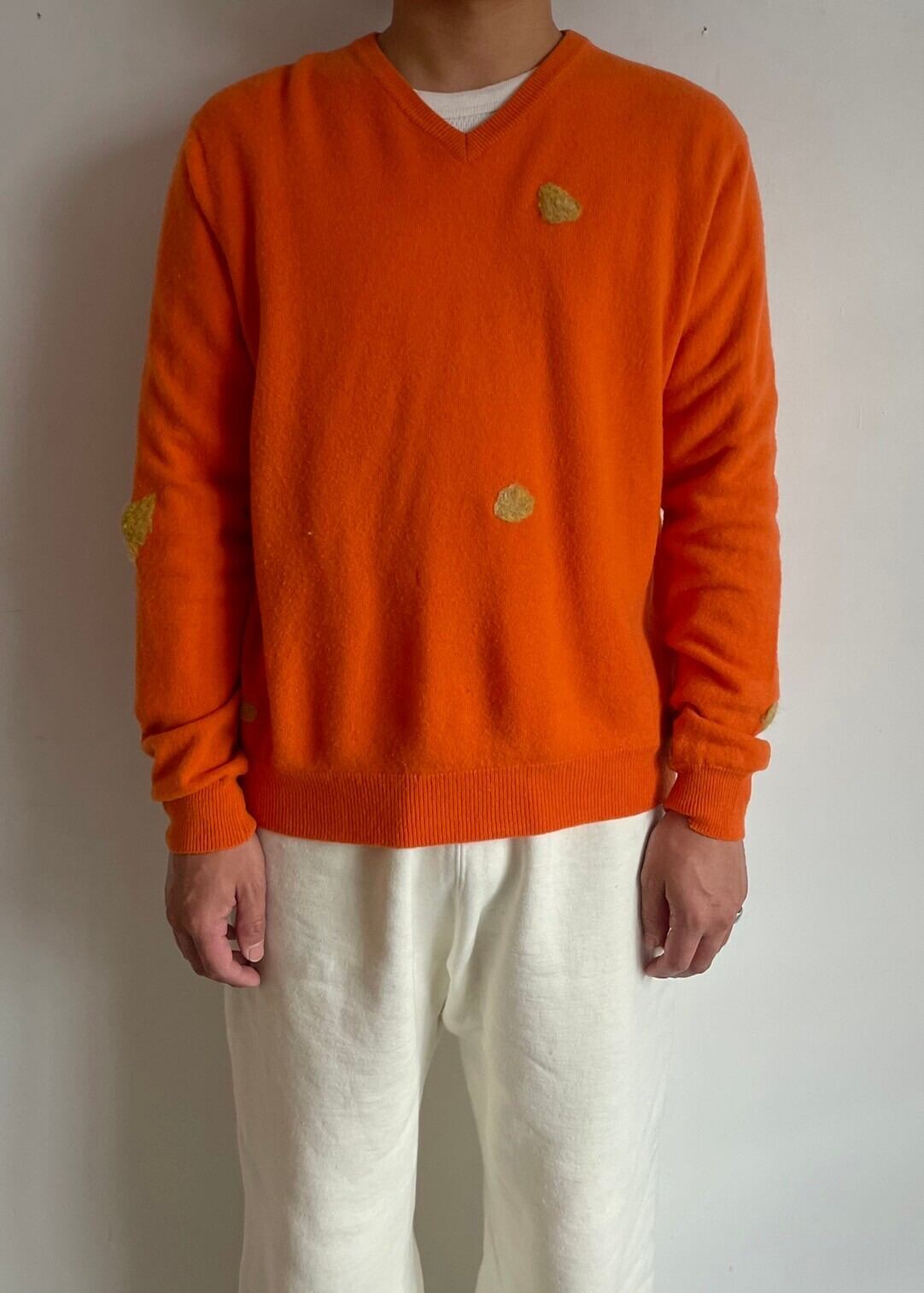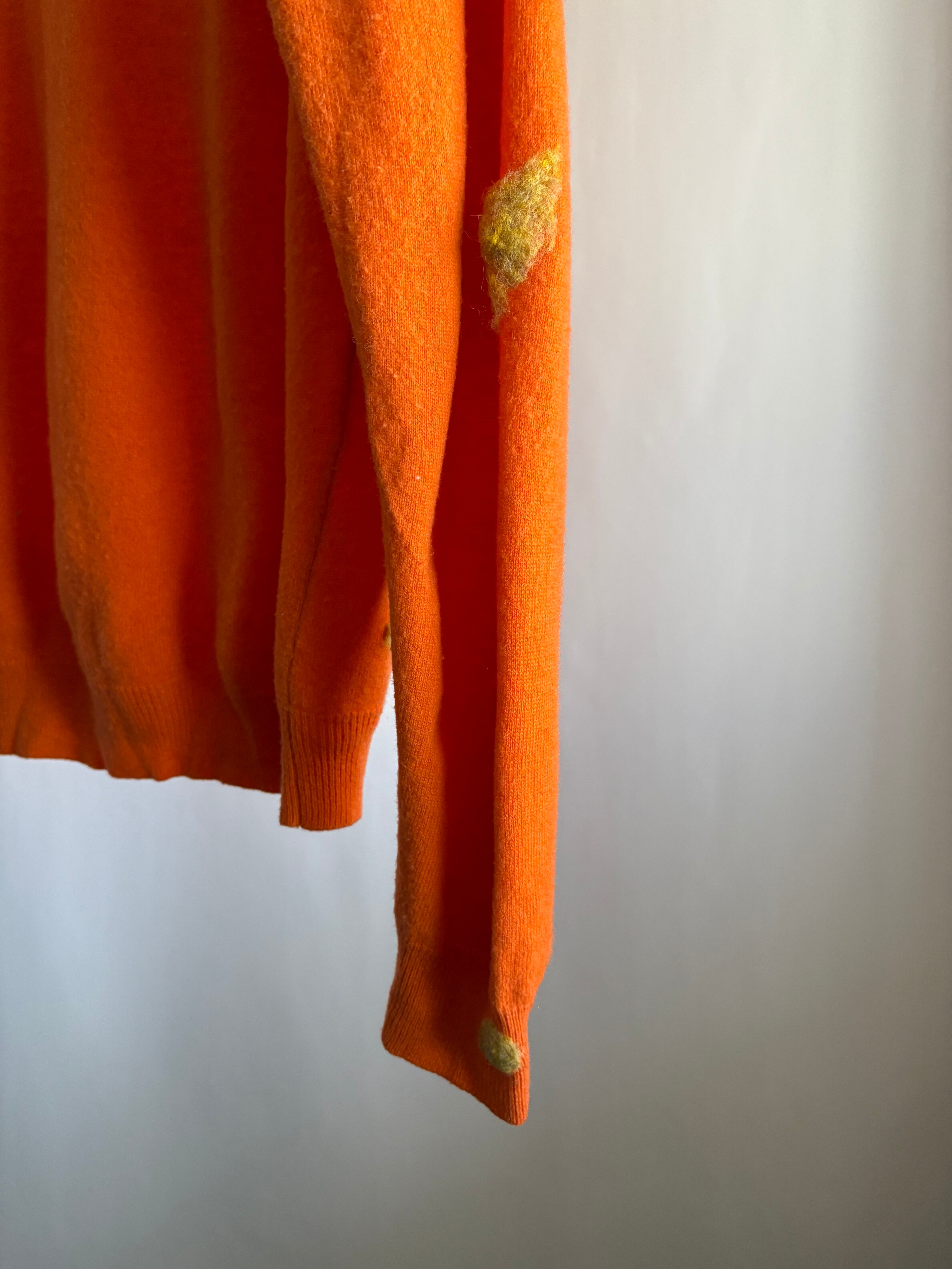 ダーニングでリペアされたカシミア。見つけた時からこうでした。