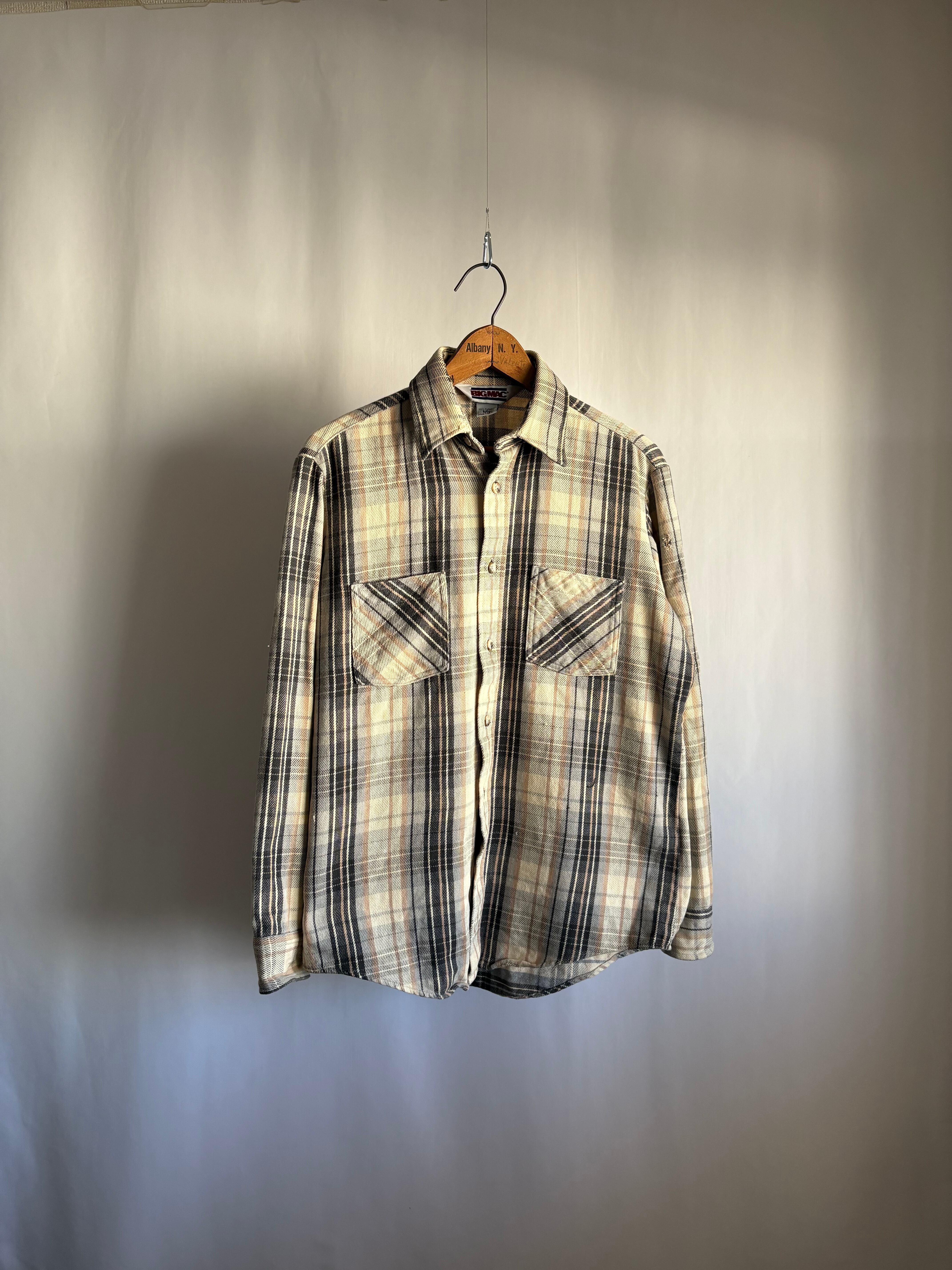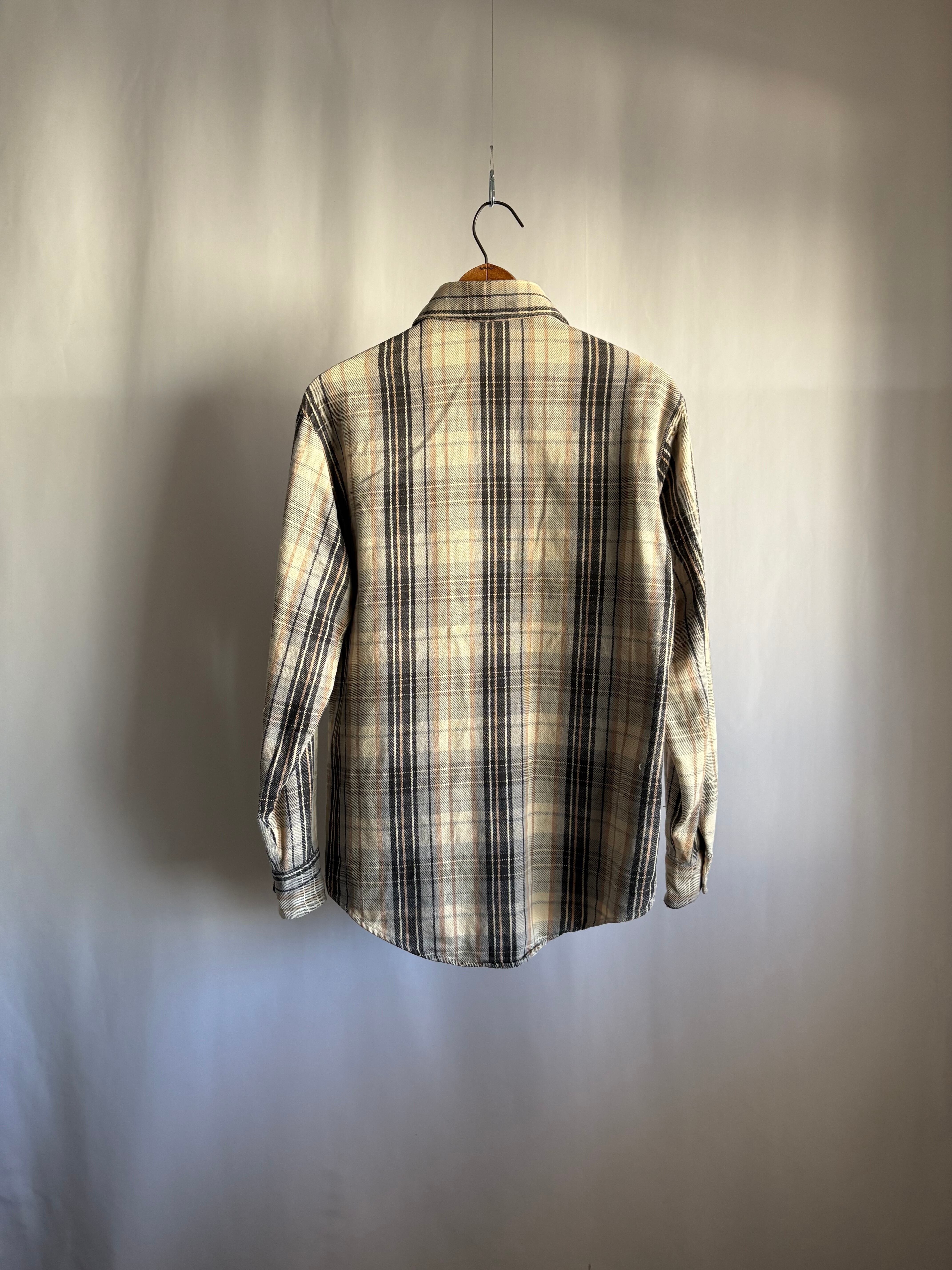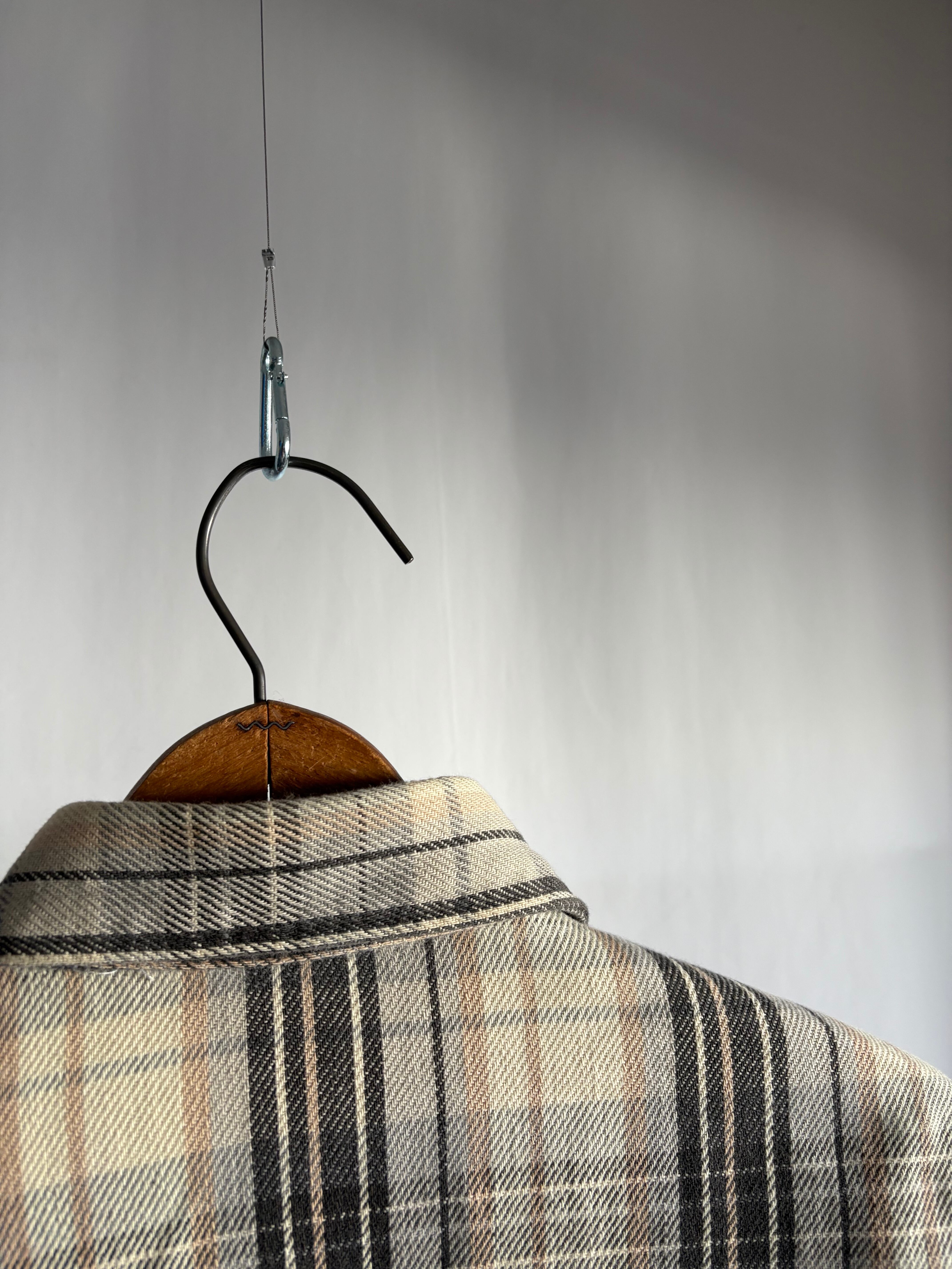 色がカフェラテの様で好みです。フランネルのシャツ、細かいカラーの組み合わせが沢山あるのでこれの様な嬉しい色味が探せるのがいいところだと思います。