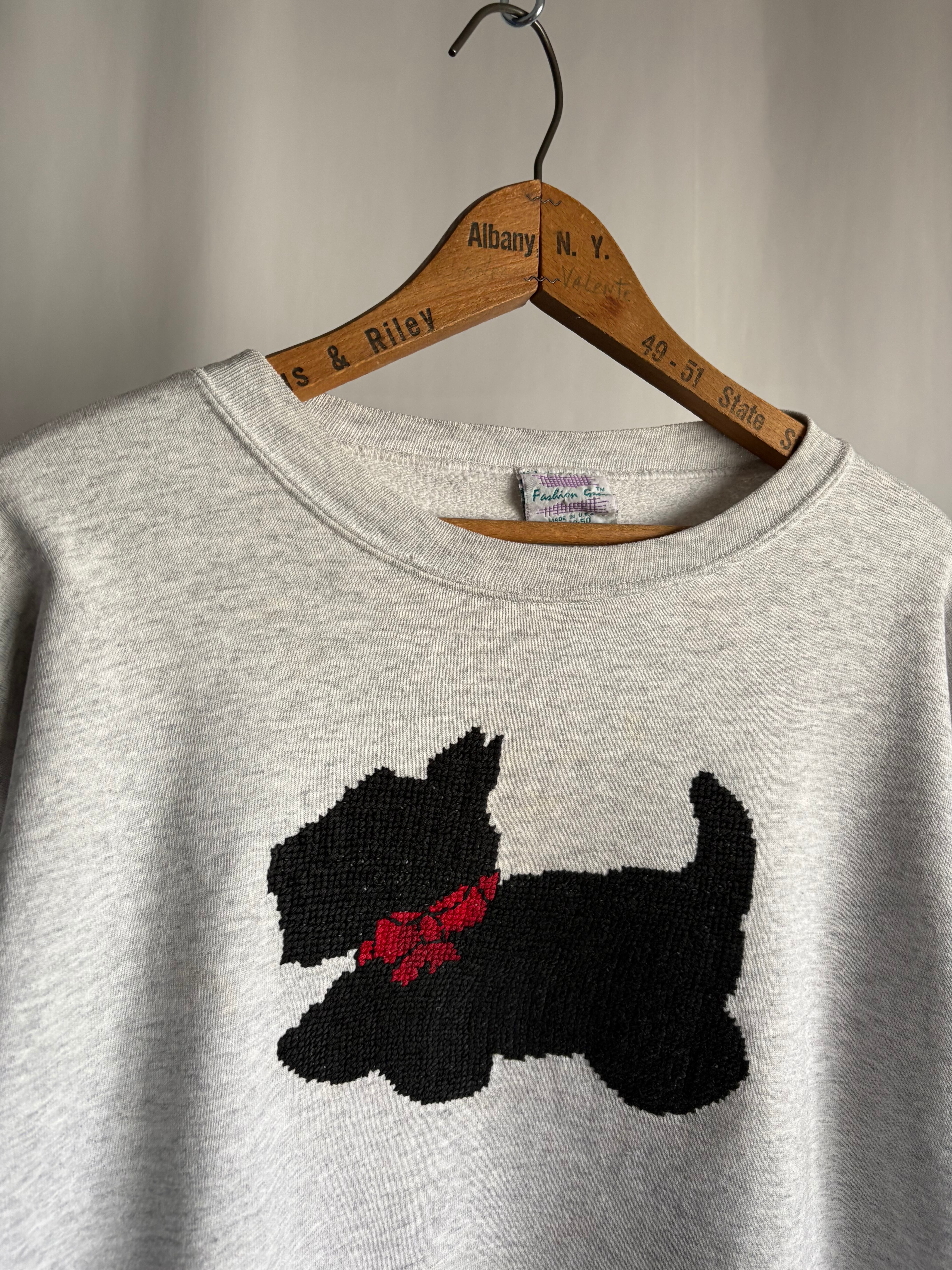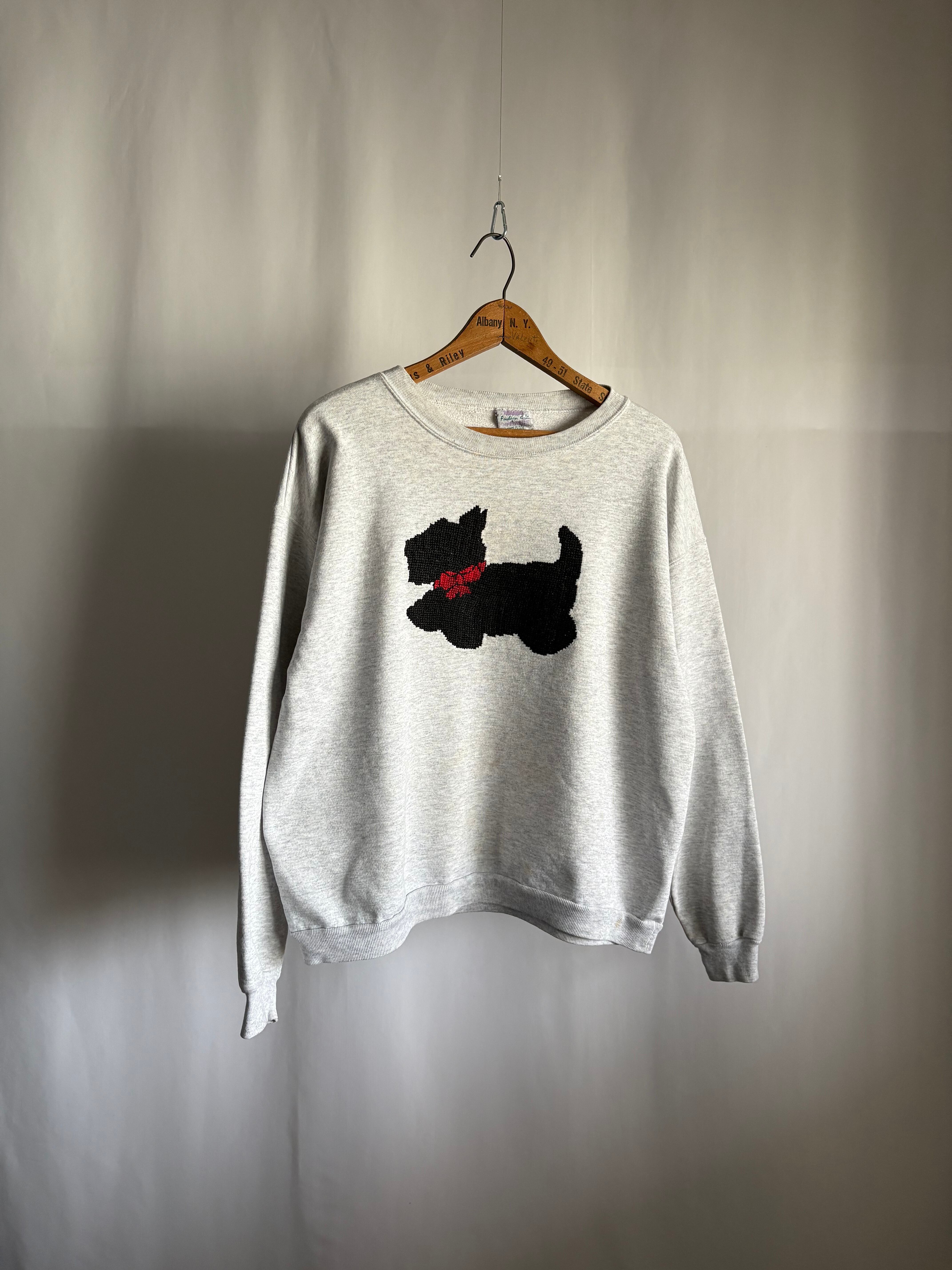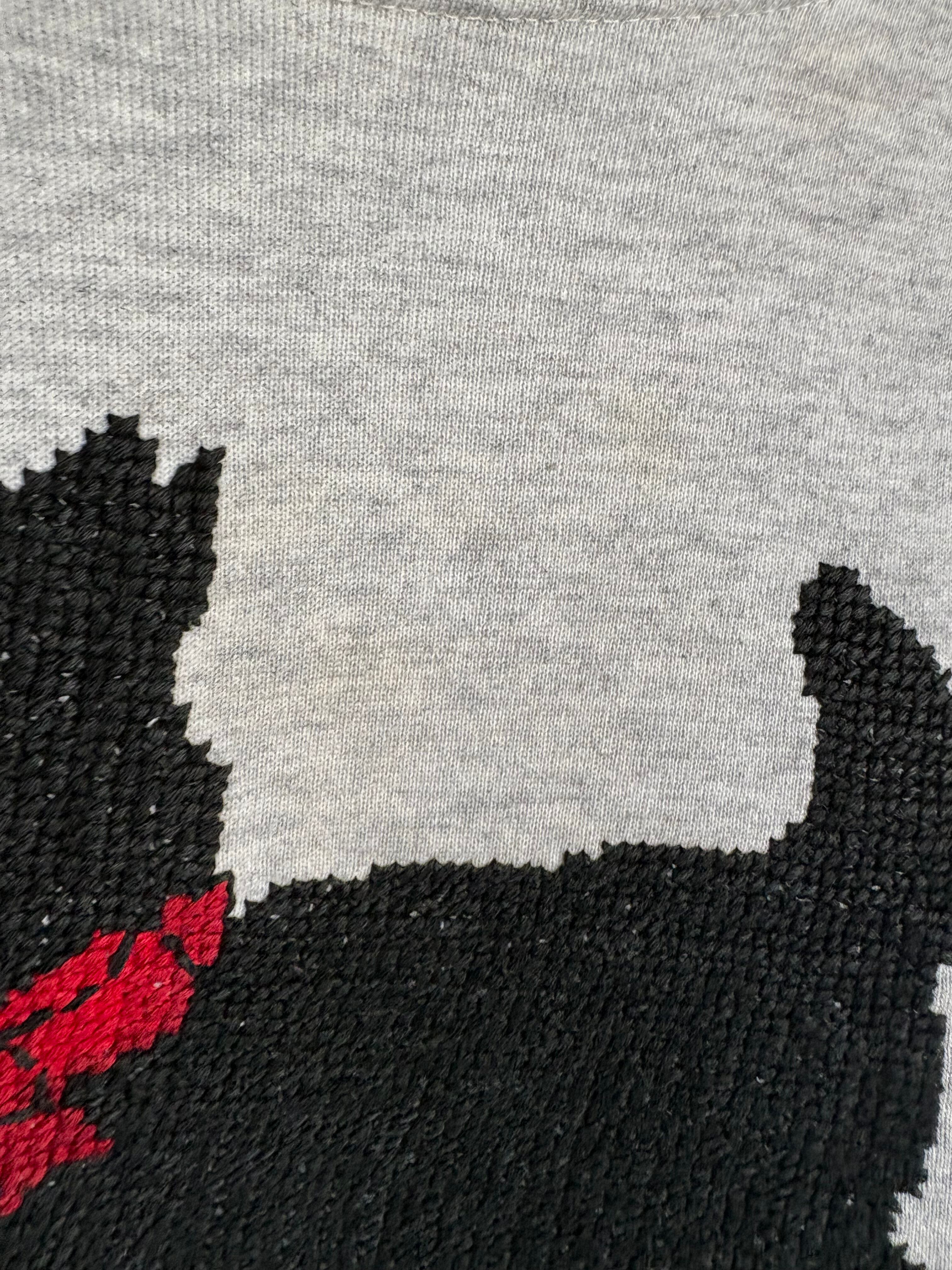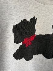クロスステッチでのシュナウザー。首元の赤いリボンがチャームポイントです。