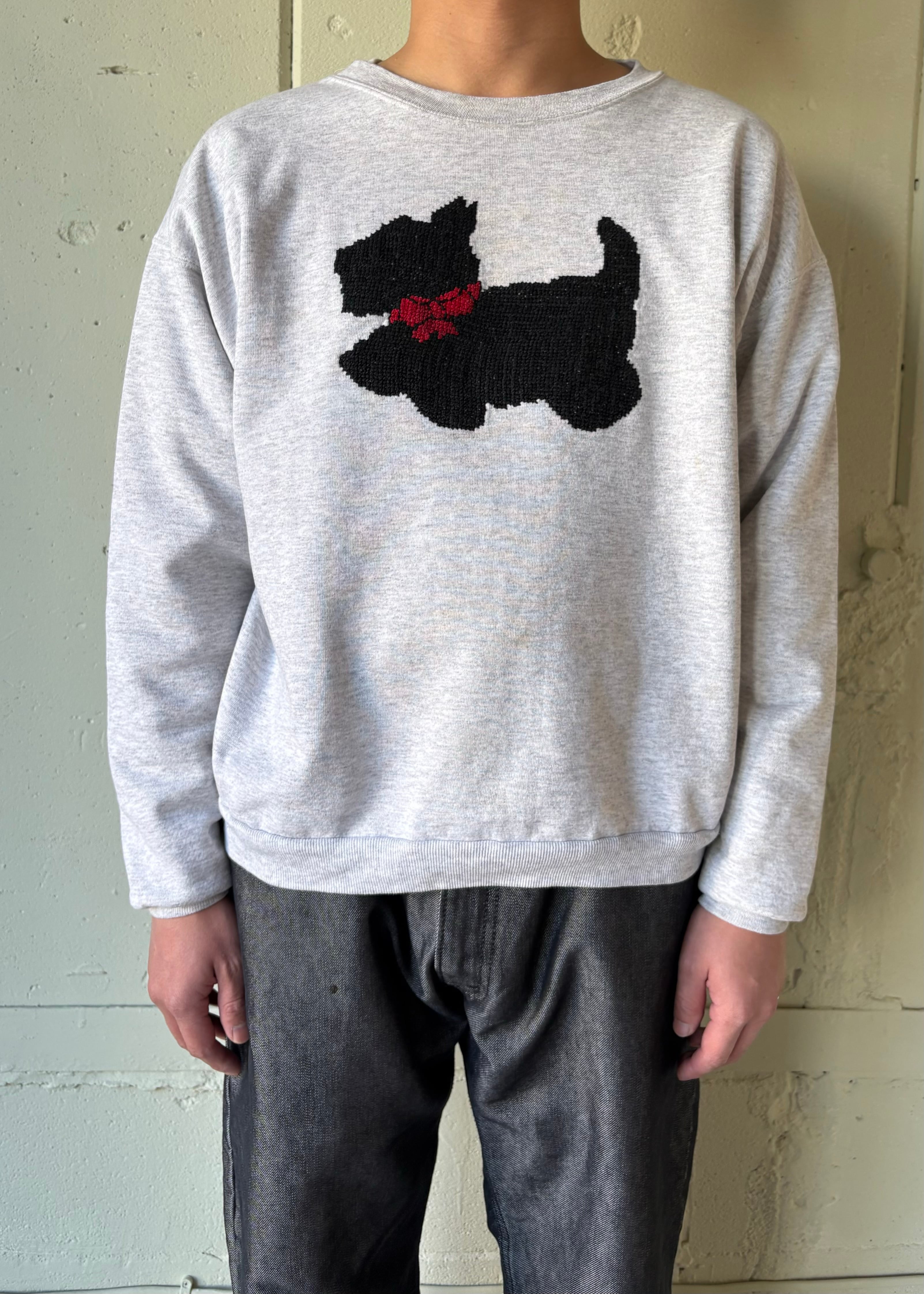 普通のグレーのスウェットに少しのアクセント。アメリカ人らしい変に熱がこもったカスタム!